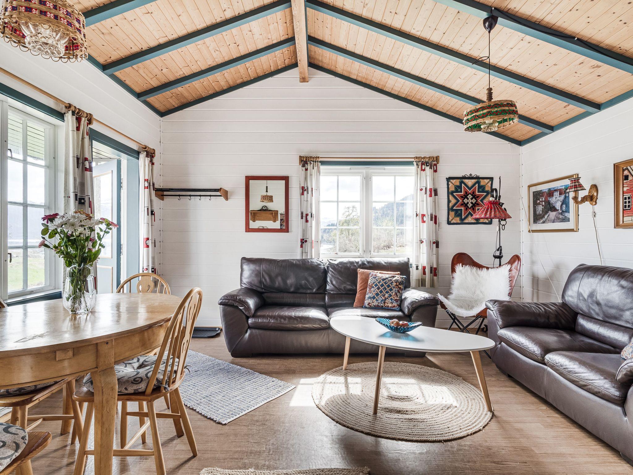 "Sandviki", 3-Zimmer-Haus 42 m2. Gemütlich eingerichtet: Wohn-/Esszimmer mit Schwedenofen, Esstisch, Sat-TV und Internationale TV-Sender. Ausgang zur Terrasse. 1 Zimmer mit 1 Doppelbett (150 cm, Länge 200 cm). 1 Zimmer mit 2 Betten (80 cm, Länge 200 cm). Offene Küche (4 Kochplatten, Mini-Backofen, Geschirrspüler, Mikrowelle, Tiefkühler, elektrische Kaffeemaschine). Dusche/WC. E-Heizung. Terrasse 20 m2, Gartensitzplatz. Terrassenmöbel, Gartengrill. Sicht auf das Meer, die Berge und fjord. Zur Verfügung: Waschmaschine, Bügeleisen, Kinderhochstuhl, Babybett. Internet (WLAN, gratis). Bitte beachten: Nichtraucher-Unterkunft. Maximal 2 Haustiere/Hunde erlaubt. 924531169