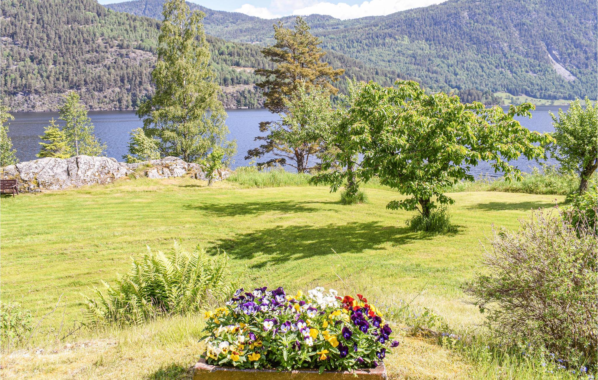 Das Haus liegt ungestört auf einem stillgelegten kleinen Bauernhof in grüner Umgebung und mit viel Platz zum Spielen im Freien und im Garten. Genießen Sie Ihre Mahlzeiten im Freien mit einem fantastischen Blick über den Bandak Fjord.