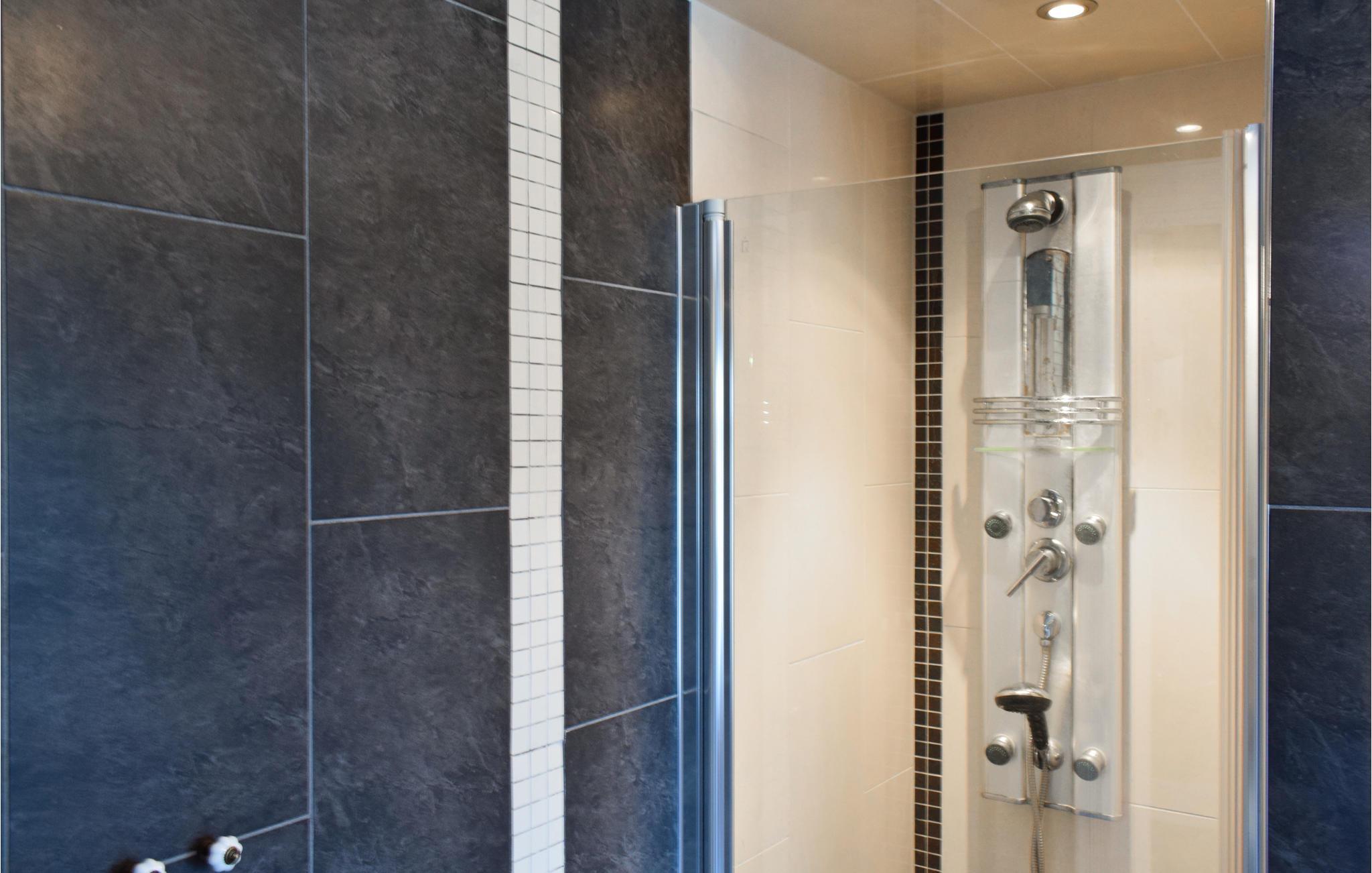 Badezimmer (nr. 1) - WC. Warmes und kaltes Wasser. Dusche und Badewanne