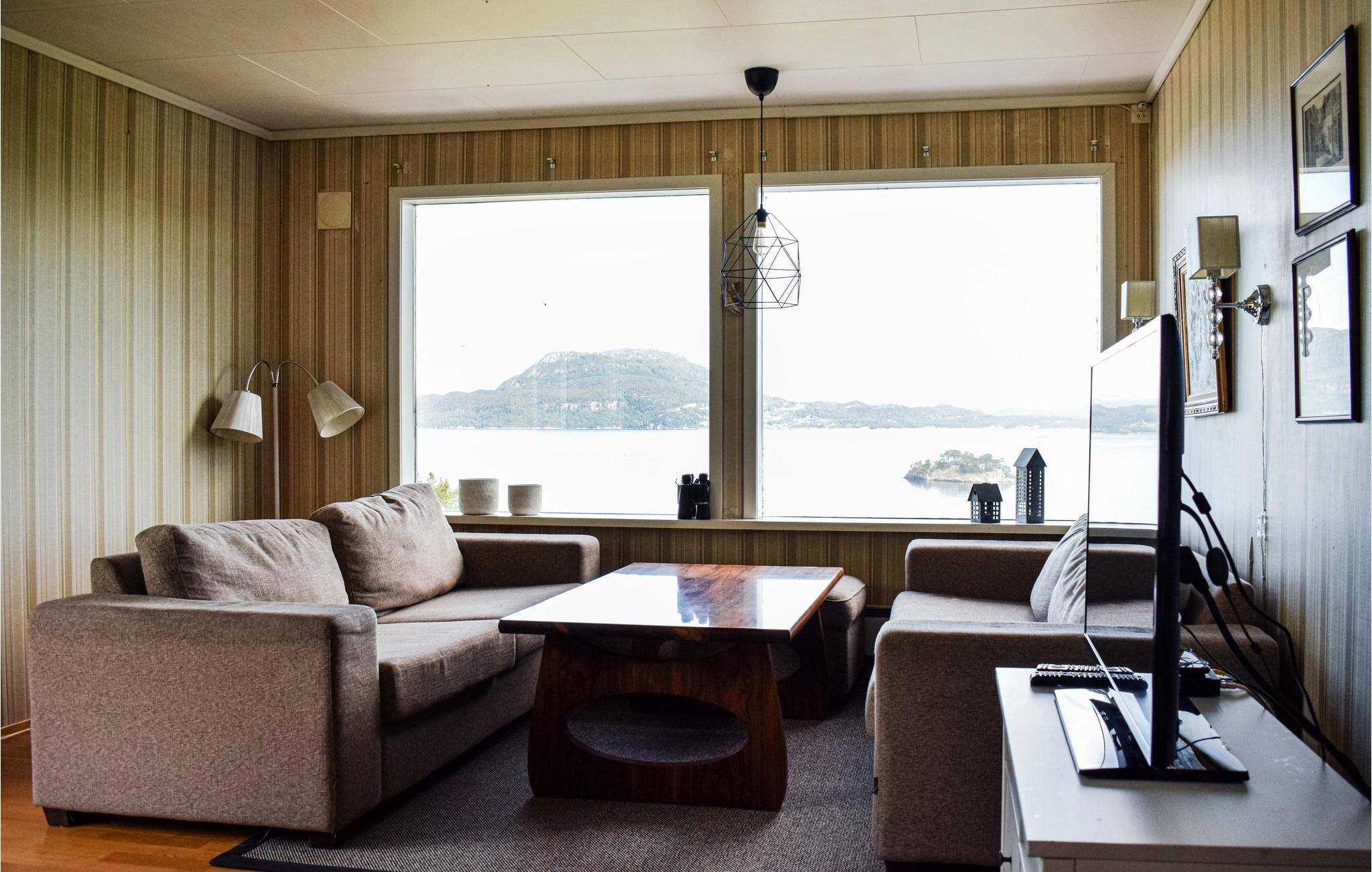 Willkommen in Bjoa und in diesem charmanten Ferienhaus, das Ihnen eine erholsame Auszeit inmitten wunderschöner Natur bietet. Genießen Sie die Ruhe, die klare Fjordluft und zahlreiche Freizeitmöglichkeiten direkt vor der Tür. Das Haus ist komfortabel und stilvoll eingerichtet. Im Wohnzimmer erwartet Sie ein gemütlicher Sitzbereich mit einem fantastischen Blick auf den Bjoafjord. Die offene Gestaltung sorgt für eine einladende Atmosphäre. Die gut ausgestattete Essküche bietet Ihnen alles, was Sie für gemeinsame Mahlzeiten benötigen.