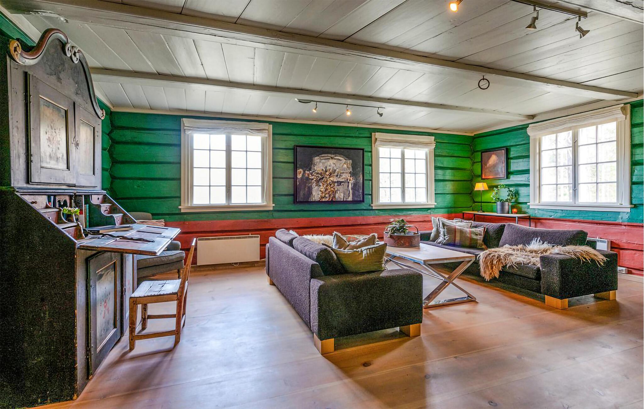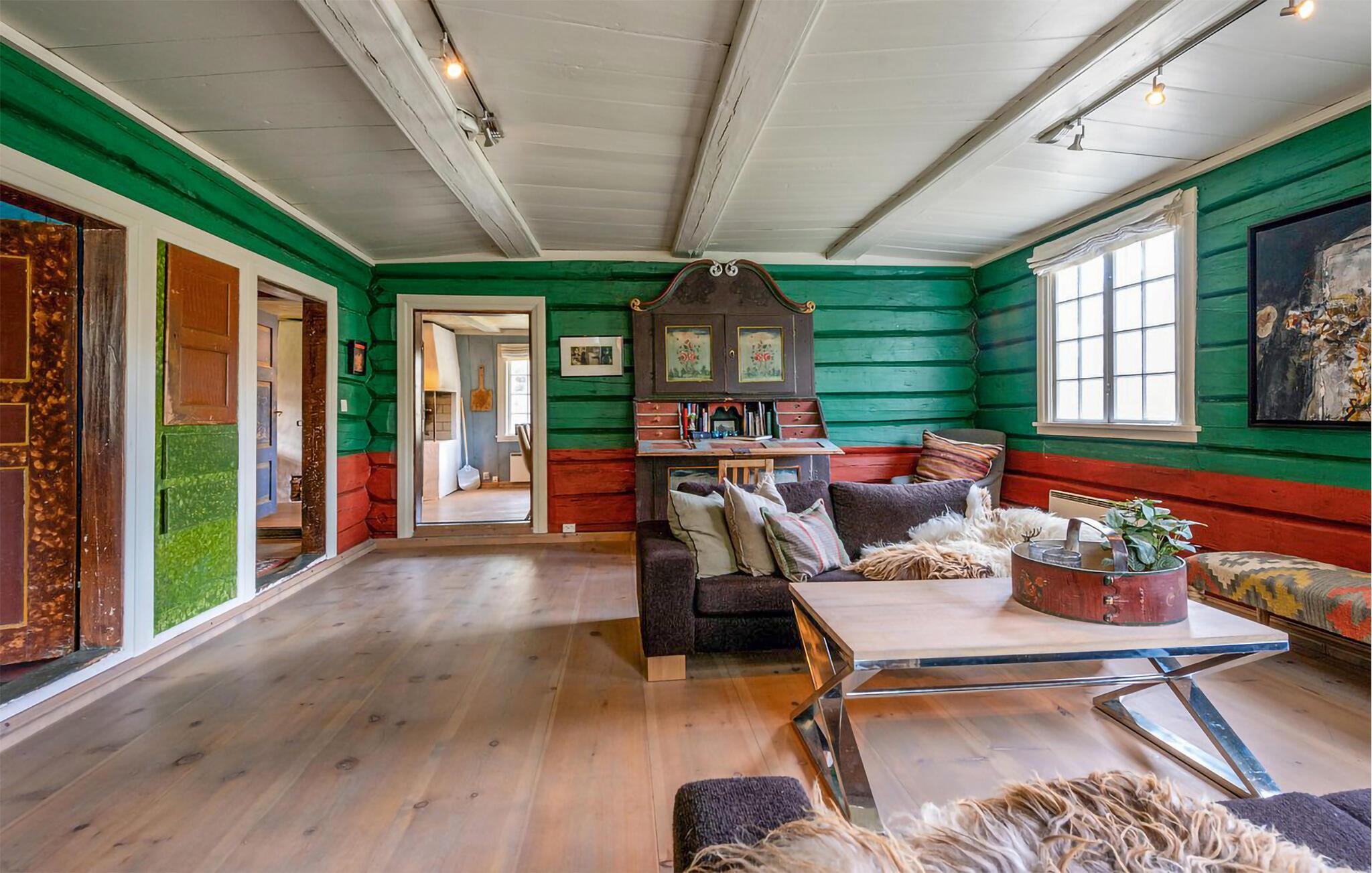 Ihr bezauberndes Ferienhaus mit Platz für zwei Familien ist ein echtes Erlebnis. Das im altnorwegischen Stil erbaute Haus bietet alle modernen Annehmlichkeiten, die man für einen gelungenen Ferienhausurlaub benötigt. Das stilvolle, farbenfrohe Ambiente vermittelt ein Gefühl der Sorglosigkeit. Frühstücken Sie morgens gemeinsam an dem langen Esstisch beim Knistern des Feuers im Kamin. Finden Sie anschließend Ihre private Entspannungsecke. Mehrere gemütliche Sofas laden zu geselligem Beisammensein ein. Oder gehen Sie hinaus auf die Terrasse und genießen Sie an der frischen Luft die Aussicht auf die Natur und Rondakka. Und abends bietet die Sauna Entspannung pur.