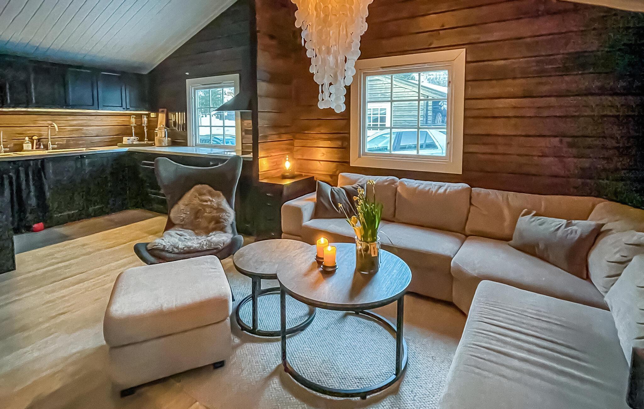 Starten Sie den Tag in Ihrem kompakten Ferienhaus mit einem köstlichen Frühstück, das Sie in der ansehnlichen Küche zubereiten können. Genießen Sie Ihre Mahlzeit am einladenden Esstisch und lassen Sie sich dabei von der malerischen Aussicht auf die umliegenden Landschaften verzaubern. Das Haus zeichnet sich durch eine warme Holzatmosphäre aus und ist ein idealer Ort für einen echten Natururlaub. Die große Sofaecke mit dem weichen Sofa ist der ideale Ort zum Entspannen. Vertiefen Sie sich in ein spannendes Buch oder genießen Sie gesellige Kartenspiele mit Ihrer Familie. Nutzen Sie den Außenbereich, um mit der ganzen Familie Fußball zu spielen oder auf dem Trampolin zu hüpfen.