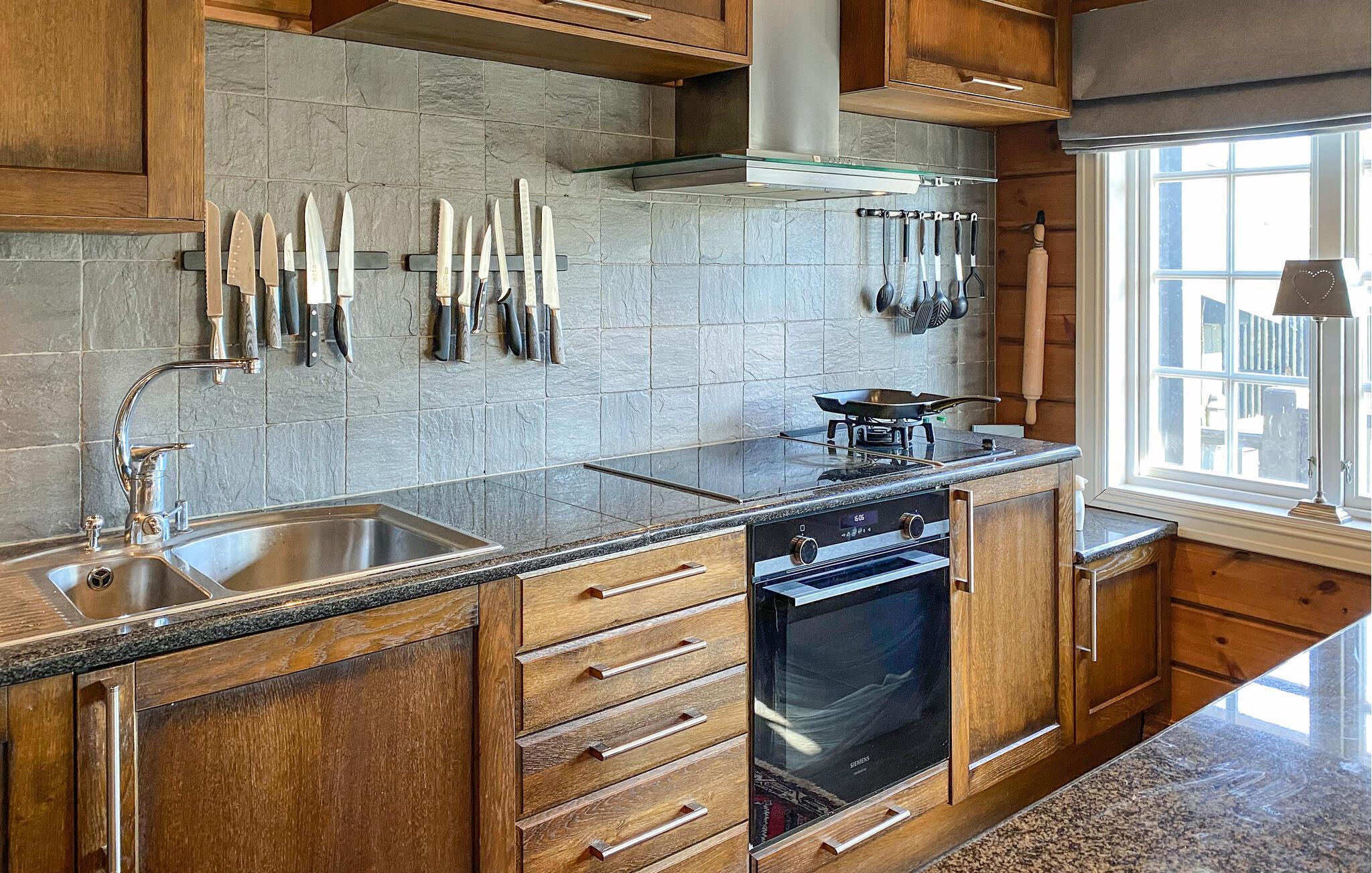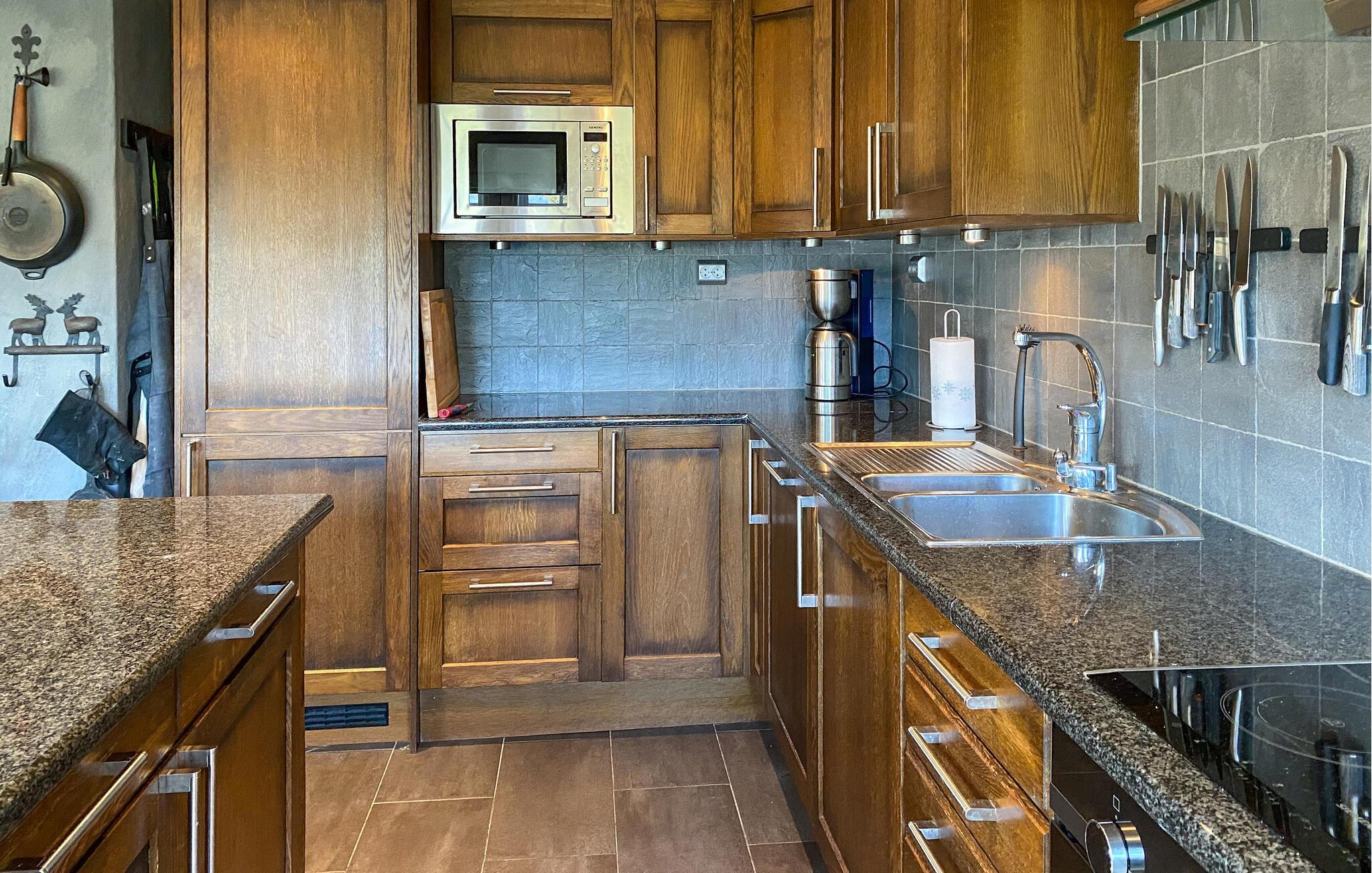 Genießen Sie im Innenbereich die Kombination aus rustikalem Holzinterieur und stilvoller Einrichtung, die Wärme und Behaglichkeit ausstrahlt. Nutzen Sie die große, offene Küche mit Kochinsel und moderner Ausstattung, um gemeinsame Mahlzeiten zuzubereiten. Speisen Sie am großzügigen Esstisch und verbringen Sie gesellige Stunden in den hellen Räumen mit weitem Blick nach draußen. Entspannen Sie nach einem aktiven Tag in der Sauna und lassen Sie die wohlige Wärme auf sich wirken.