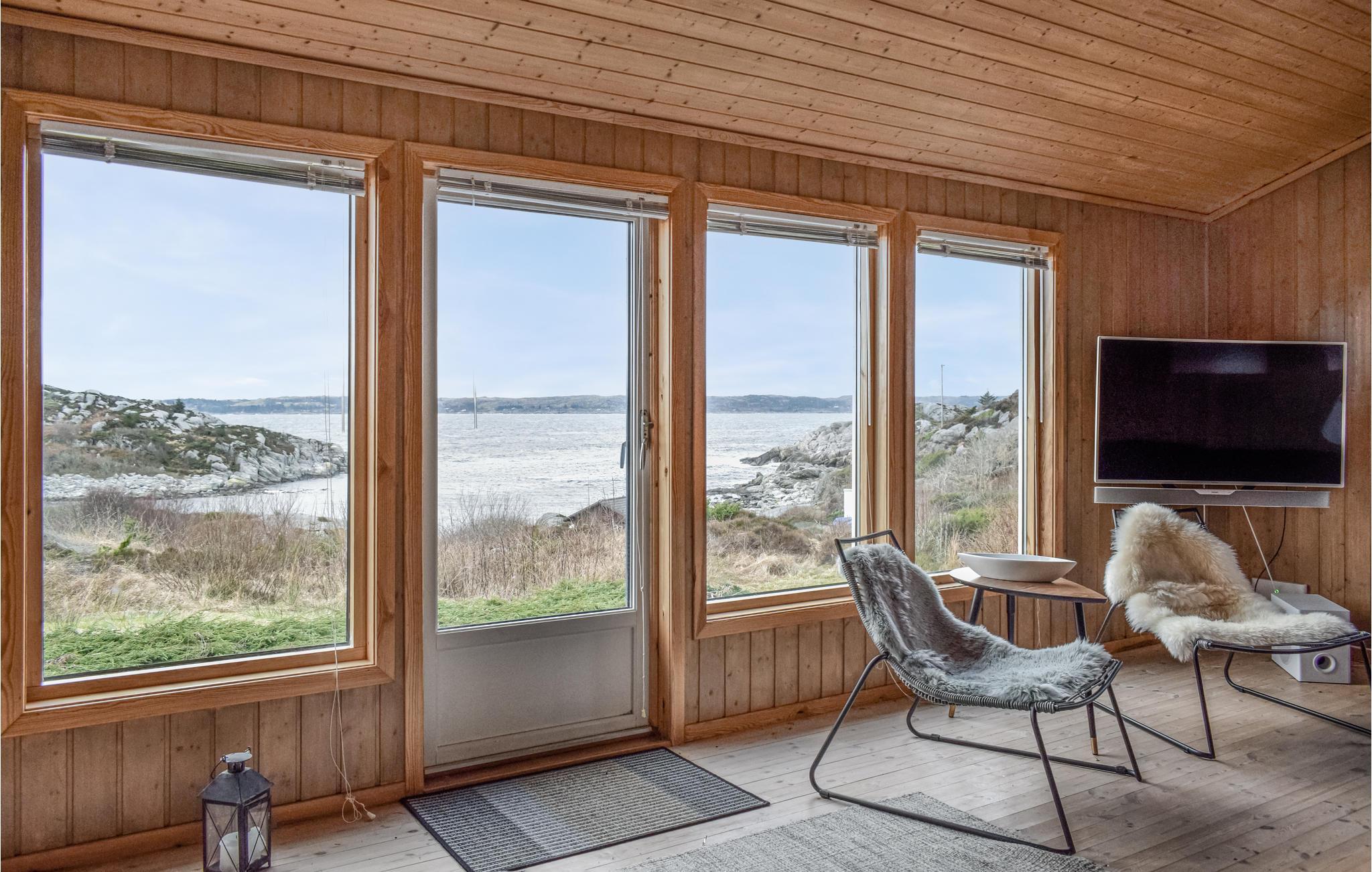 Auf der Insel Vestre Bokn heißt Sie dieses lichtdurchflutete Ferienhaus am Meer willkommen.