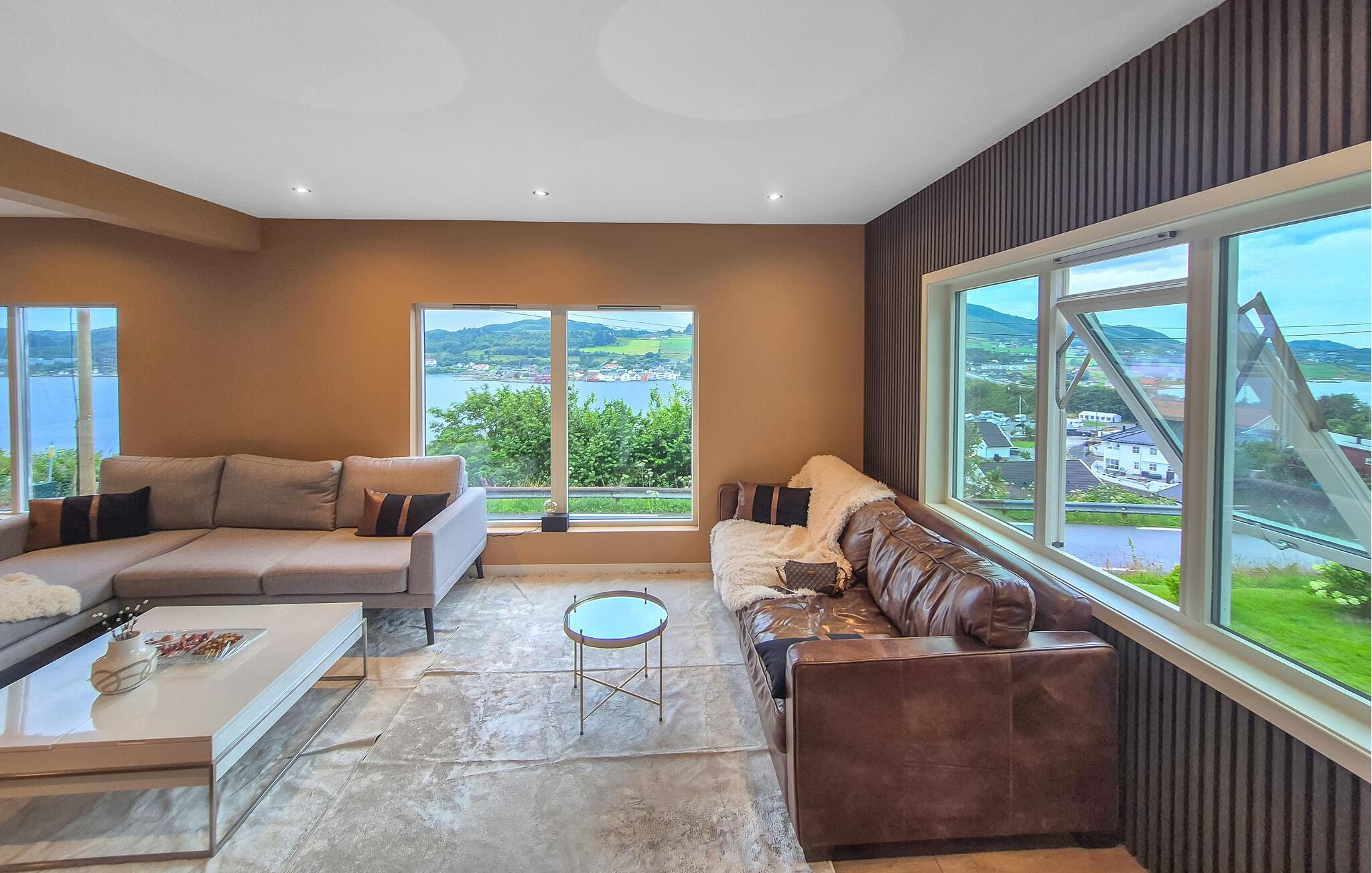 Dieses geschmackvoll eingerichtete Ferienhaus bietet Ihnen eine behagliche Basis, während Sie sich bei einem Aktivurlaub vom Alltag erholen. Zaubern Sie köstliche Gerichte in der modernen Küche und genießen Sie bei harmonischen Mahlzeiten den wunderschönen Blick auf den Fjord. Machen Sie es sich nach einem langen Tag an der frischen Meeresluft im Wohnzimmer gemütlich, lauschen Sie dem leisen Knistern des Kaminfeuers beim Lesen oder streamen Sie einen guten Film.