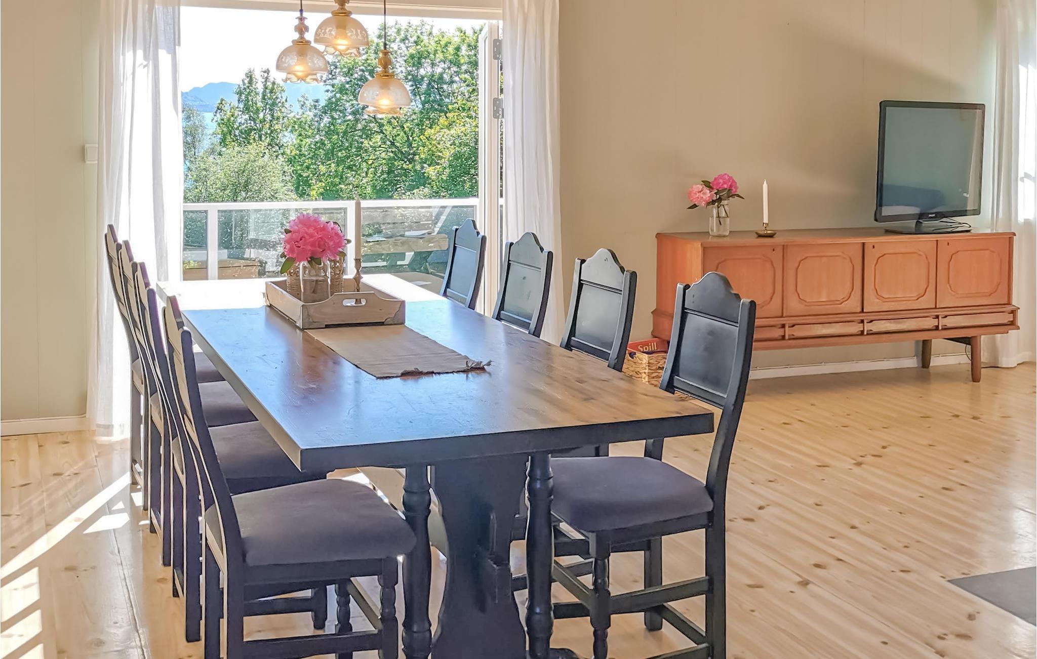 Das Ferienhaus verfügt über eine schöne Terrasse, wo Sie Sonnenstrahlen und Aussicht auf den Fjord und die schönen umliegenden Berge genießen können. Das Grundstück erstreckt sich bis zum Wasser, wo Sie im Urlaub ein erfrischendes Bad nehmen können.