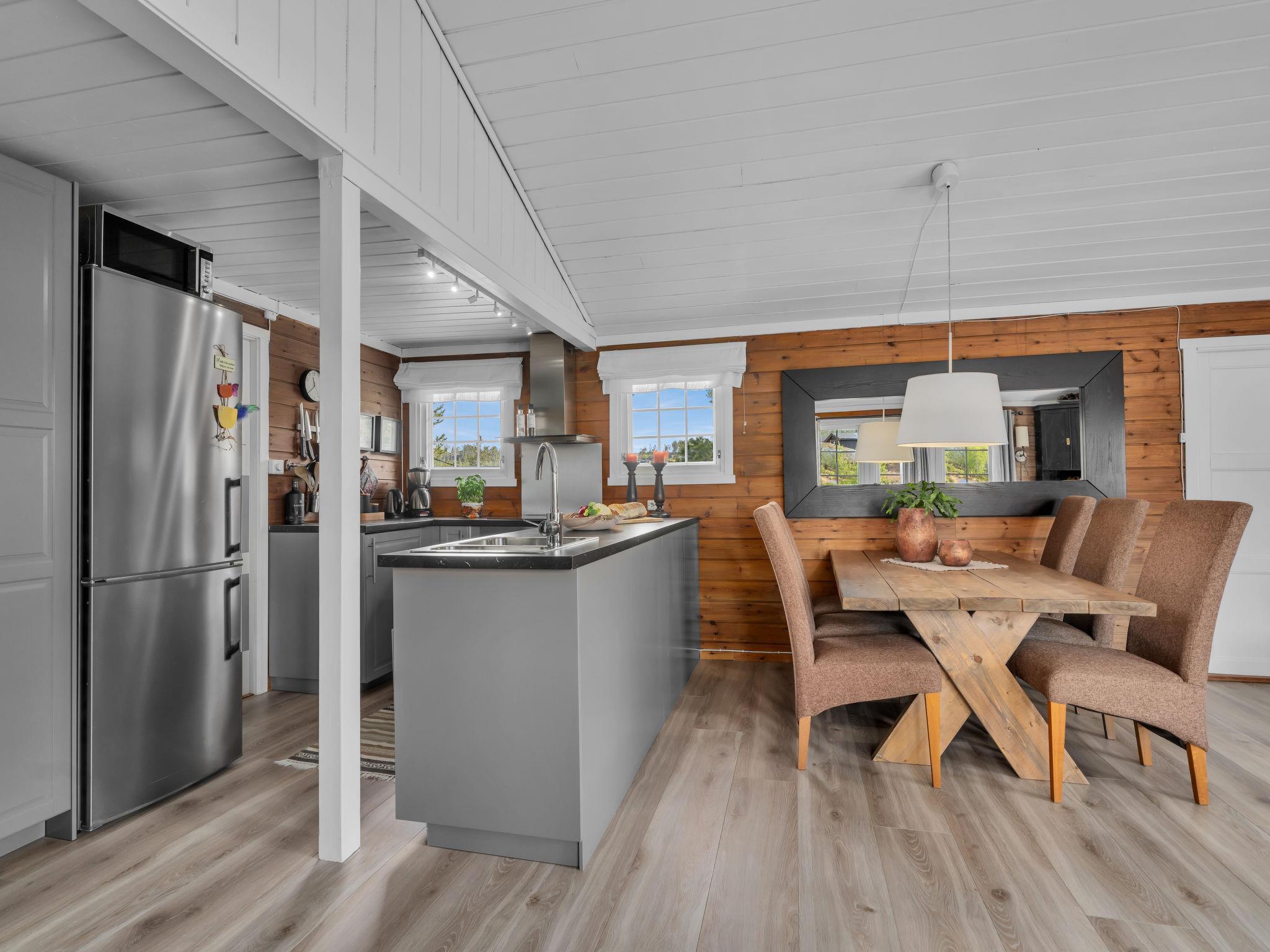 "Knodden", 4-Zimmer-Haus 75 m2. Gemütlich und mit viel Holz eingerichtet: Wohn-/Esszimmer mit Schwedenofen, Esstisch und TV. 1 Zimmer mit 1 x 2 Etagenbetten (140 cm, Länge 200 cm) (75 cm, Länge 200 cm). 1 Zimmer mit 1 x 2 Etagenbetten (120 cm, Länge 200 cm) (80 cm, Länge 200 cm). 1 Zimmer mit 1 x 2 Etagenbetten (90 cm, Länge 200 cm). Offene Küche (Backofen, Geschirrspüler, 4 Glaskeramikplatten, Toaster, Wasserkocher, Mikrowelle, Tiefkühler, elektrische Kaffeemaschine). Dusche/WC. E-Heizung, Warmluftheizung. Holzdielenboden. Grosse Terrasse 33 m2. Terrassenmöbel, Gartengrill (mobil). Zur Verfügung: Waschmaschine, Wäschetrockner. Internet (WLAN, gratis). Bitte beachten: Nichtraucher-Haus. Rauchmelder, Feuerlöscher. Gefrierschrank ca. 80l. 924531169