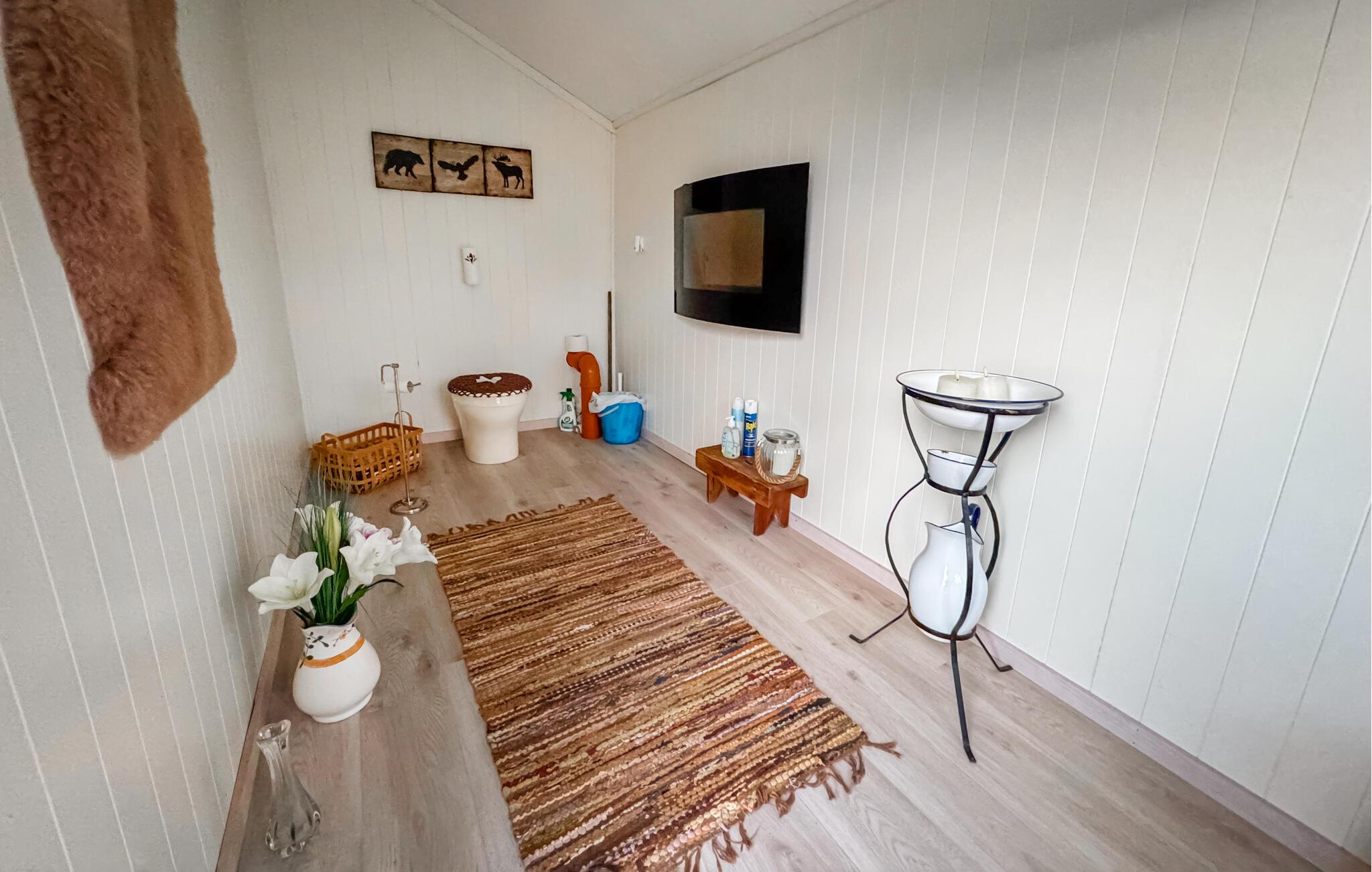 Diese Wohnung verströmt eine gemütliche und rustikale Atmosphäre – hell, freundlich und mit liebevollen Details eingerichtet. Entspannen Sie sich auf dem roten Sofa mit einer Tasse Tee oder verbringen Sie den Abend in wohliger Wärme am Kamin. Am Esstisch genießen Sie gemeinsame Mahlzeiten und den Blick hinaus ins Grüne – ideal für ruhige Stunden mit Freunden oder Familie.