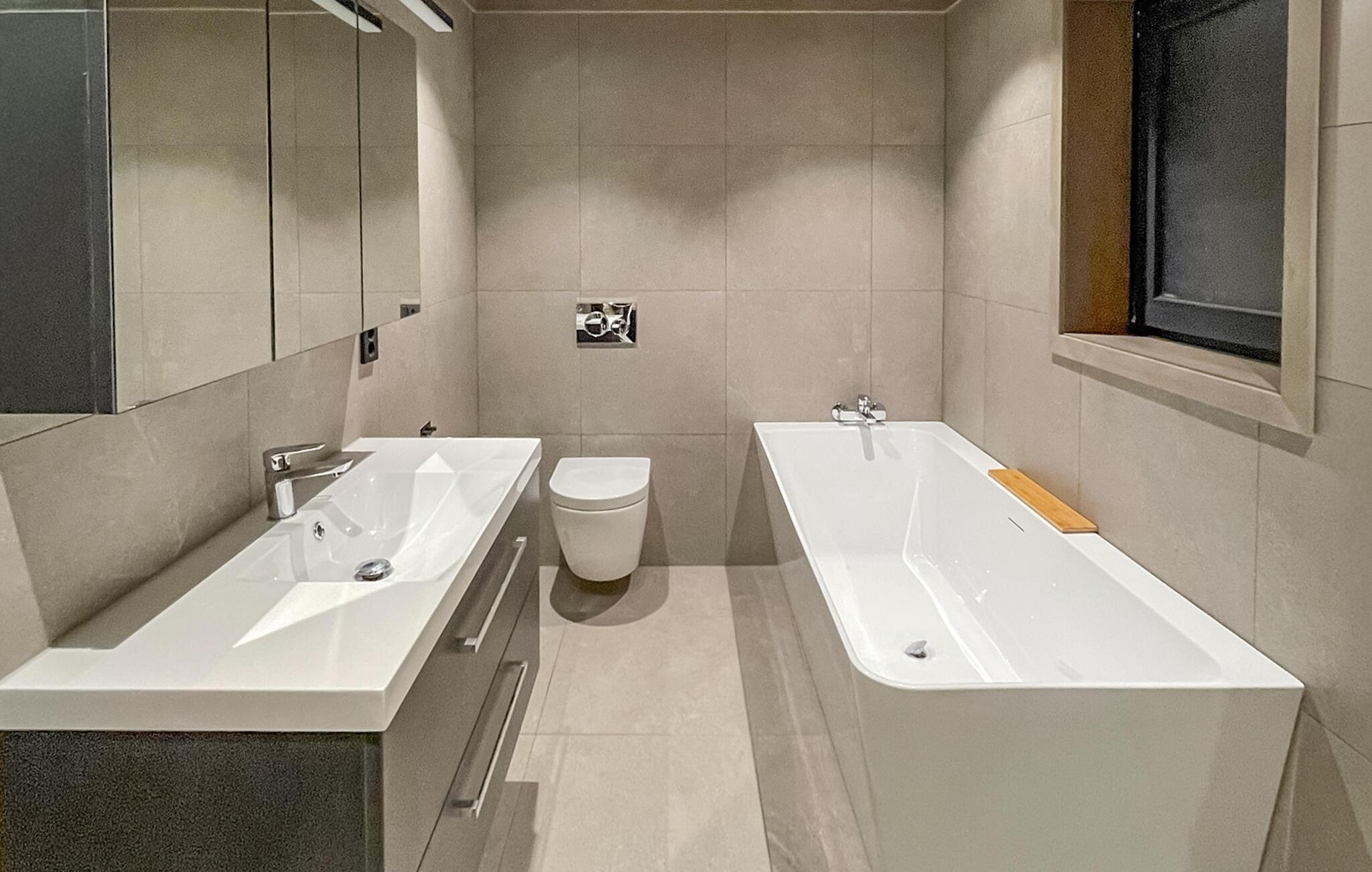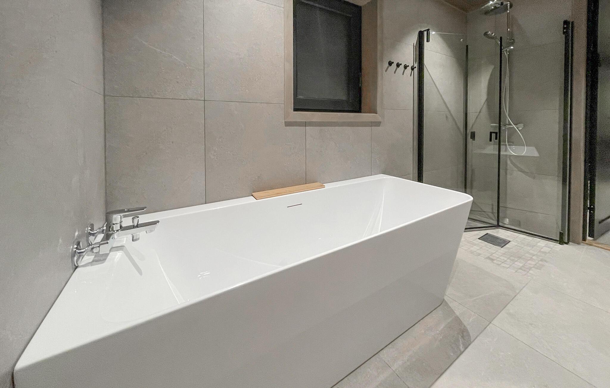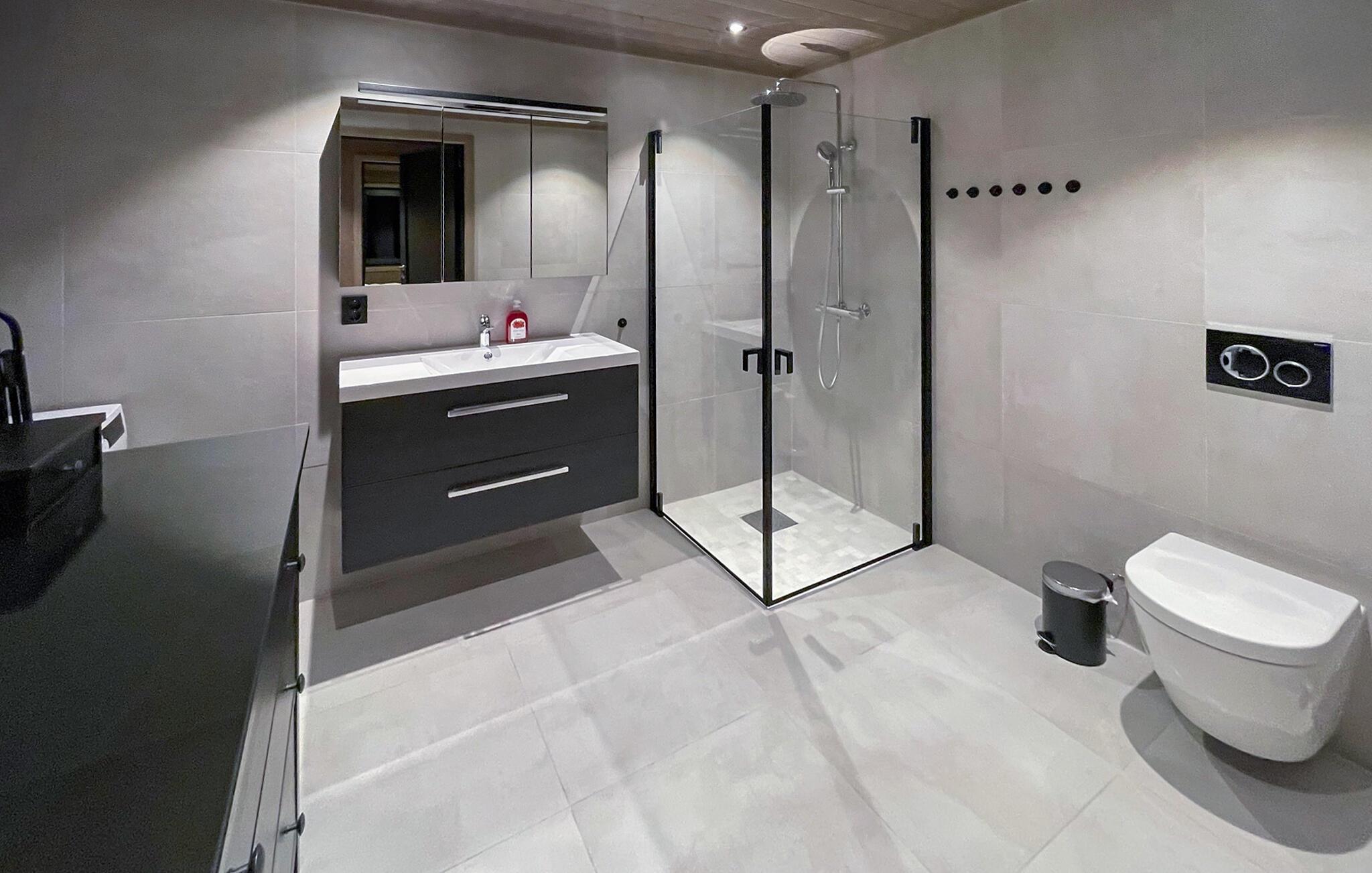 - WC mit warmem und kaltem Wasser, Dusche und Badewanne
