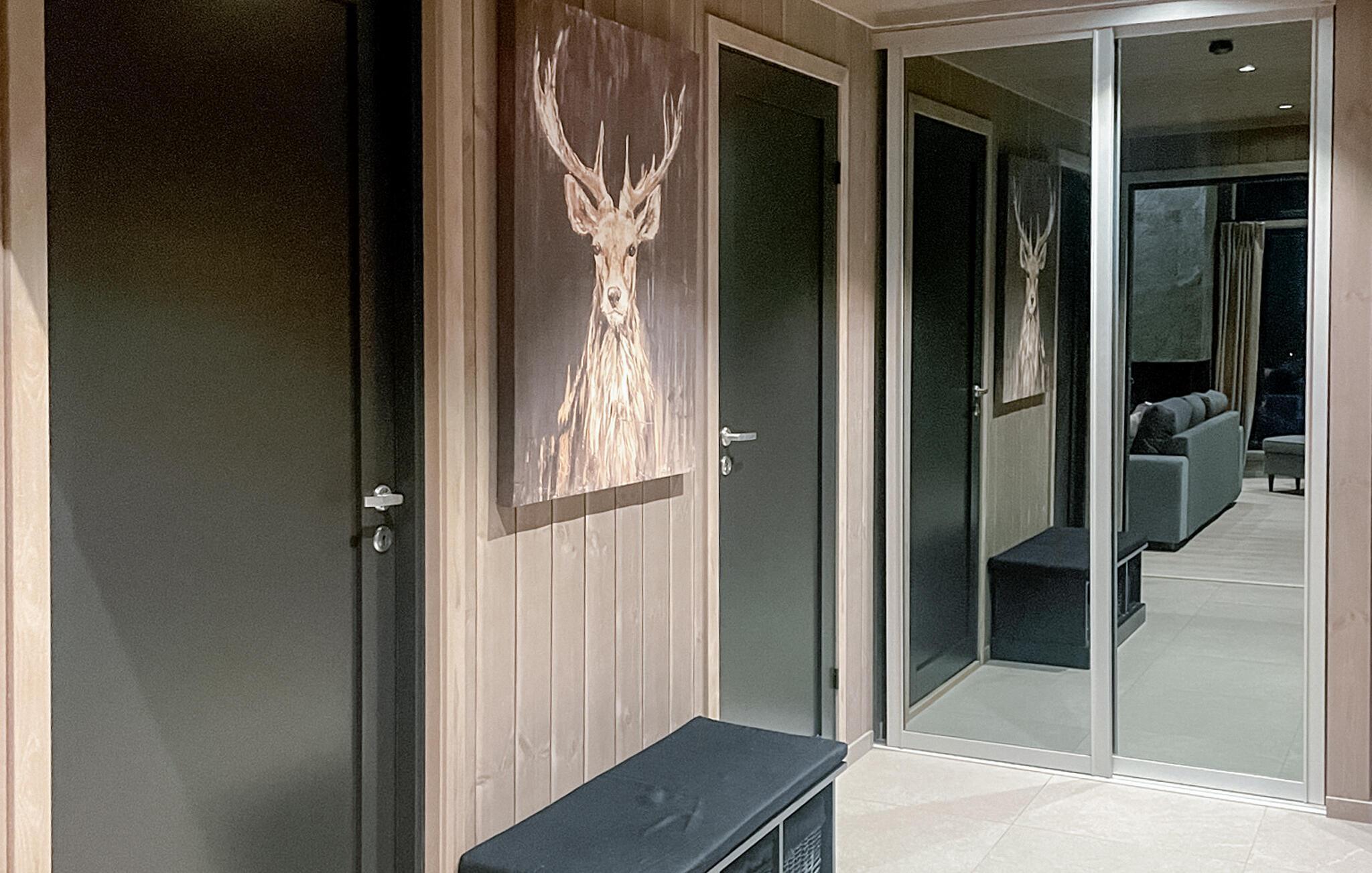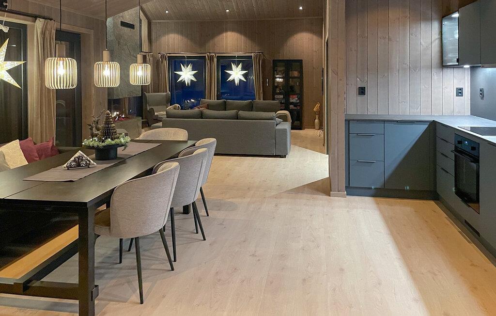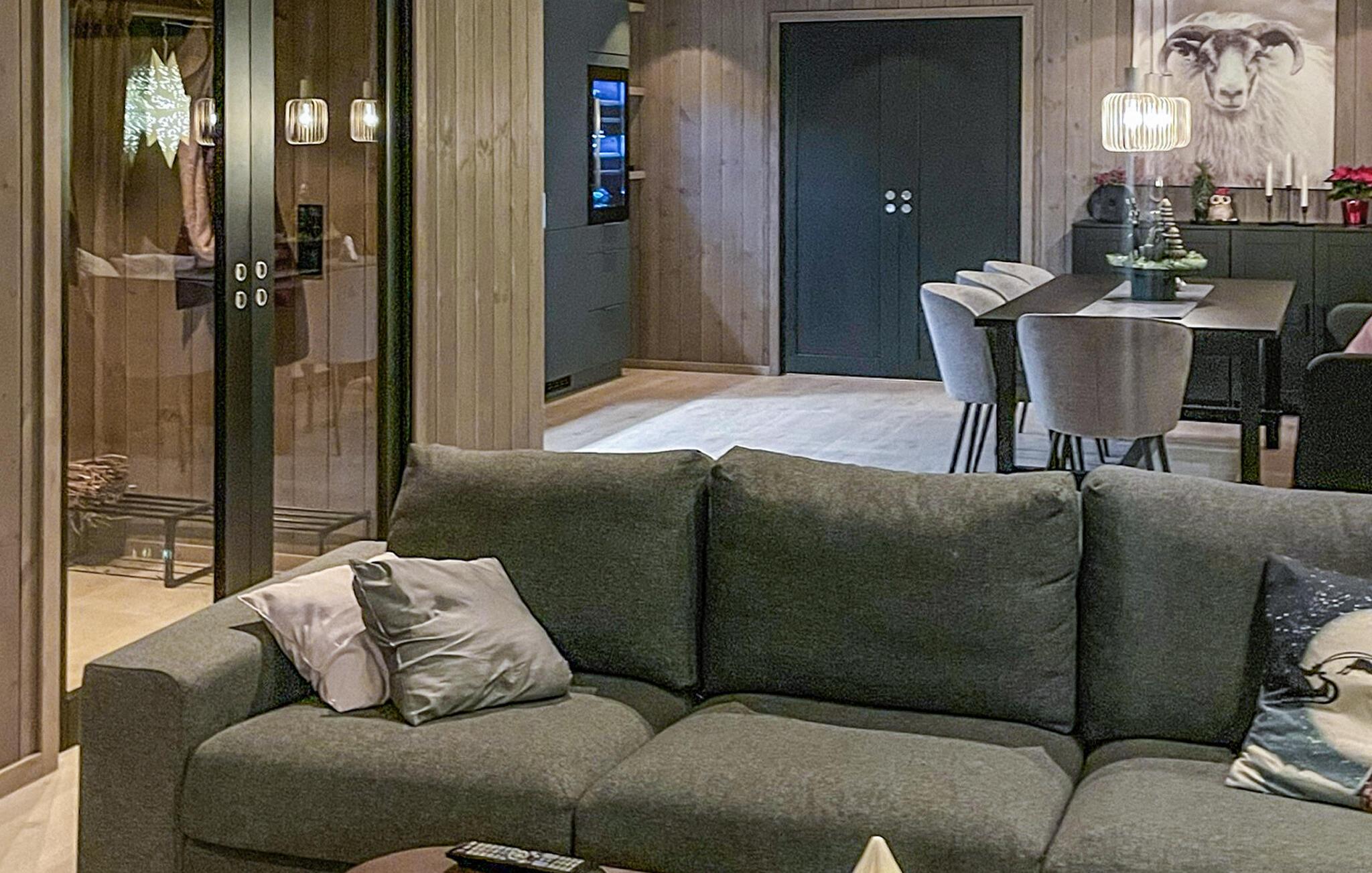 Erleben Sie in diesem geräumigen, modernen Ferienhaus in Budor einen erholsamen Urlaub inmitten der Natur. Mit seiner warmen, luxurösen Atmosphäre und stilvollen Einrichtung bietet Ihnen das Haus den perfekten Rückzugsort für Familien oder Gruppen. Der großzügige Wohnbereich mit großen Fenstern sorgt für viel Tageslicht und einen herrlichen Blick auf die umliegende Landschaft. Nach einem aktiven Tag auf der nahen Skipiste lädt das gemütliche Wohnzimmer mit Kamin zum Entspannen ein, während die gut ausgestattete Küche zu gemeinsamen Kochabenden einlädt. Der perfekte Ort für einen unvergesslichen Aufenthalt.