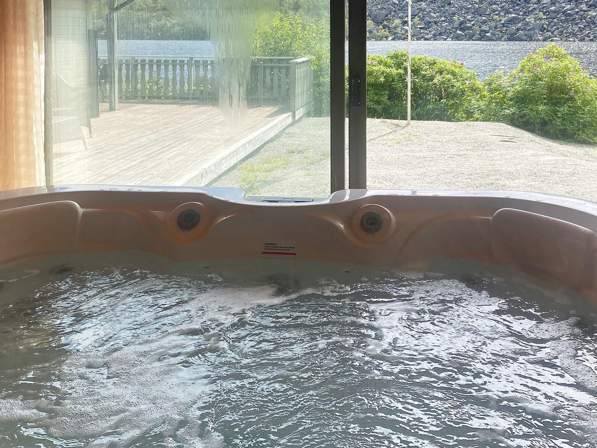 Der überdachte Whirlpool im Außenbereich bietet Platz für sechs Personen. Das Wasser ist 38 Grad warm und kann bis spät in die Nacht genossen werden. Der Zugang zum Badezimmer von außen bietet die Möglichkeit, vor/nach dem Whirlpool kurz zu duschen.
