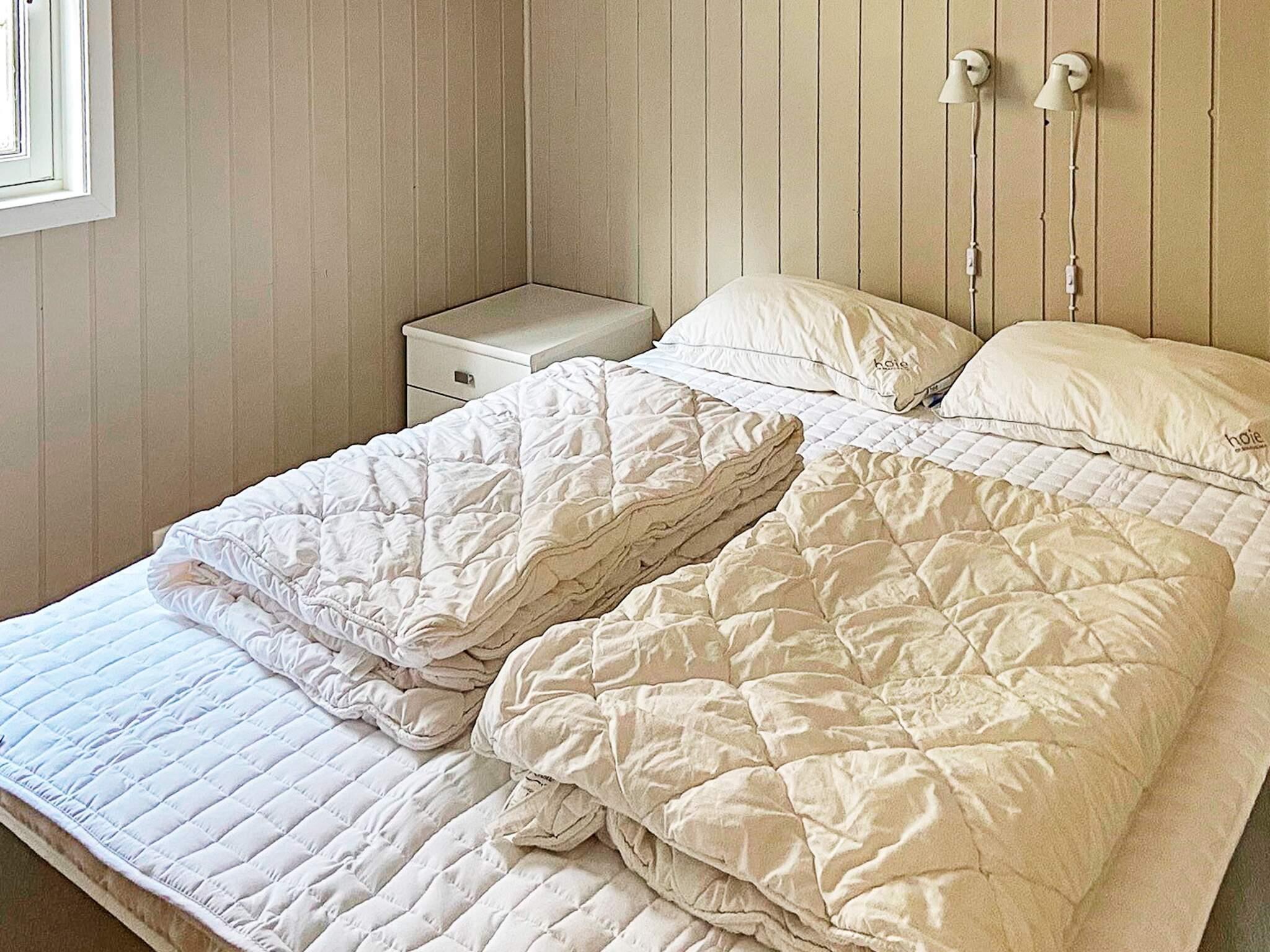 Das Ferienhaus wurde 2021 renoviert und ist hell und freundlich eingerichtet. Es verfügt über insgesamt drei Schlafzimmer: zwei mit je einem 150 cm breiten Doppelbett und eines mit einem Etagenbett. Zusätzlich gibt es auf dem Dachboden den Hems mit zwei 90 cm breiten Betten. Das Ferienhaus hat zwei Badezimmer mit WC, Dusche und Waschbecken. Ein Badezimmer hat Zugang von der Terrasse aus. Es gibt auch eine praktische Waschküche mit Waschmaschine und Trockner.