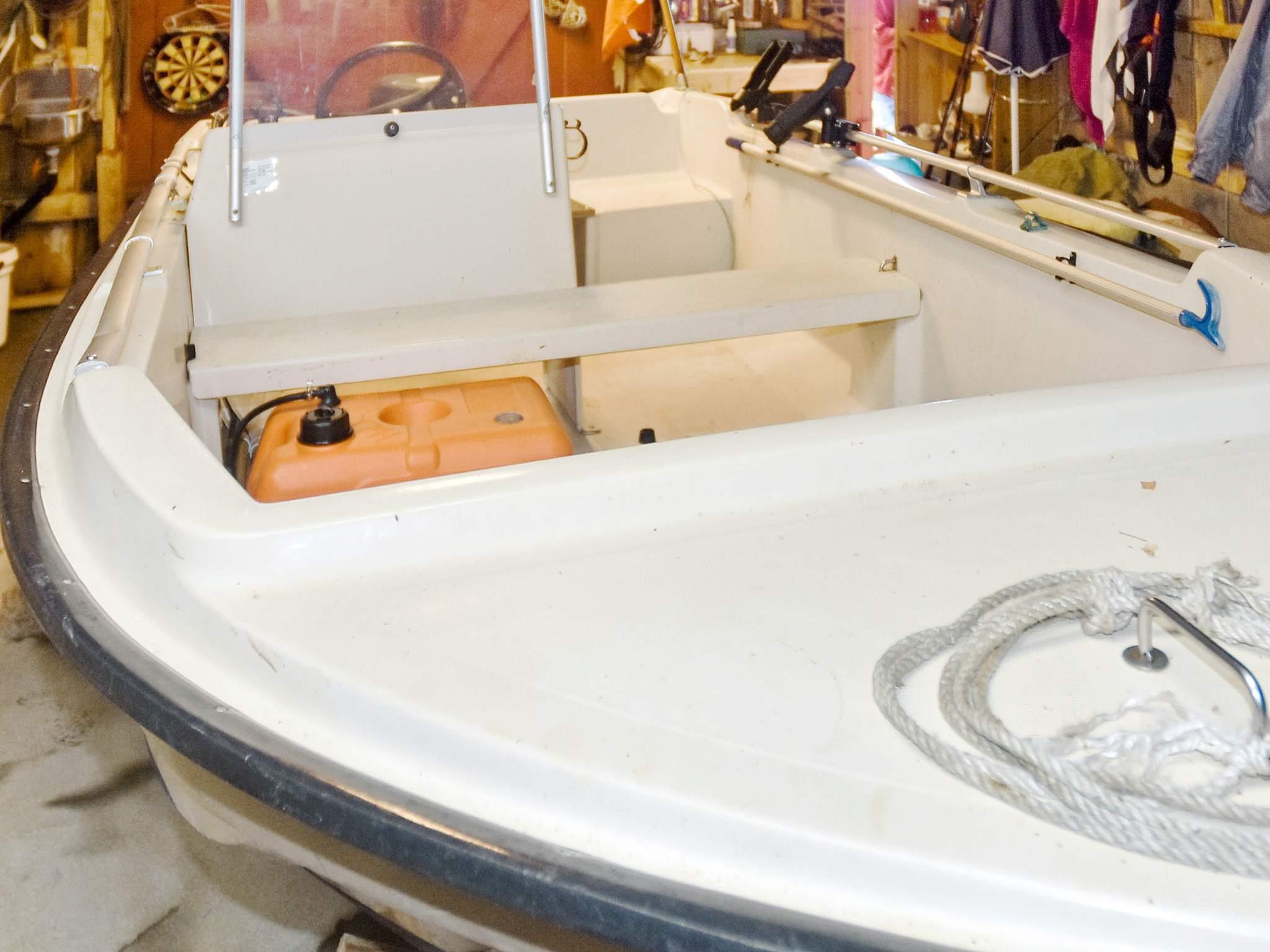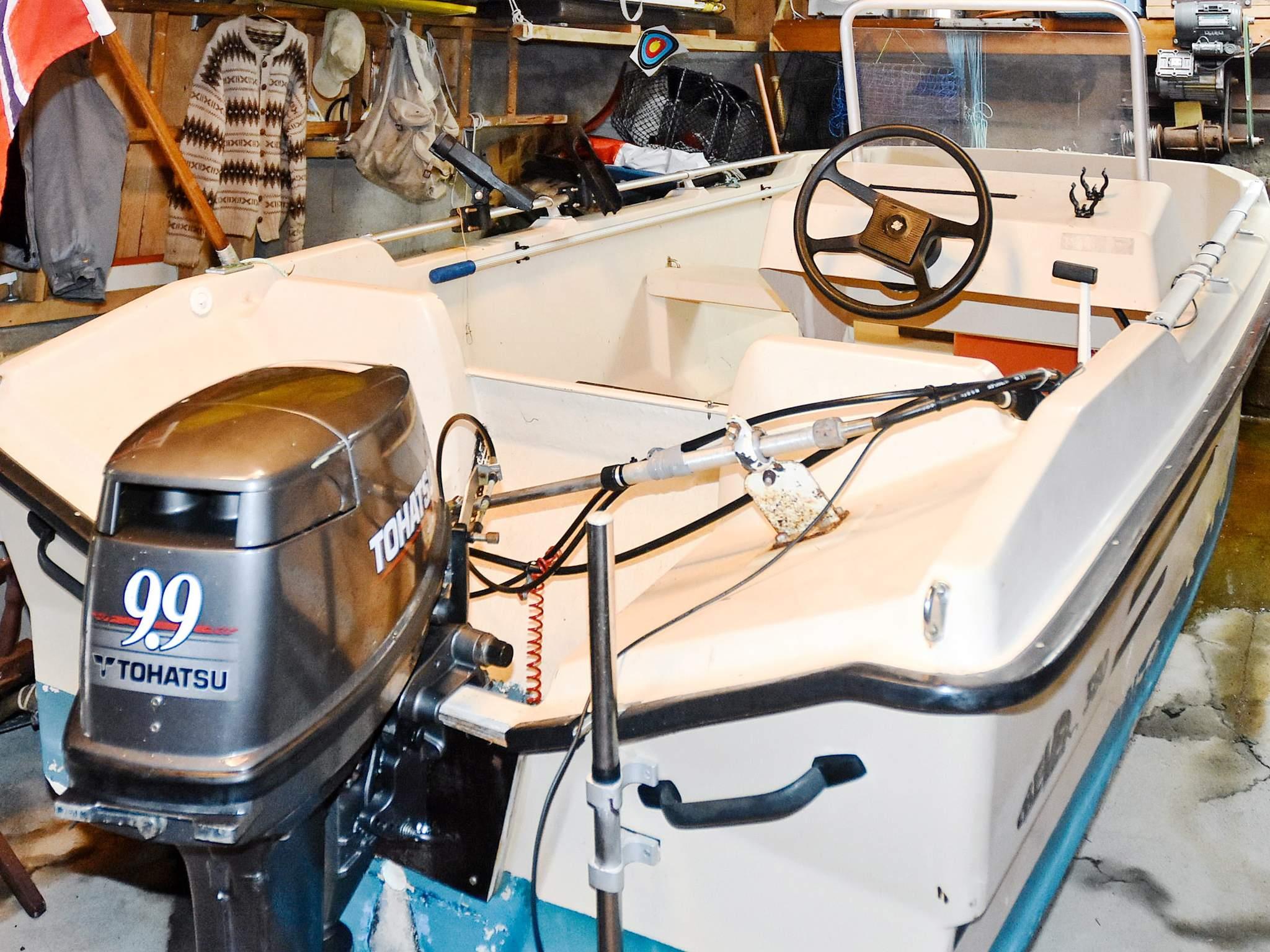Etwa 50 m unterhalb des Ferienhauses findet man den Bootsschuppen und das mietbare 14 Fuß Boot mit Tohatsu-Motor (9,9 bis 15 PS), inkl. Schwimmwesten, das ggf. gleichzeitig mit dem Ferienhaus angemietet werden sollte. Zudem überdachte Filetierbank mit fließend Wasser und Licht.
