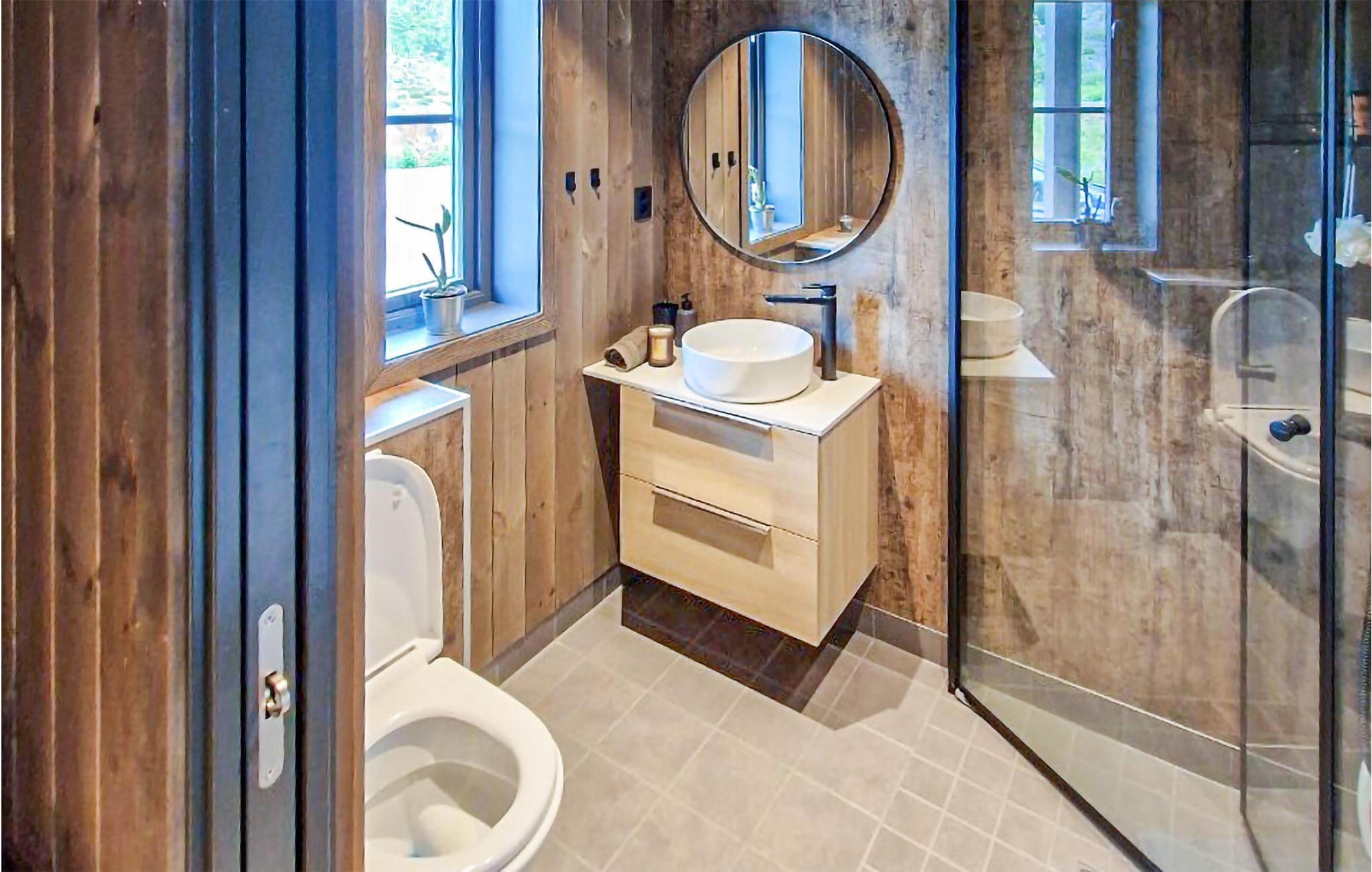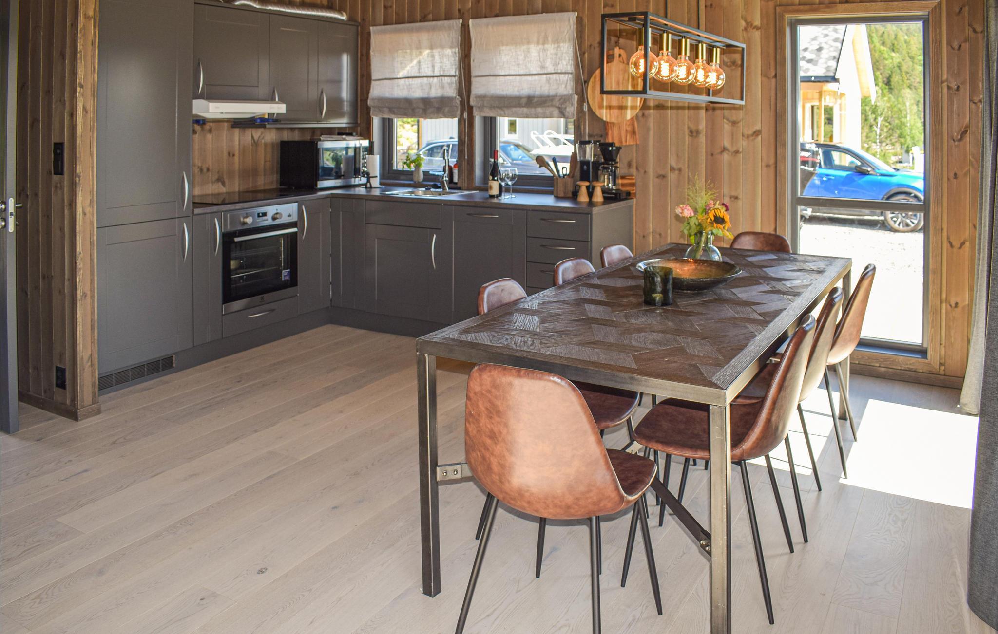 Verbringen Sie einen unvergesslichen Urlaub in diesem einladenden Ferienhaus, dessen große Fenster die fantastische Aussicht besonders gut zur Geltung bringen. Profitieren Sie von der modernen Ausstattung des Hauses und machen Sie es sich nach einem aktiven Tag in der Natur gemeinsam am Kamin gemütlich, der eine behagliche Stimmung verbreitet.