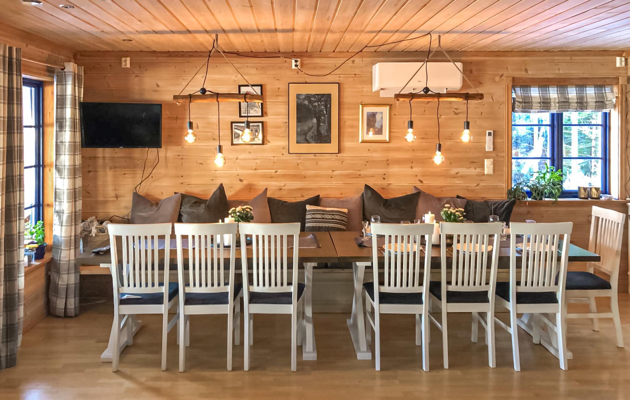Im Winter ist die Gegend ideal für Schisport, und im Sommer können Sie angeln und Sport treiben. Die Natur ist sowohl im Winter als auch im Sommer einzigartig, und Sie können immer etwas unternehmen. Auf dem großen freien Grundstück werden Sie viele Ecken zum Spielen und Entspannen finden, und auf der Terrasse können Sie gemütlich essen und entspannen.
