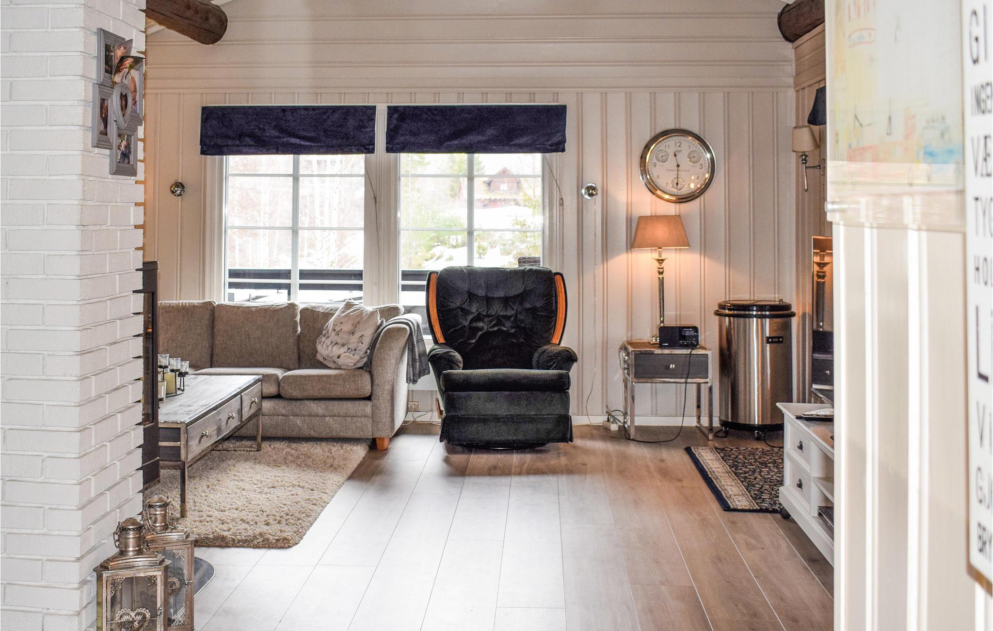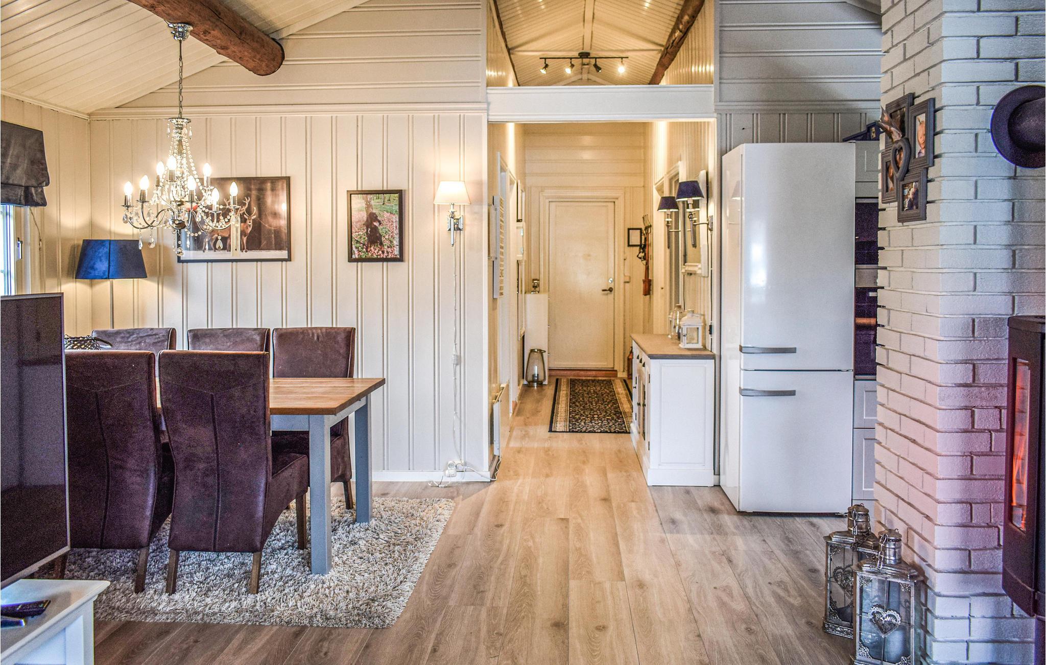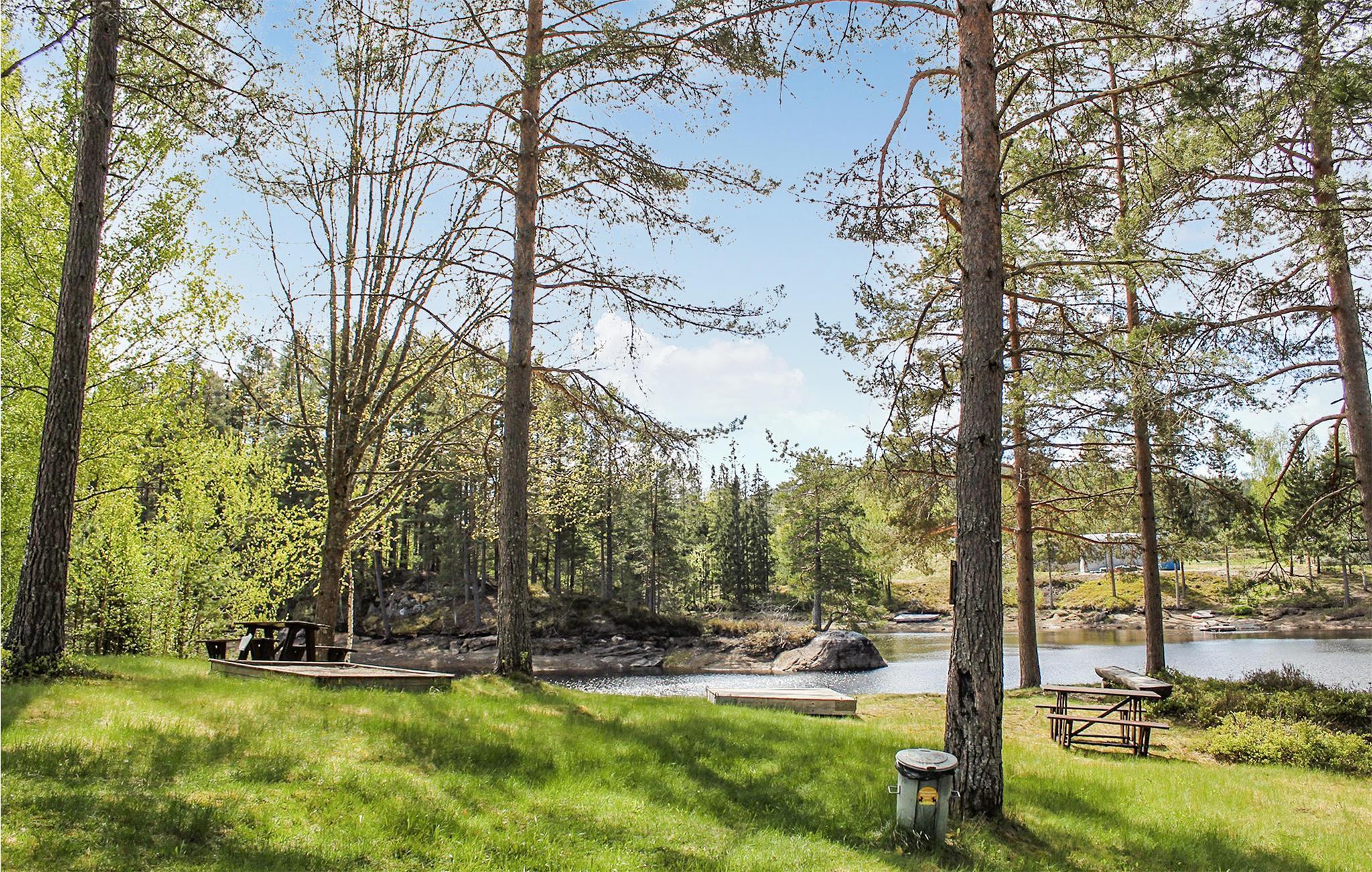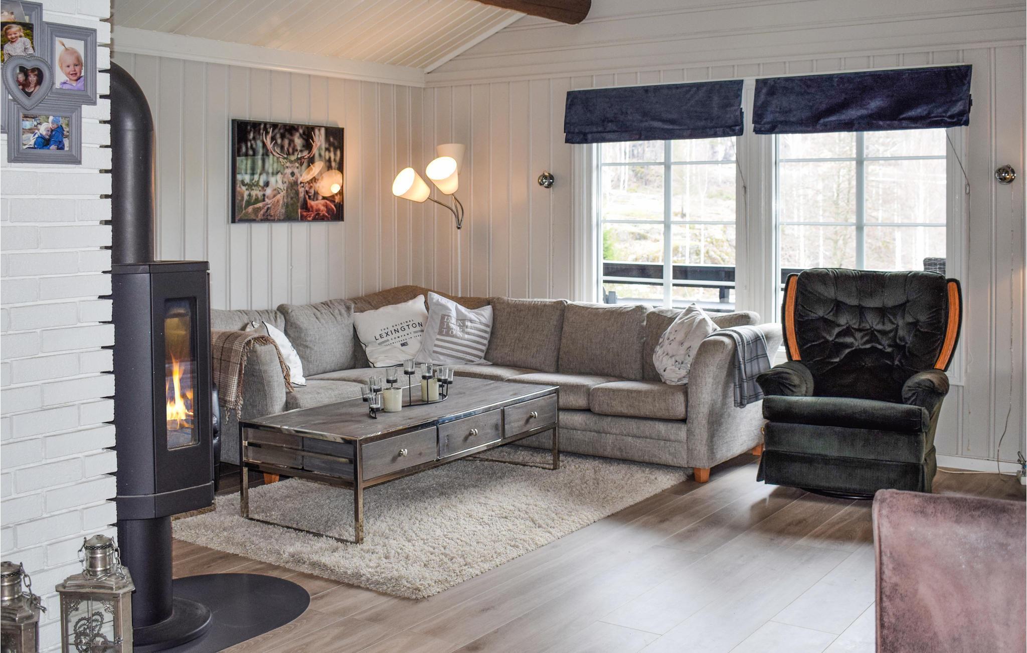 Ferienhütte in einem schönen Hüttengebiet auf einer abgelegenen Halbinsel im Tokevatnet in der Gemeinde Drangedal. Eine ideale Lage für Entdecken dieser einzigartigen Natur mit hervorragenden Möglichkeiten für Outdoor-Aktivitäten wie Schwimmen, Bootfahren und Angeln. Im Inneren des Hauses finden Sie ein gemütliches Wohnzimmer mit hoher Decke, Kamin und schönen dekorativen Elementen. Schon mal probiert, in einem Whirlpool auf einer Terrasse inmitten der Natur zu sitzen und von hier aus den Sonnenuntergang zu genießen? Im Ferienhausgebiet gibt es zwei Bootshäfen, zwei gemeinsame Badestrände mit Rasenfläche, ein gemeinsamer Grillplatz mit Grillpavillon und ein gemeinsamer Bereich für Ballspiele und Toben.