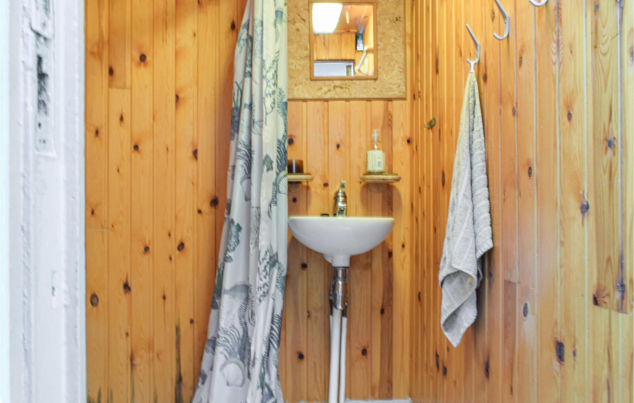 Das Badezimmer hat einen Zugang von außen
