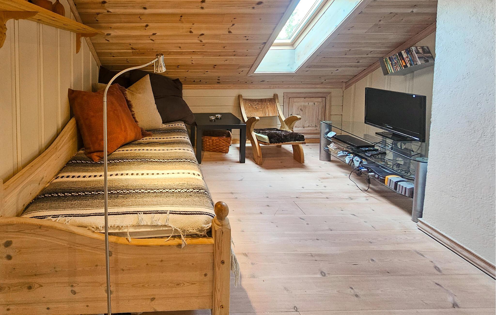 Genießen Sie in dieser gemütlichen Hütte den warmen Charme der holzvertäfelten Wohnräume und verbringen Sie nach einem Tag in der Natur erholsame Stunden auf dem Sofa. Kommen Sie am großen Esstisch mit Familie oder Freunden zusammen, um gemeinsam zu essen, zu spielen oder den Abend bei einem Glas Wein ausklingen zu lassen. Und wenn Sie sich etwas Besonderes gönnen möchten, wartet die Sauna auf Sie.
