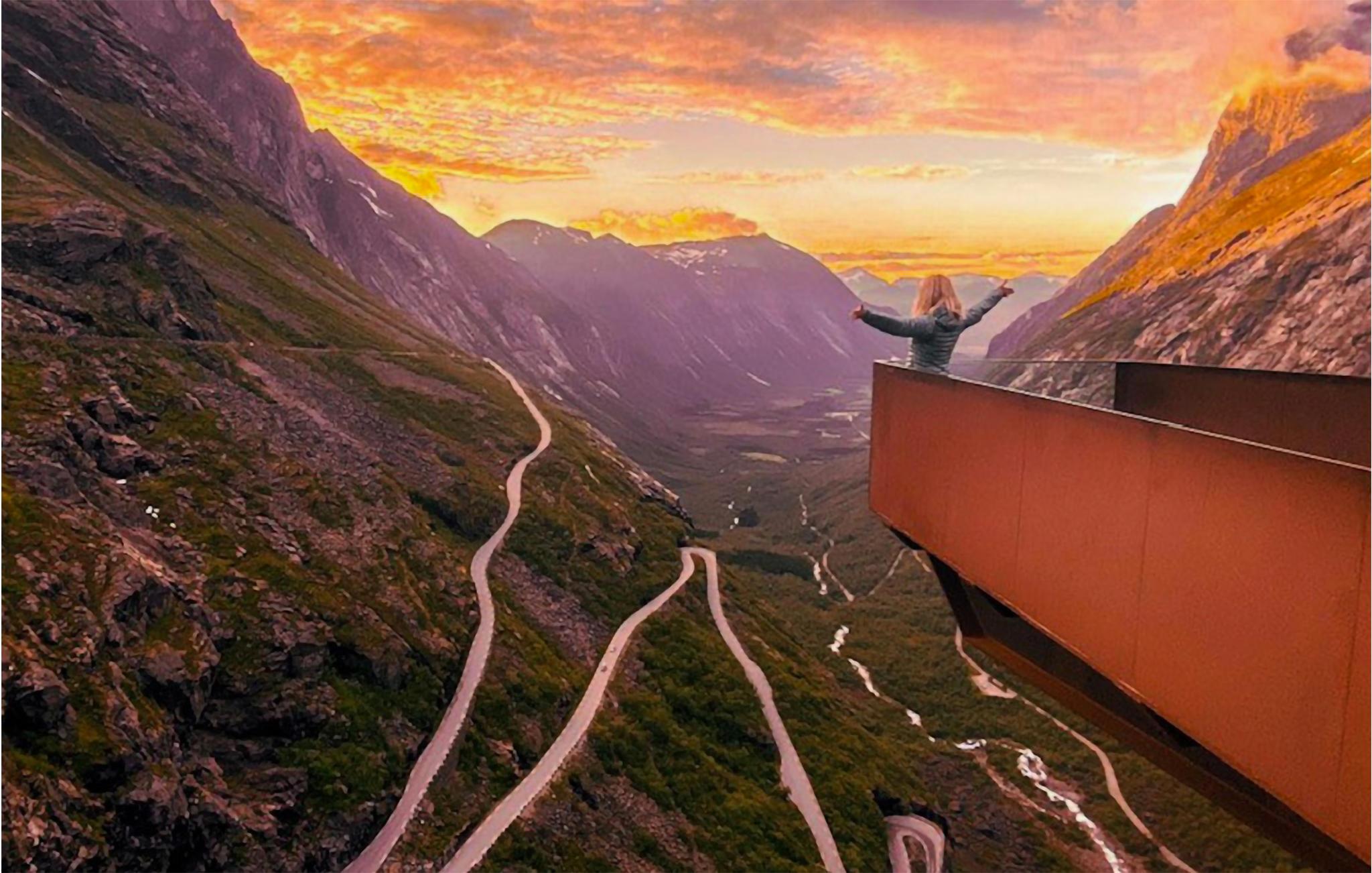 Erkunden Sie die spektakuläre Straße Trollstigen und bestaunen Sie den Blick auf das imposante Felsmassiv Trollveggen im Reinheimen-Nationalpark. Erklimmen Sie den Romsdalshornet, besuchen Sie das beeindruckende Trollkirka-Höhlensystem bei Fræna mit unterirdischen Wasserfällen oder radeln Sie entlang der imposanten Atlantikstraße.
