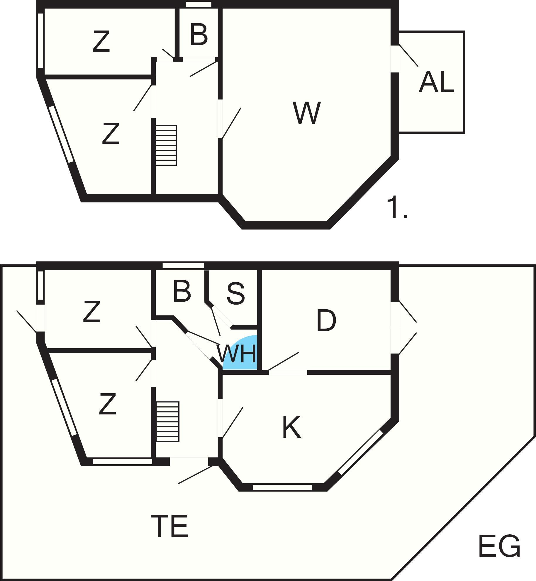 4 Schlafz.: (1DB)+(2B+1L)+(1DB)+(2DB+2K), Kinderbett