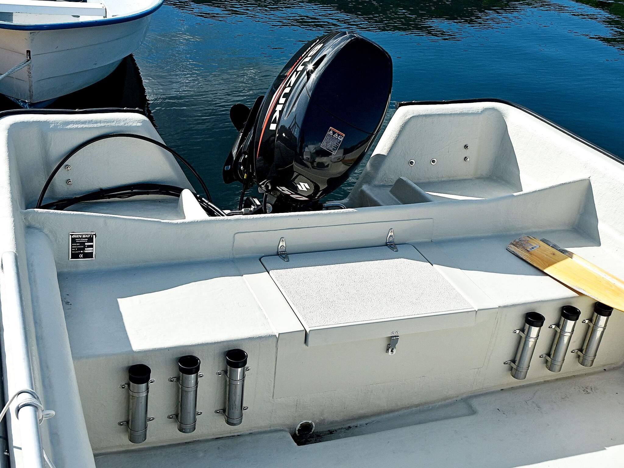 - *5 x 21 Fuß Øien 620F mit 50 PS Suzuki-Motor, GPS/Echolot/Kartenplotter.
