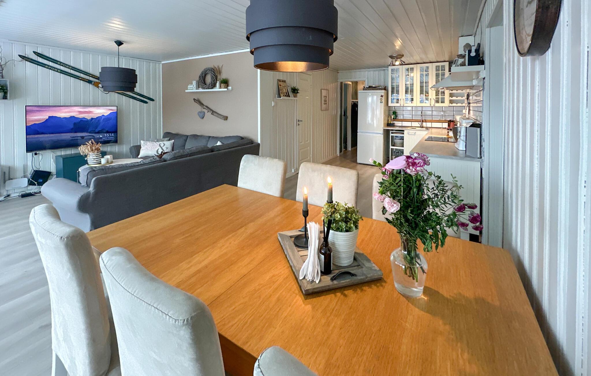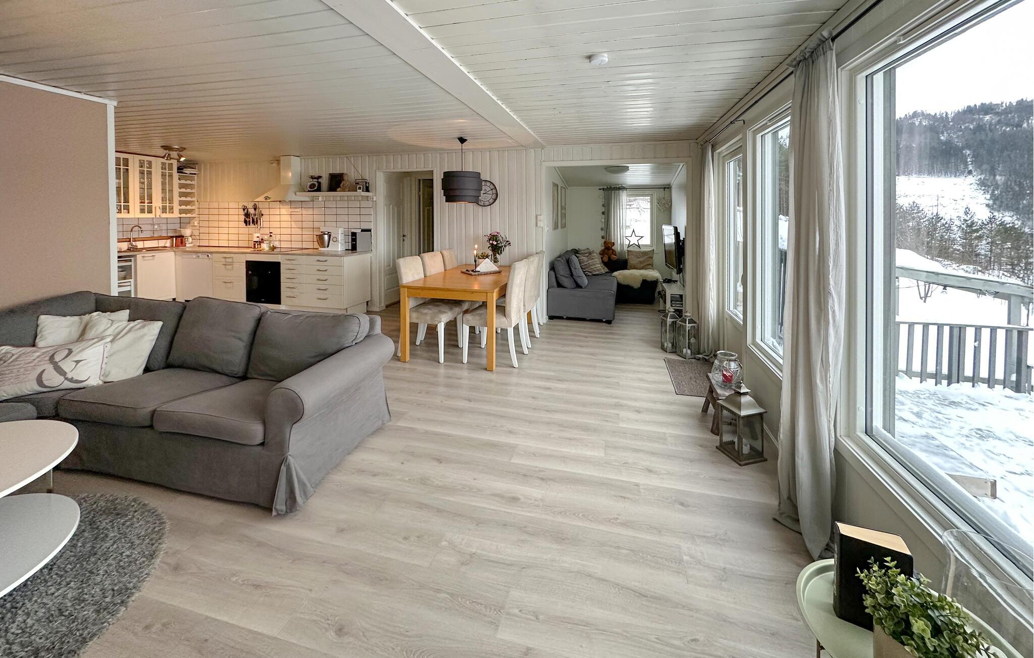 Ferienhaus mit Charme und einzigartiger Panoramaaussicht über den hübschen See Lygne. Auf der Terrasse können Sie bei einer Tasse Kaffee den ruhigen Morgen genießen, bevor Sie den Tagesausflug planen. Diese Gegend ist für ihre herrliche Naturlandschaft bekannt; hier gibt es eine Menge Wanderpfade und gute Angelmöglichkeiten. Es steht Ihnen ein Kanu frei zur Verfügung, mit dem Sie das hiesige Gewässer näher erforschen können. Die Wälder ums Ferienhaus herum behausen viele Tiere und mit ein wenig Glück können Sie u.a. Elch und Auerhuhn von kurzer Entfernung betrachten. An warmen Sommertagen finden Sie Nah am Ferienhaus einen Badestrand und einen Aktivitätspark für die Kinder. Zur Winterzeit erreichen Sie nach einer kurzen Autofahrt schöne Ebenen, welche zu Langlauftouren einladen.