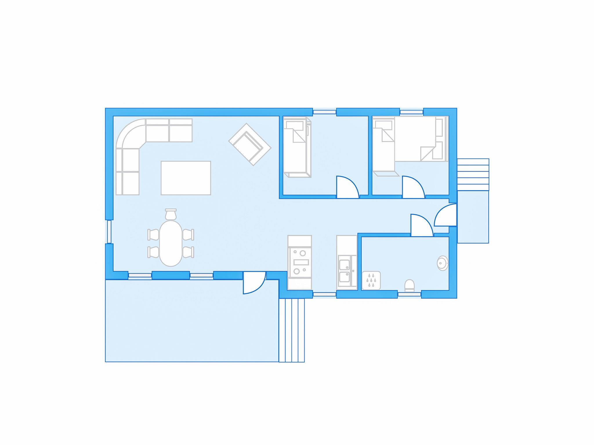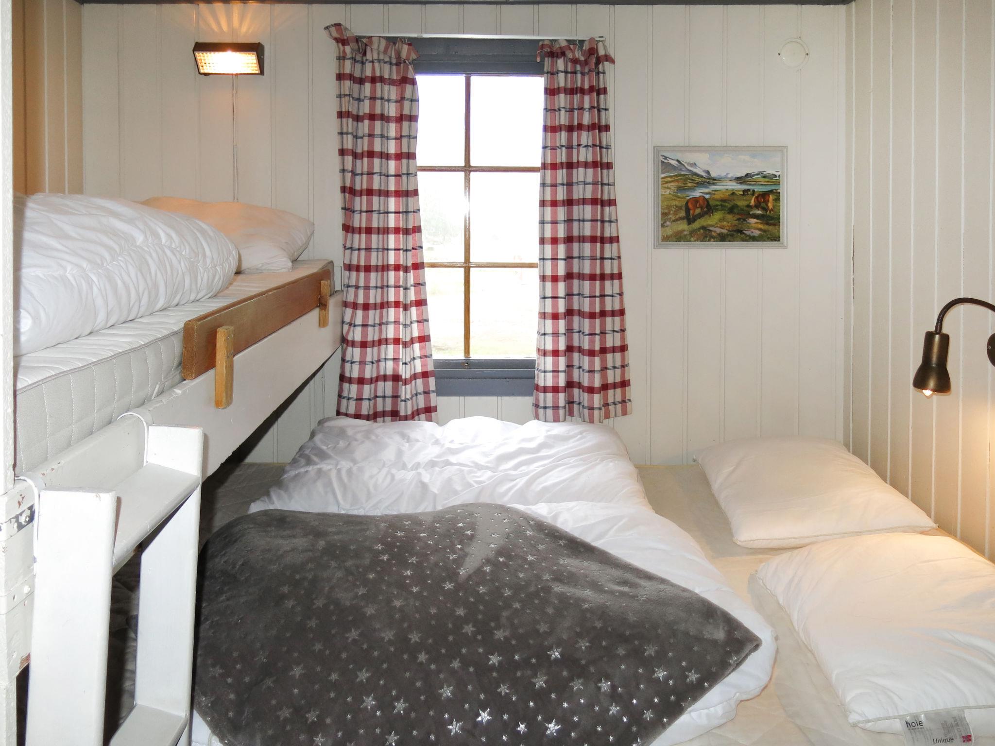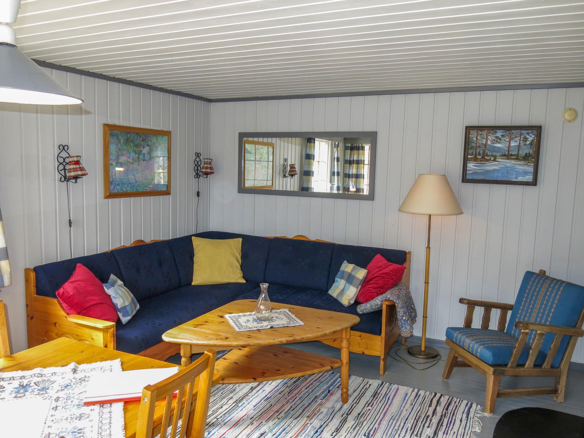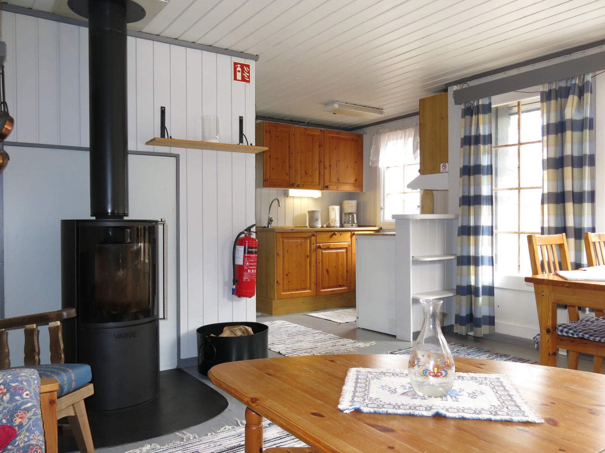 "Trygvebu", 3-Zimmer-Haus 40 m2. Gemütlich und mit viel Holz eingerichtet: Wohn-/Esszimmer mit Schwedenofen und Esstisch. Ausgang zur Terrasse. 1 Zimmer mit 1 x 1 Etagenbetten (80 cm, Länge 200 cm), 1 Doppelbett (160 cm, Länge 200 cm). 1 Zimmer mit 1 x 2 Etagenbetten (80 cm, Länge 200 cm). Offene Küche (4 Kochplatten, Backofen, Toaster, Wasserkocher, Mikrowelle, elektrische Kaffeemaschine). Dusche/WC. E-Heizung. Holzdielenboden. Kleine Terrasse 10 m2 teilweise überdacht. Terrassenmöbel, Gartengrill (mobil). Zur Verfügung: Holz (extra). Bitte beachten: Kühlschrank ohne Gefrierfach, Nichtraucher-Haus. Maximal 2 Haustiere/Hunde erlaubt. Rauchmelder, Feuerlöscher. 924531169