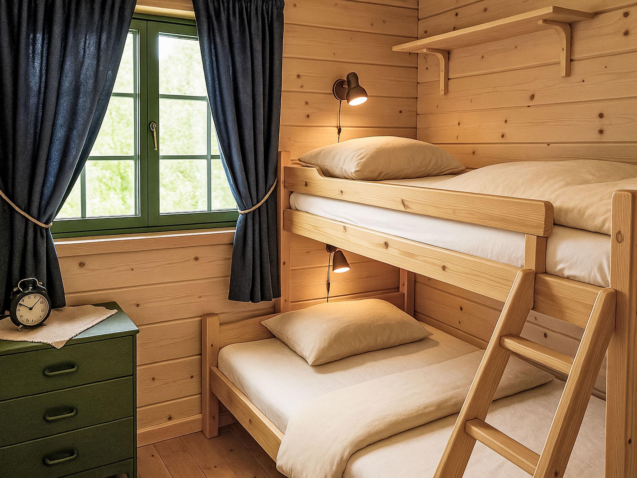 "Lettibu", 5-Zimmer-Haus 91 m2 auf 2 Stockwerken. Gemütlich eingerichtet: Wohn-/Esszimmer mit Schwedenofen, Esstisch und Digital-TV. Ausgang zur Terrasse. 1 Zimmer mit 1 Doppelbett (140 cm, Länge 200 cm). 1 Zimmer mit 1 x 2 Etagenbetten (120 cm, Länge 200 cm) (75 cm, Länge 200 cm). Wohnzimmer. Ausgang zur Terrasse. Offene Küche (Backofen, 4 Glaskeramikplatten, Toaster, Wasserkocher, Mikrowelle, Tiefkühler, elektrische Kaffeemaschine). Dusche, sep. WC. E-Heizung. Obergeschoss: (steile Treppe) Wohnzimmer mit TV und DVD. 1 Zimmer mit 1 x 2 Etagenbetten (75 cm, Länge 200 cm). Holzdielenboden. Komfortable Einrichtung im Landhausstil. Terrasse 45 m2 teilweise überdacht. Terrassenmöbel, Gartengrill (mobil). Schöne Sicht auf die Berge. Zur Verfügung: Waschmaschine. Internet (WLAN, gratis). Bitte beachten: Nichtraucher-Haus. Maximal 1 kleines Haustier/Hund erlaubt. Gefrierschrank ca. 80 l. 924531169