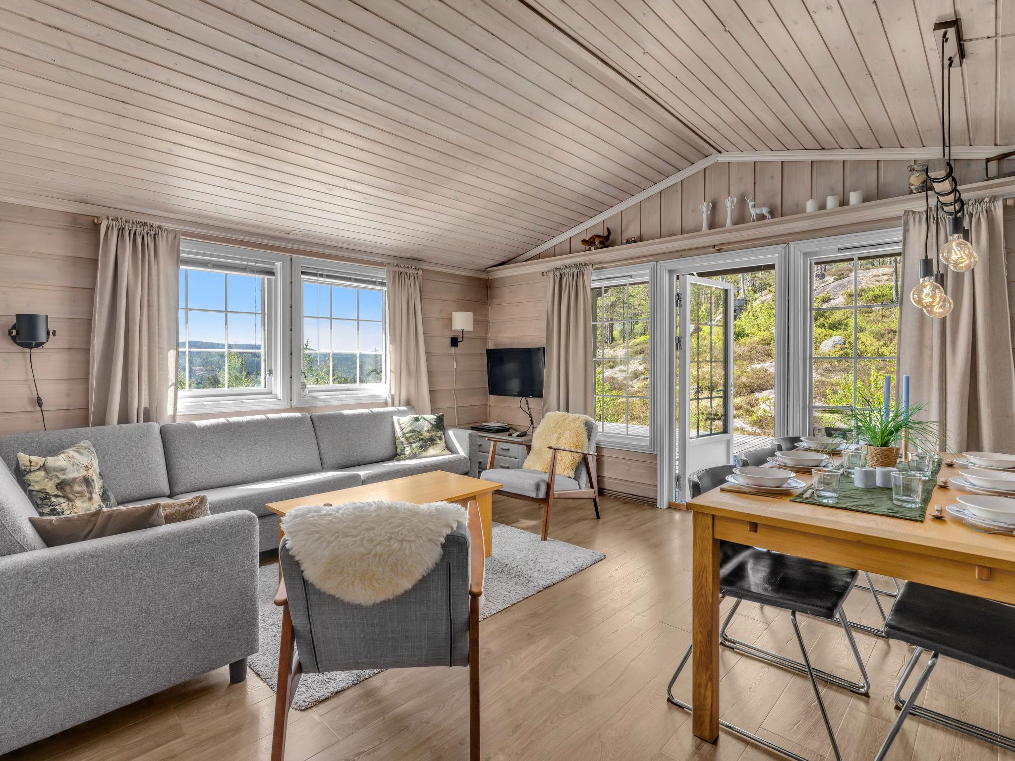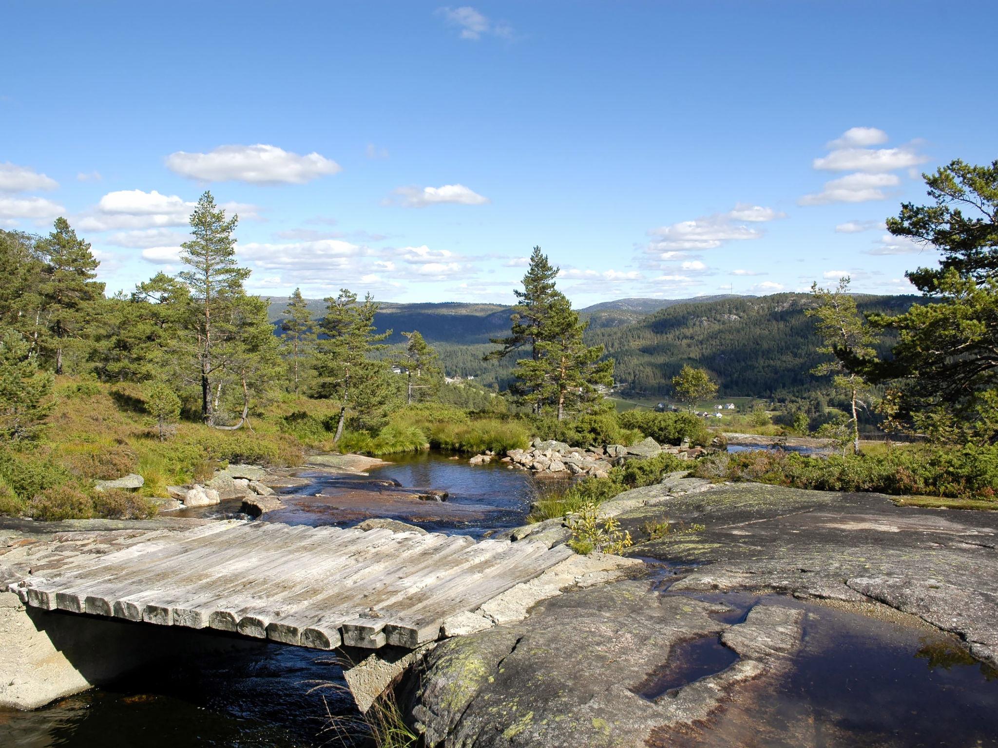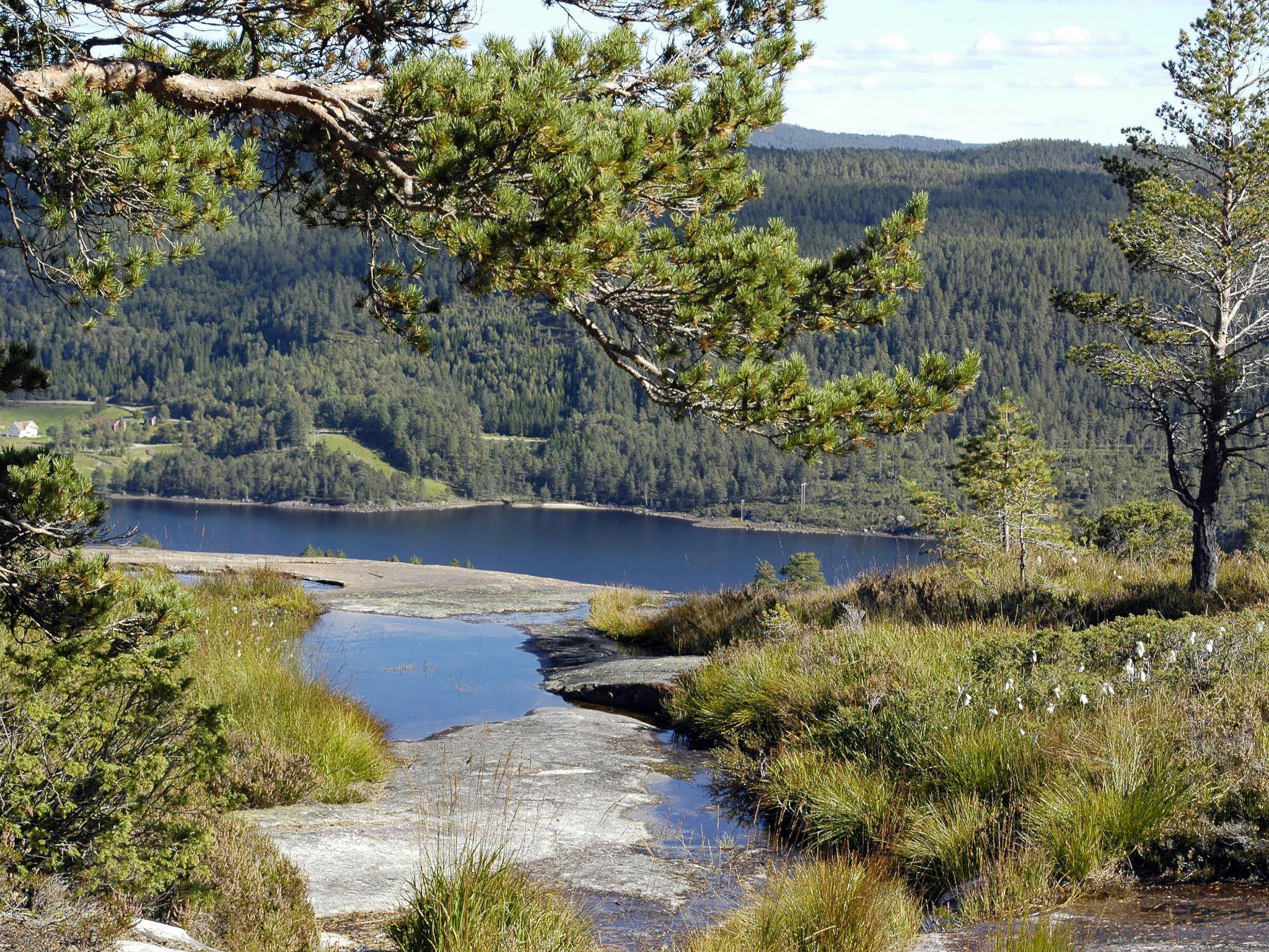 Feriensiedlung "Torebu", 370 m.ü.M.. 11 km vom Zentrum von Kirkjebygd, 77 km vom Zentrum von Mandal, 83 km vom Zentrum von Kristiansand, 400 m vom See. Zur Alleinbenutzung: naturbelassenes Grundstück 1'000 m2. Terrasse (50 m2), Gartenmöbel, Grill, Parkplatz auf dem Grundstück. Einkaufsgeschäft 11 km, Bushaltestelle "Sveindal" 17 km, Bahnstation "Audnedal" 42 km, Fähre "Kristiansand" 83 km, Park 2 km.