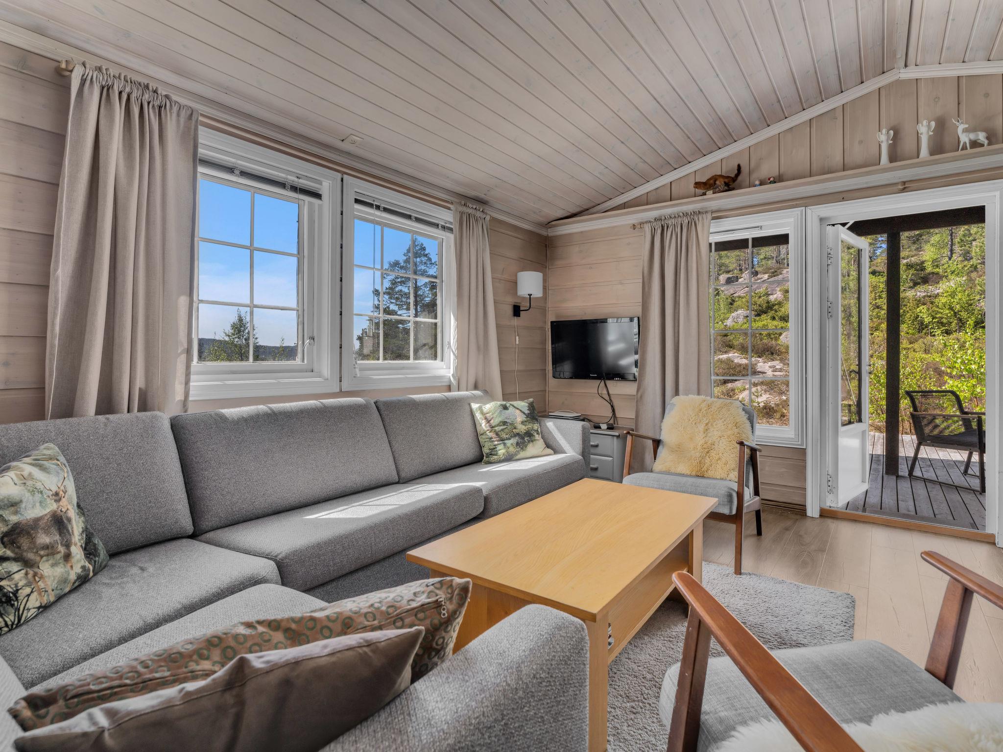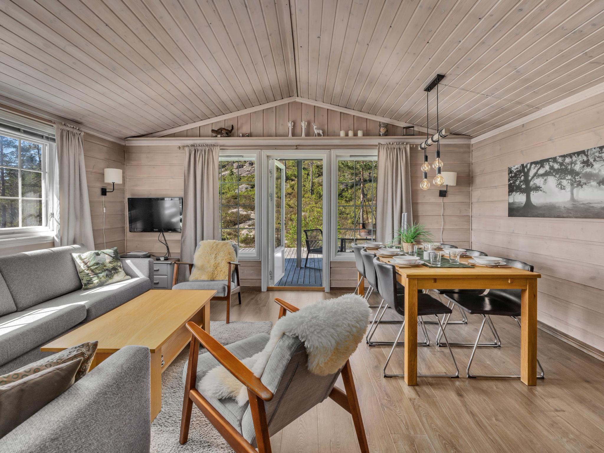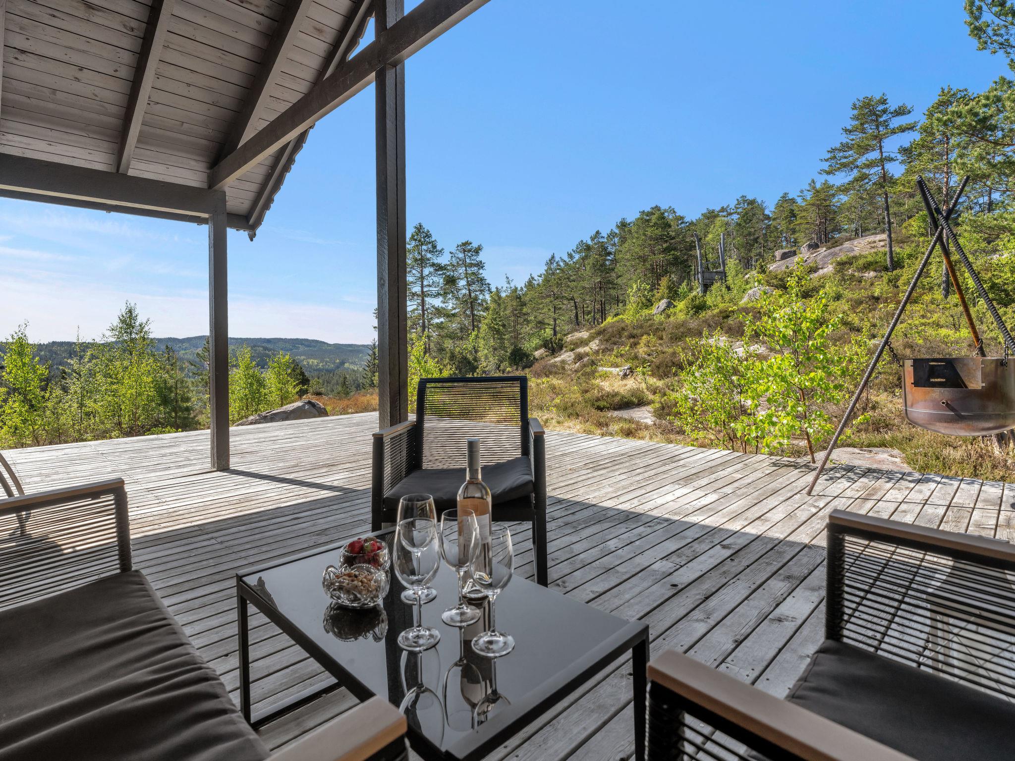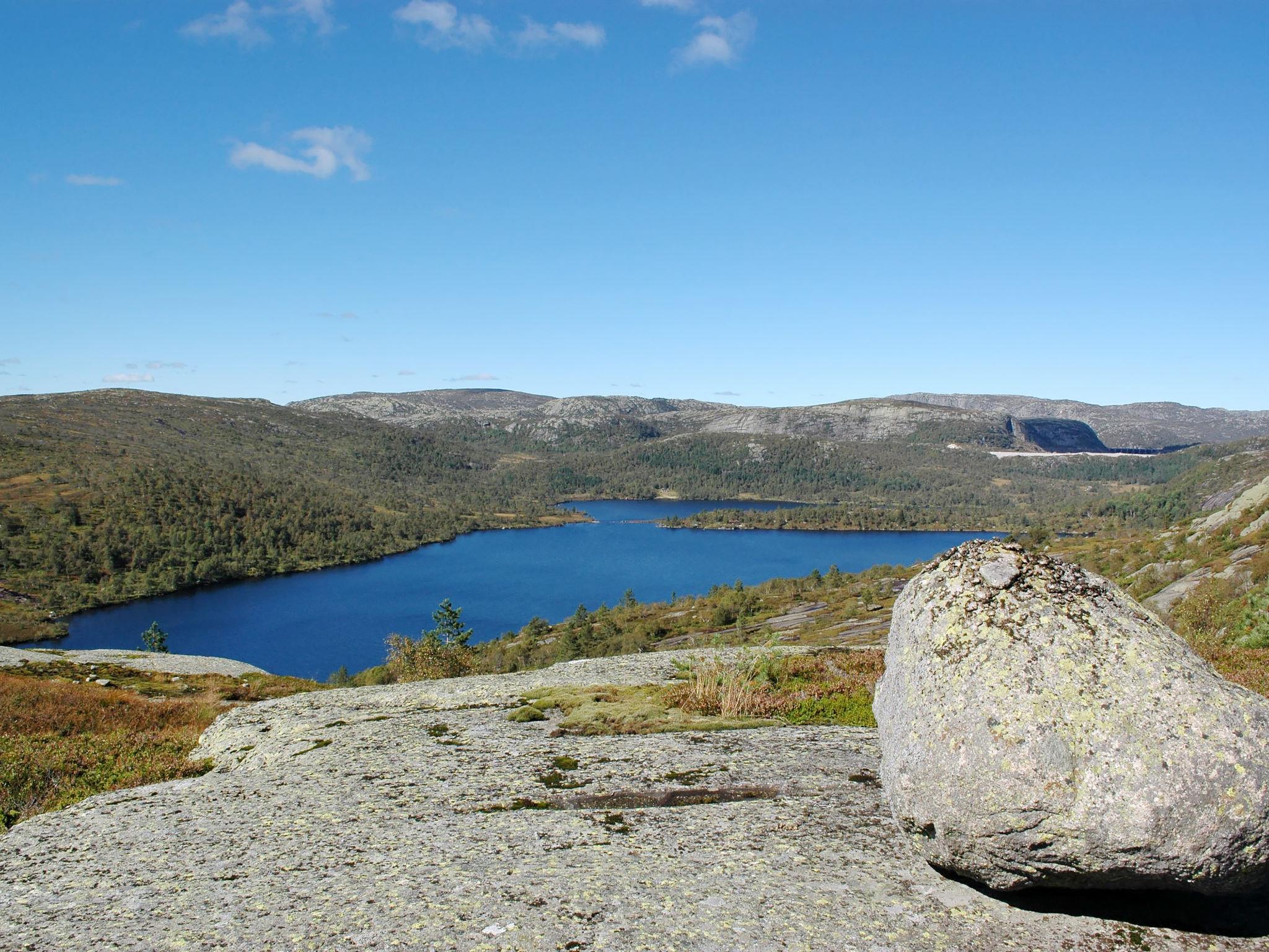 Feriensiedlung "Torebu", 370 m.ü.M.. 11 km vom Zentrum von Kirkjebygd, 77 km vom Zentrum von Mandal, 83 km vom Zentrum von Kristiansand, 400 m vom See. Zur Alleinbenutzung: naturbelassenes Grundstück 1'000 m2. Terrasse (50 m2), Gartenmöbel, Grill, Parkplatz auf dem Grundstück. Einkaufsgeschäft 11 km, Bushaltestelle "Sveindal" 17 km, Bahnstation "Audnedal" 42 km, Fähre "Kristiansand" 83 km, Park 2 km.