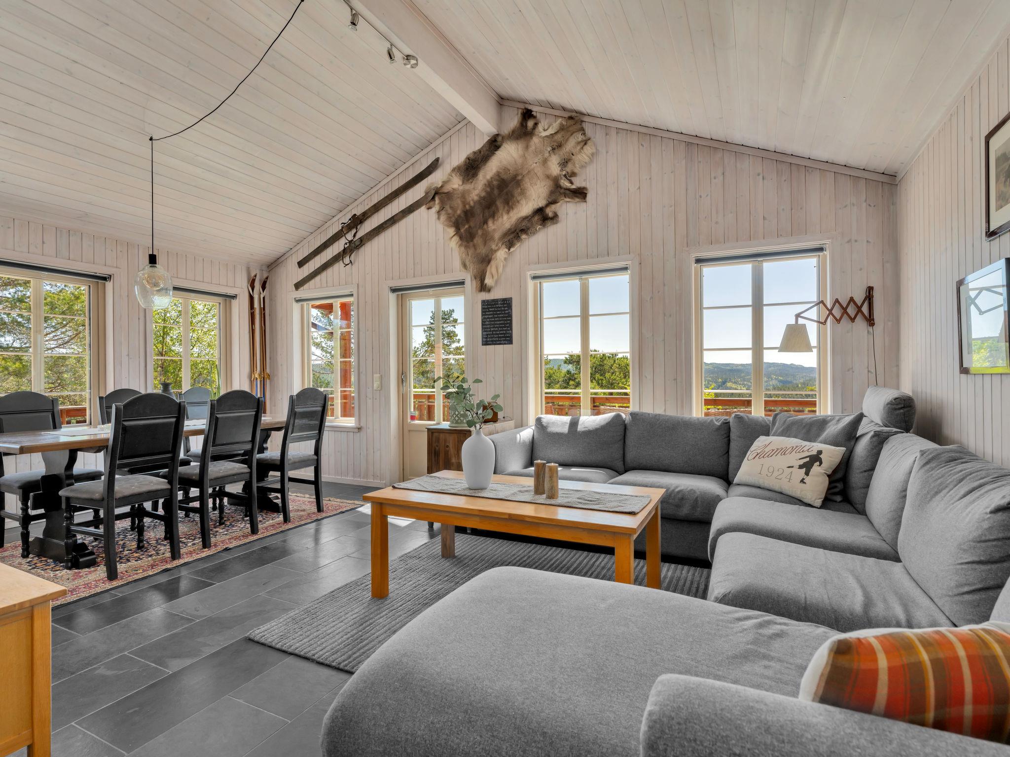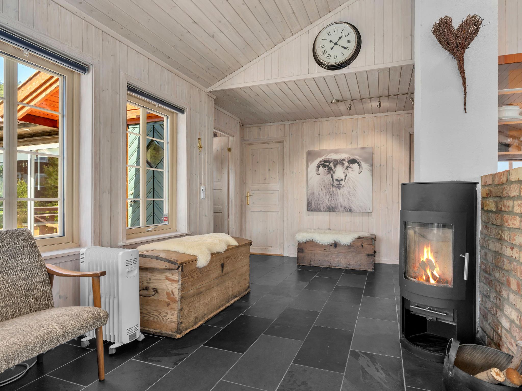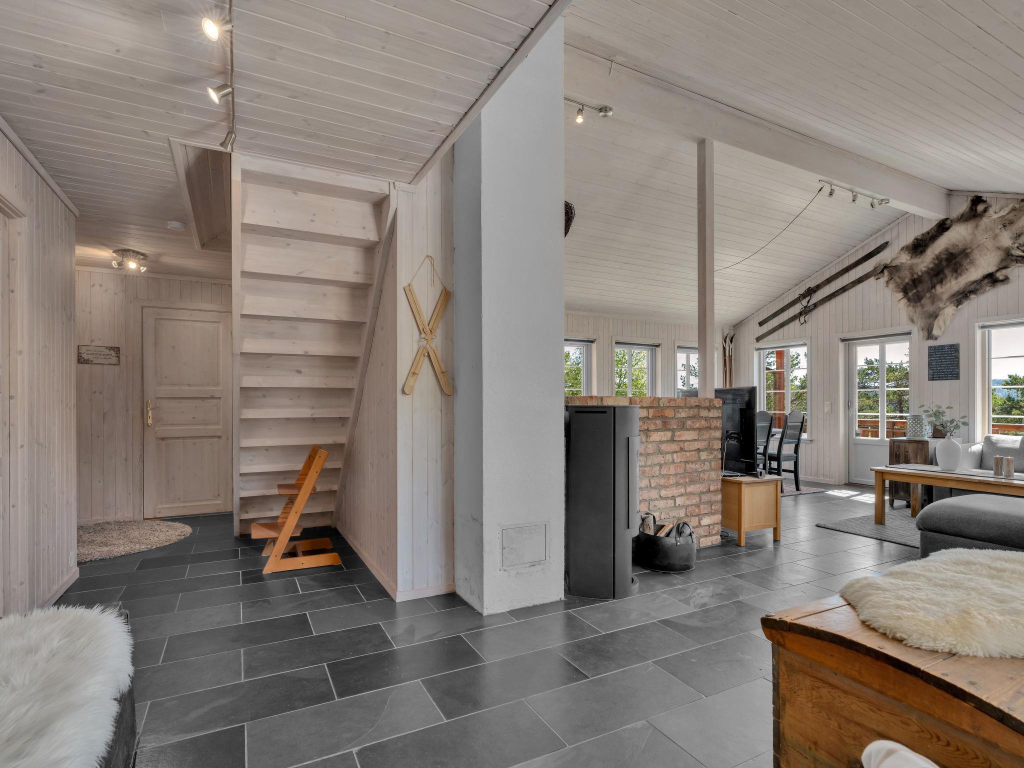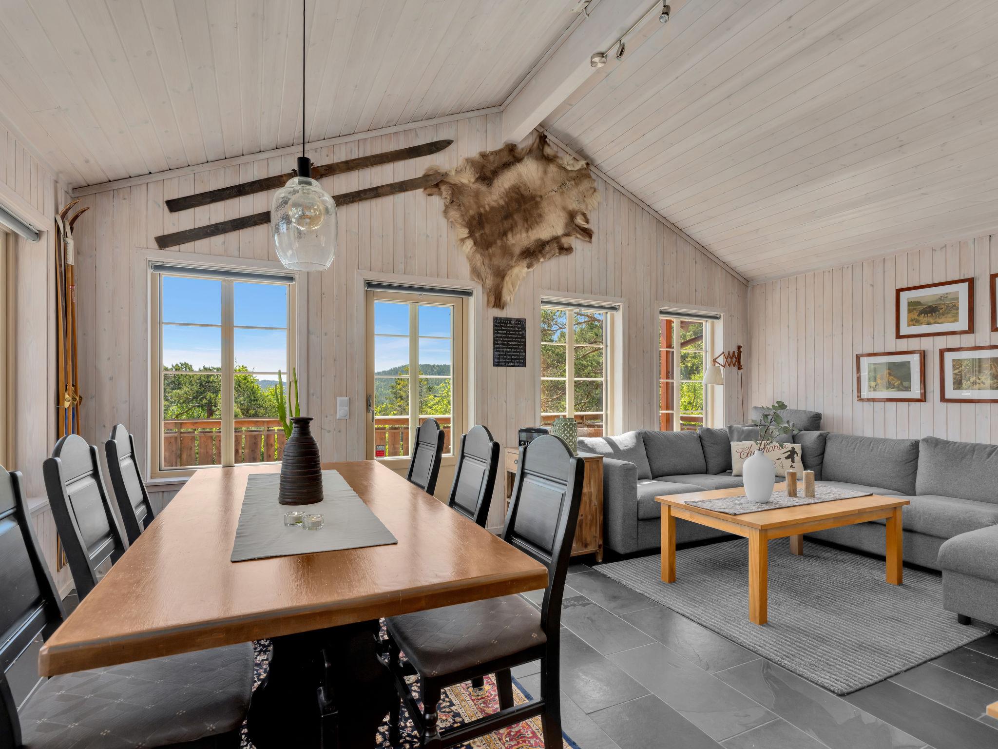 "Eikebu", 4-Zimmer-Haus 85 m2. Geschmackvoll und gemütlich eingerichtet: Wohn-/Esszimmer mit Schwedenofen, Sat-TV und DVD. Ausgang zur Terrasse. 2 Zimmer, jedes Zimmer mit 1 Doppelbett (150 cm, Länge 200 cm), 1 Wandklappbett (80 cm, Länge 200 cm). 1 Zimmer mit 1 Doppelbett (150 cm, Länge 200 cm). Offene Küche (Backofen, Geschirrspüler, 4 Glaskeramikplatten, Toaster, Wasserkocher, Mikrowelle, Tiefkühler, elektrische Kaffeemaschine). Dusche/WC. Grosse Terrasse 20 m2, grosse Terrasse 43 m2 teilweise überdacht. Terrassenmöbel, Gartengrill. Sehr schöne Panoramasicht auf den See und die Landschaft. Zur Verfügung: Waschmaschine. Bitte beachten: Nichtraucher-Unterkunft. Rauchmelder. Flexibilität bei der Bettenaufteilung: Es stehen mehr Schlafmöglichkeiten zur Verfügung als die maximal zugelassene Personenzahl, diese darf dennoch nicht überschritten werden. 924531169
