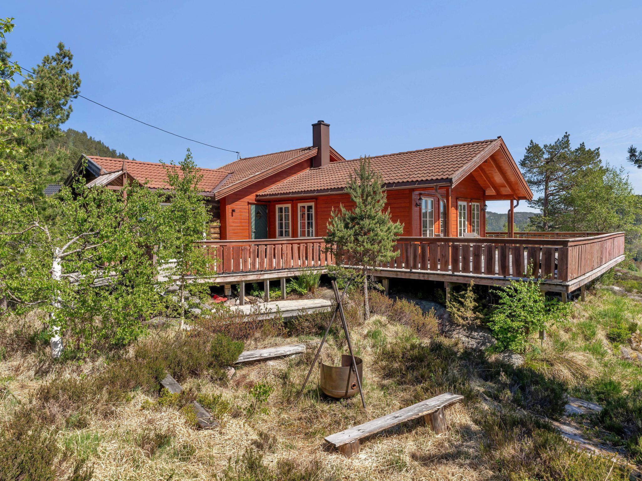 Schönes, komfortables Holzhaus "Eikebu", 370 m.ü.M.. Im Ortsteil Eikerapen, 12 km vom Zentrum von Åseral, 45 km vom Zentrum von Evje, 70 km vom Zentrum von Lyngdal, sonnige, erhöhte Lage am Hang, 2 km vom See. Zur Alleinbenutzung: naturbelassenes Grundstück 650 m2 mit Wiese, Parkplatz (für 2 Autos) beim Haus. Einkaufsgeschäft 12 km, Bushaltestelle 4 km, Fähre "Kristiansand" 85 km, Grasstrand 2 km, See Øre 2 km. Angelmöglichkeit 2 km. Bitte beachten: Fahrzeug empfohlen.