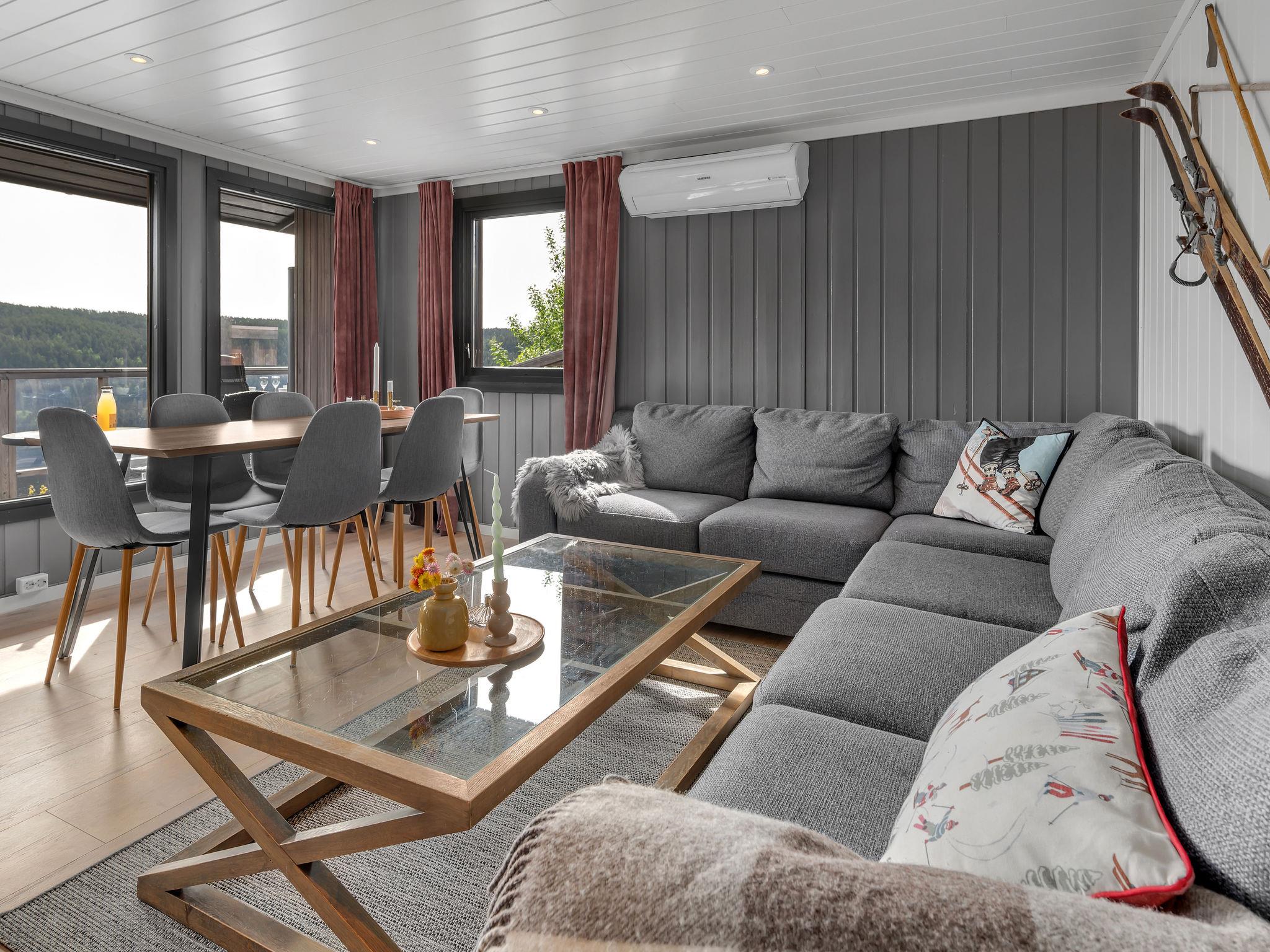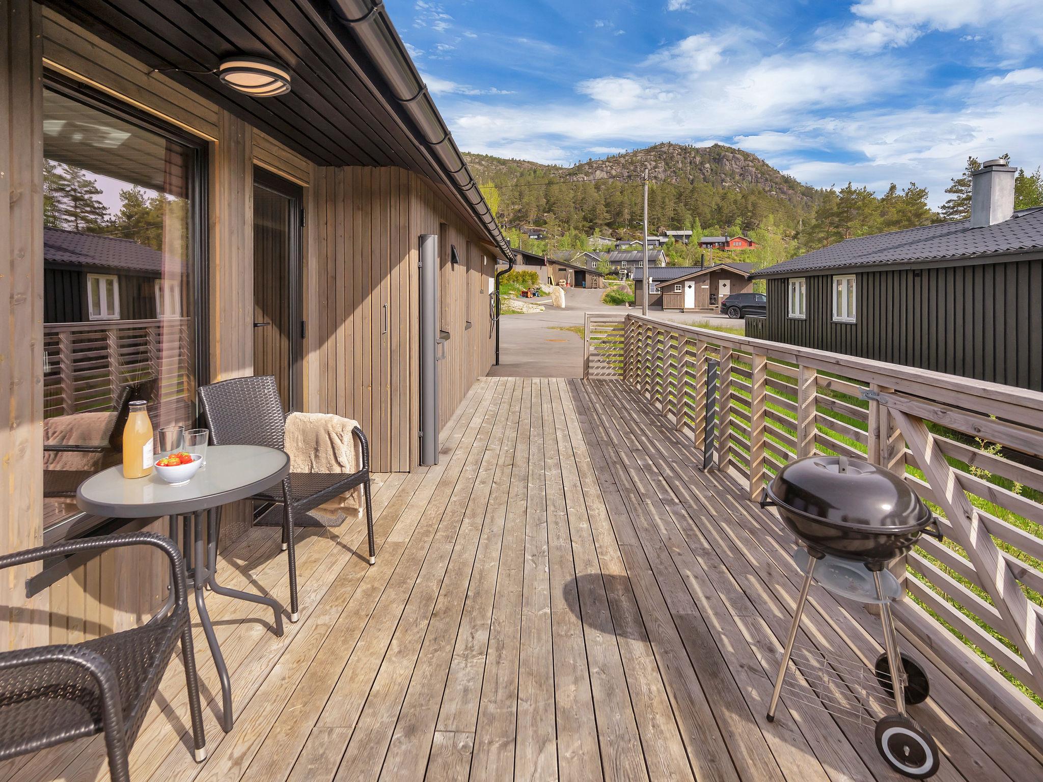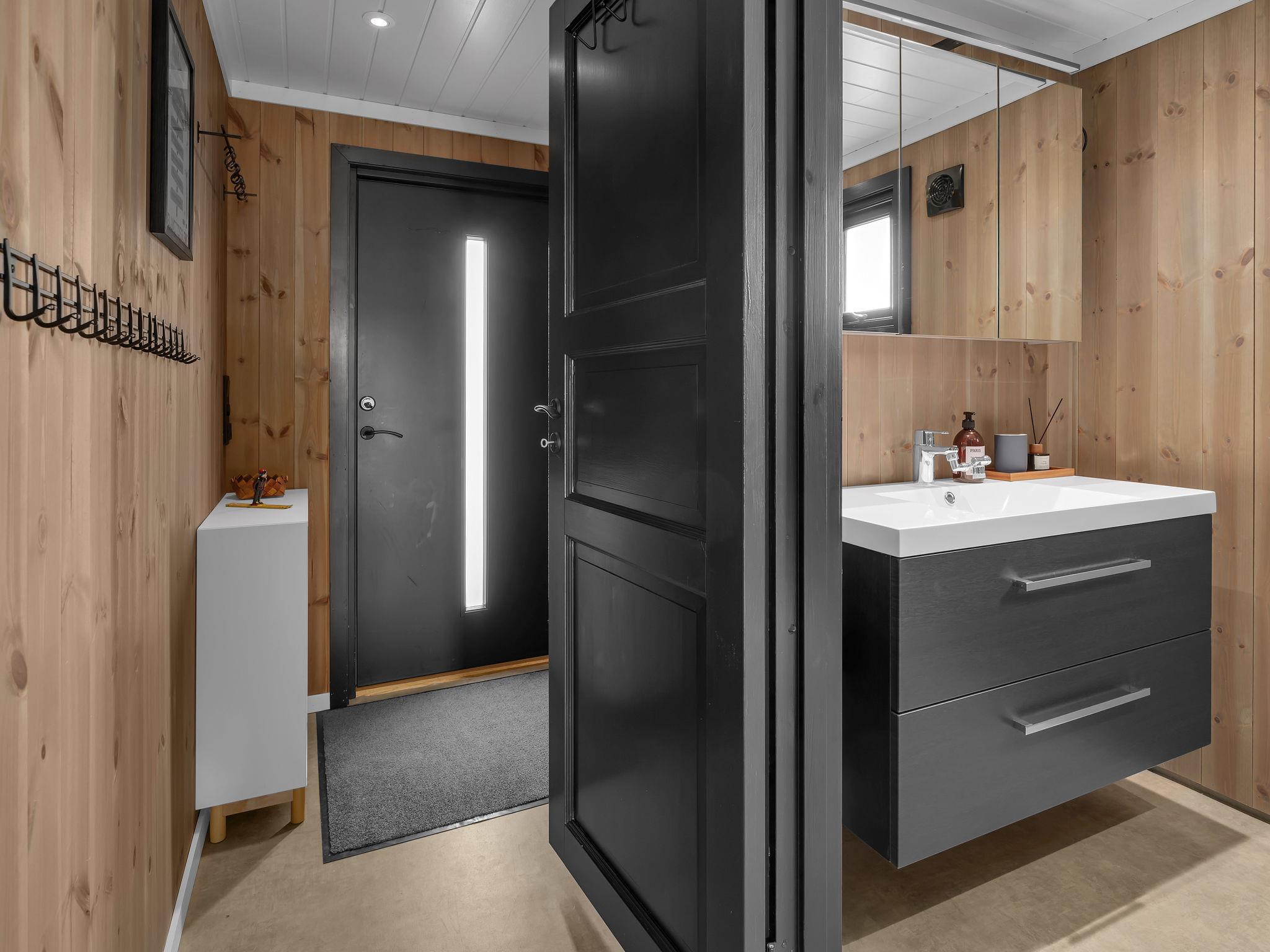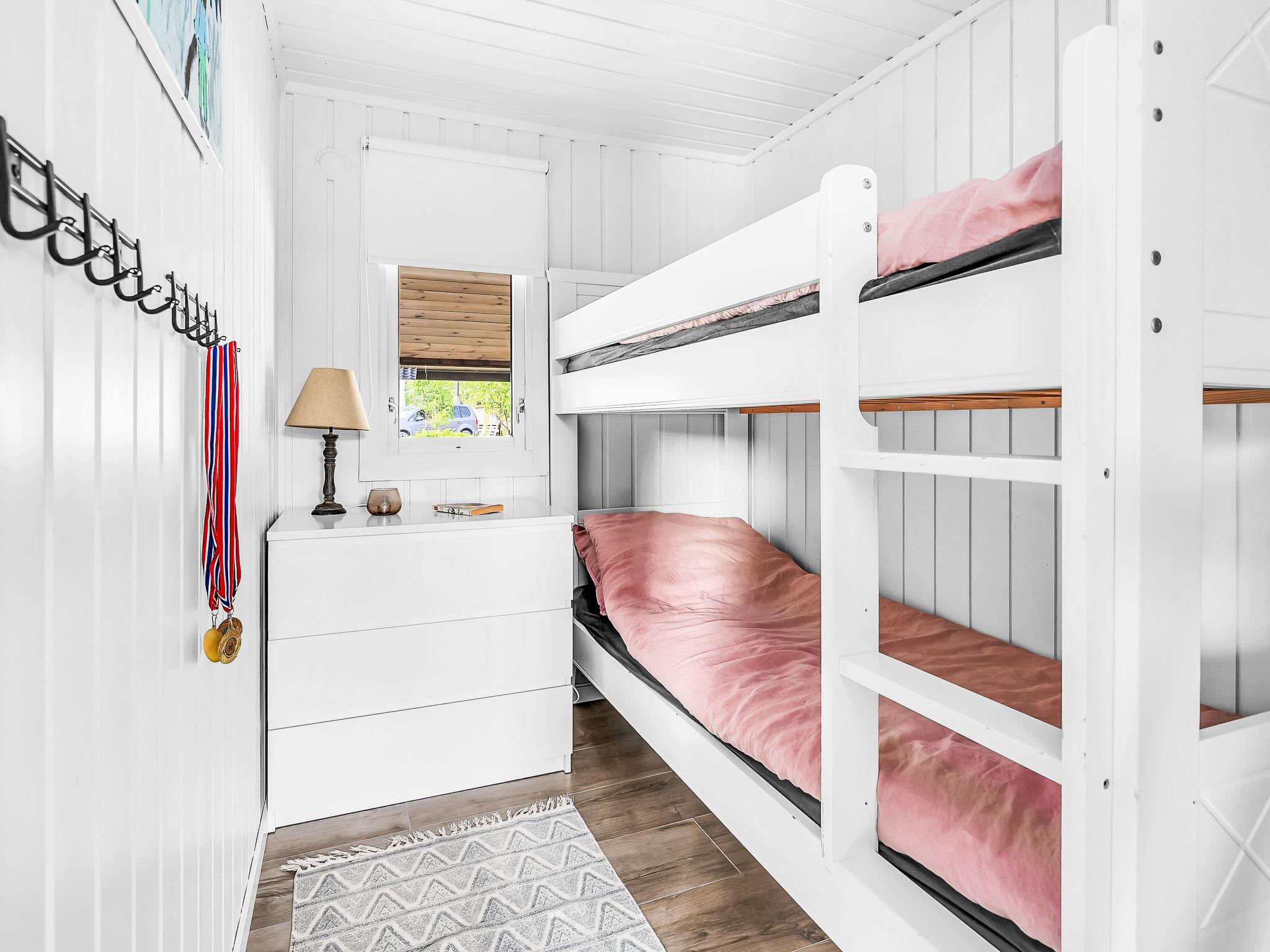 "Kosetoppen", 4-Zimmer-Haus 50 m2. Hell, vollständig renoviert im Jahre 2022, modern und mit viel Holz eingerichtet: offenes Wohn-/Esszimmer mit Esstisch und TV. Ausgang zur Terrasse. 1 Doppelzimmer mit 1 Doppelbett (150 cm, Länge 200 cm). 2 Zimmer, jedes Zimmer mit 1 x 2 Etagenbetten (75 cm, Länge 200 cm). Küche (Backofen, Geschirrspüler, 4 Induktionskochplatten, Toaster, Wasserkocher, Tiefkühler, elektrische Kaffeemaschine). Dusche/WC. E-Heizung, Warmluftheizung, Fussbodenheizung. Terrassenmöbel, Gartengrill (mobil). Schöne Panoramasicht auf den See und die Berge. Bitte beachten: Nichtraucher-Haus. 924531169