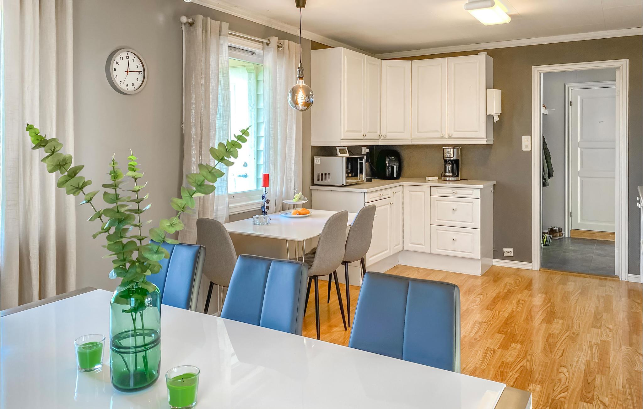 In der Behaglichkeit des Hauses in gemütlicher Einrichtung fällt es leicht, abzuschalten. Genießen Sie die erste Tasse Tee des Tages auf der Holzterrasse mit Blick auf die Landschaft, und spazieren Sie herunter zu den Booten im kleinen Hafen. Ein weiterer aktiver Tag in der Natur kann beginnen - Entdecken Sie die Insel zu Wasser oder zu Land, baden oder angeln Sie, oder verlieren Sie sich einfach beim Blick in die Umgebung.
