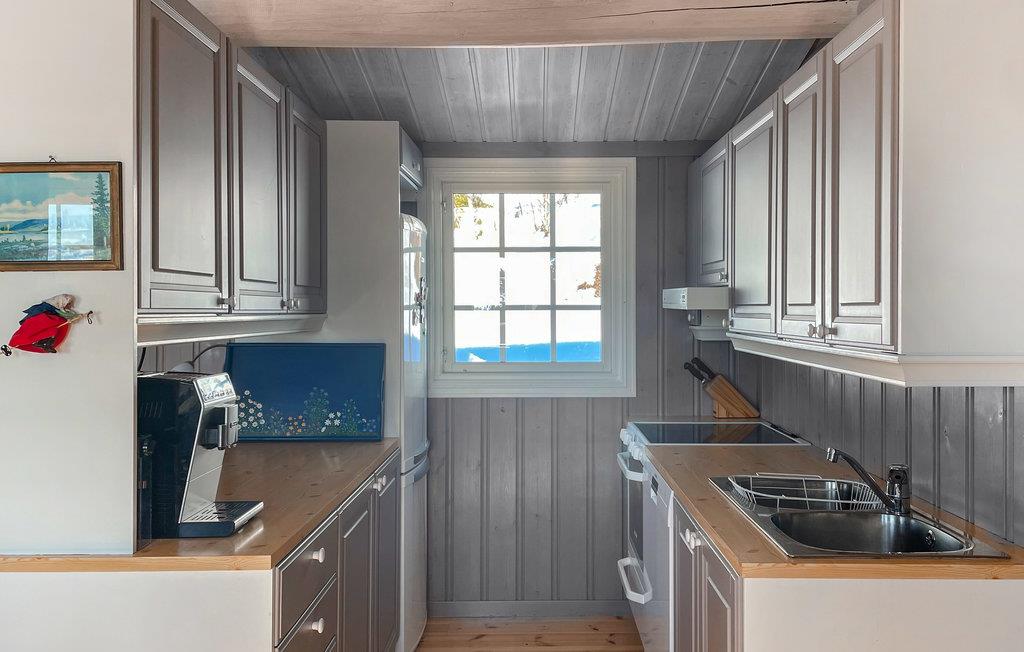 Dieses einladende Ferienhaus mit viel Charakter, gemütlicher Einrichtung, stimmungsvollen Details und echtem Hüttencharme begrüßt Sie in der reizvollen Bergwelt Norwegens. Am Esstisch können Sie in aller Ruhe den frisch gebrühten Morgenkaffee und die warmen Semmeln genießen, oder haben Sie vielleicht einen schönen langen Brunch geplant? Der Sofabereich mit bunten Kissen wird der kuschelige Entspannungsort mit Mama und Papa. Während Sie in der Küche bei einem Glas Rotwein kochen und die Regenbogenforellen auf der Veranda grillen, können Ihre Kinder am Esstisch ein Puzzle machen. Relaxen Sie sich abends in der Sauna. Unternehmen Sie herrliche Wandertouren in der Umgebung und sausen Sie auf Ihrem Mountainbike durch die Natur.