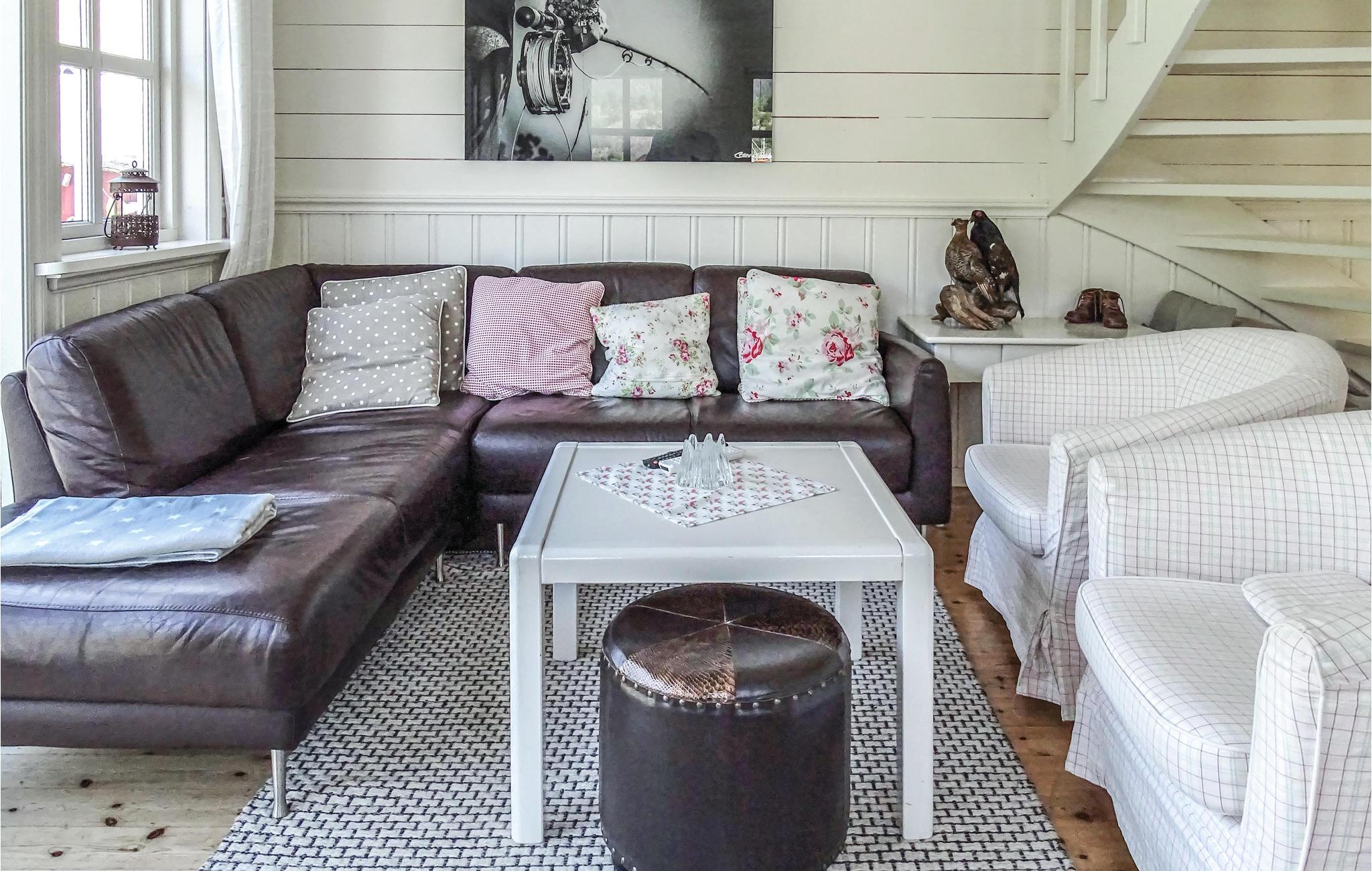Genießen Sie einen stressfreien Urlaub in diesem gemütlichen Ferienhaus in idyllischer Umgebung. Die Unterkunft liegt in der Nähe vom Fjord und bietet Blick auf den Fjord, die Berge und den Wald. Der Fjord ist nicht nur schön anzusehen, sondern bietet auch sehr gute Angelmöglichkeiten auf Kabeljau und Seelachs. Das frischgefangene Abendessen kann auf der großen Terrasse genossen werden. An warmen Sommertagen können Sie am privaten Strand baden. Sowohl das Ferienhaus als auch die Umgebung sind kinderfreundlich. Neben Angeln und Schwimmen gibt es viele gute Wandermöglichkeiten in der Umgebung. Das Haus hat Apple TV und Radio mit Sonos-System, so dass man auch an regnerischen Tagen unterhalten ist. Am Haus gibt es Lademöglichkeit für Elektro-Autos.