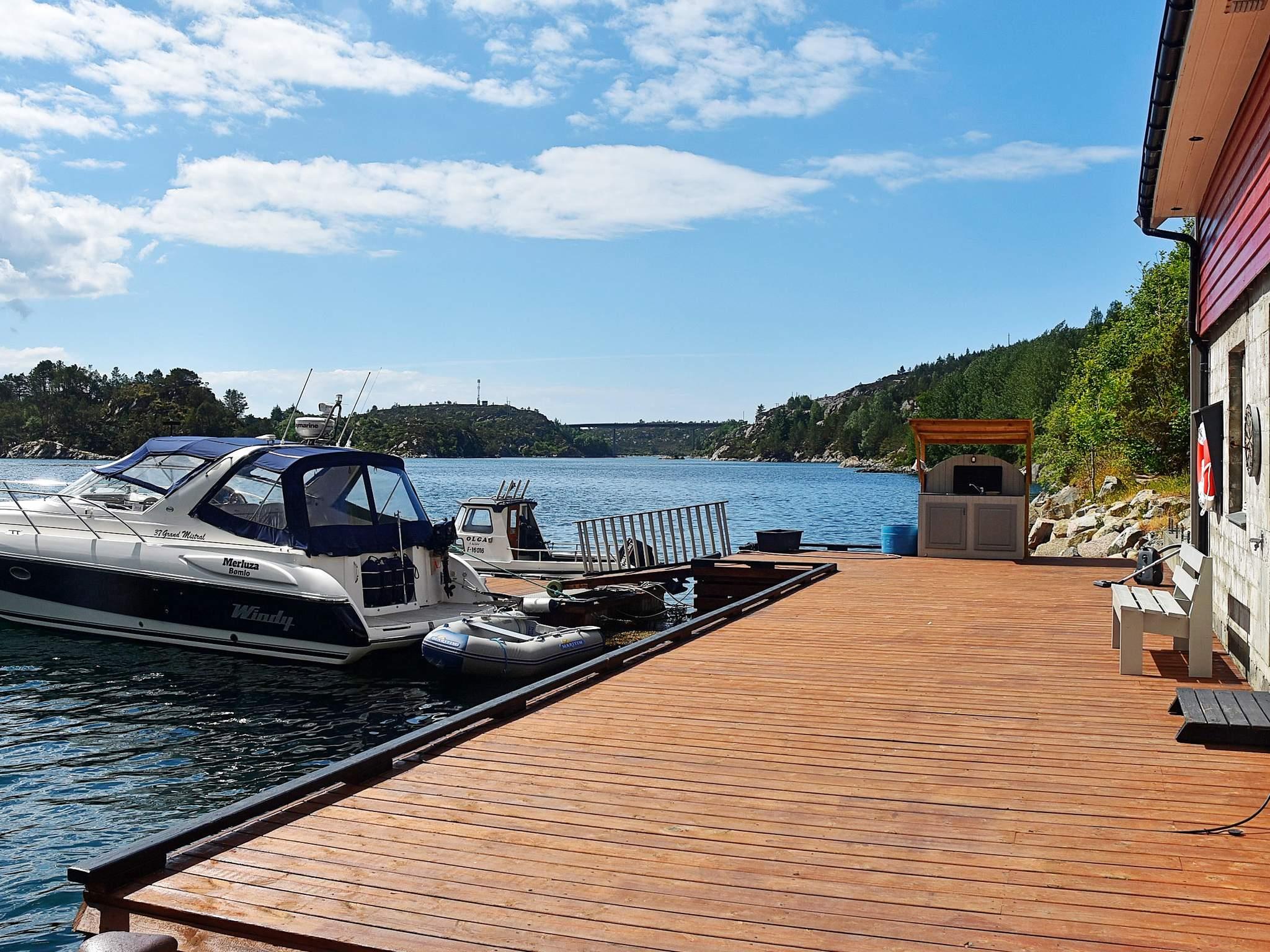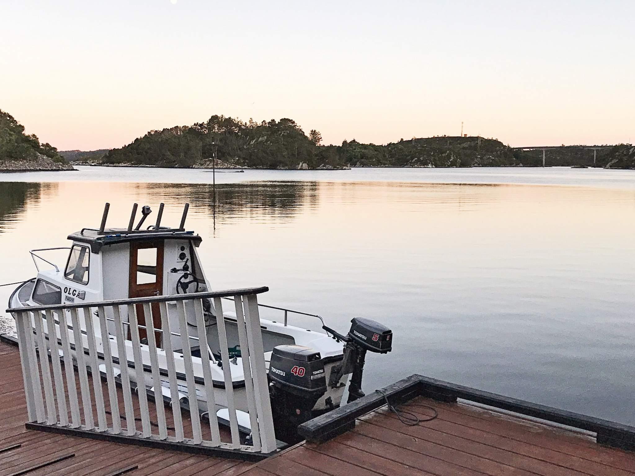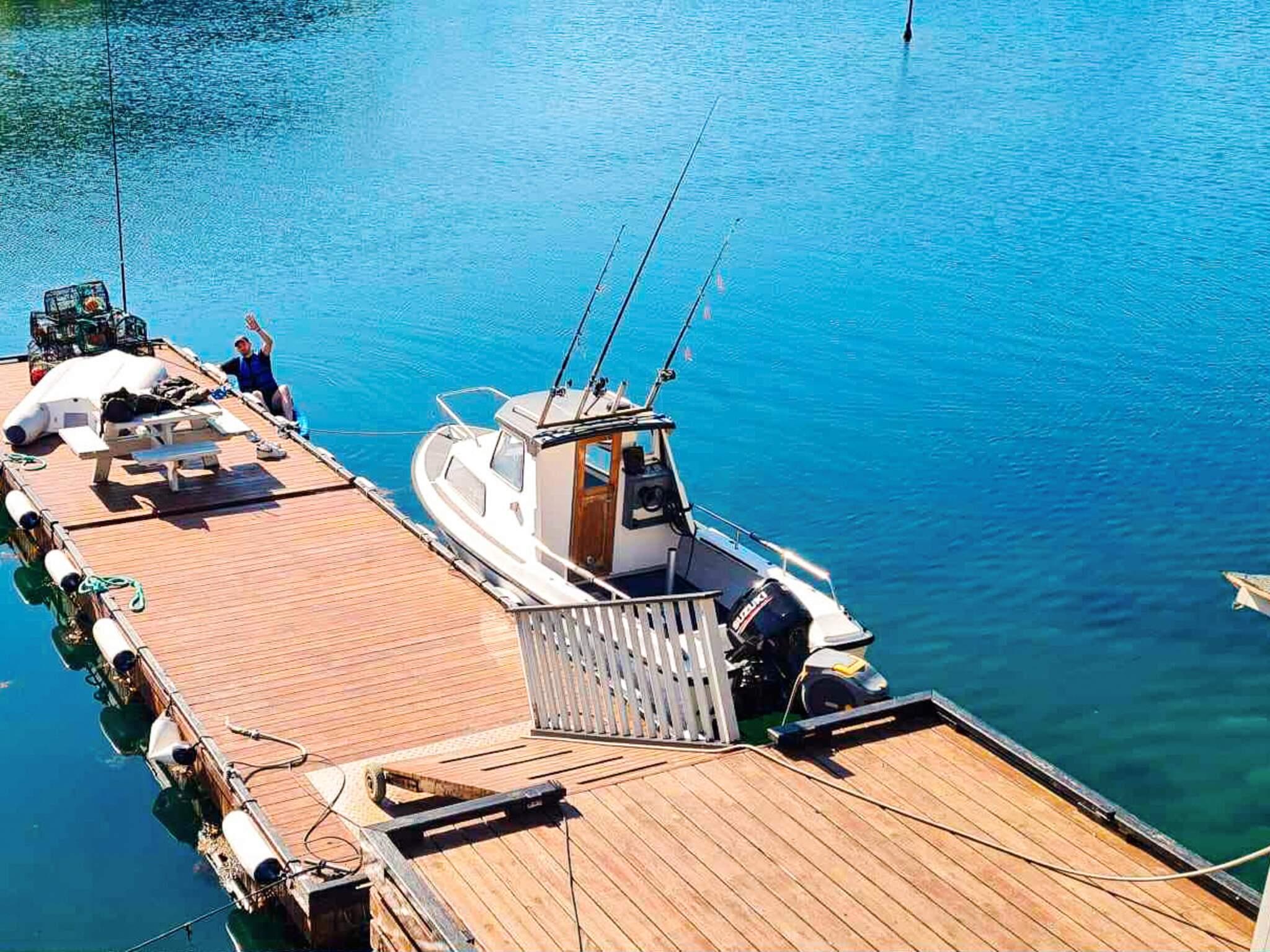 Überdachter Fischfiletierbereich mit Wasser und Licht. Das Gebiet ist das ganze Jahr über fischreich und bietet sehr gute Angelplätze im Fjord und im offenen Wasser. Für Personen ab 1980 ist ein Bootsführerschein erforderlich.