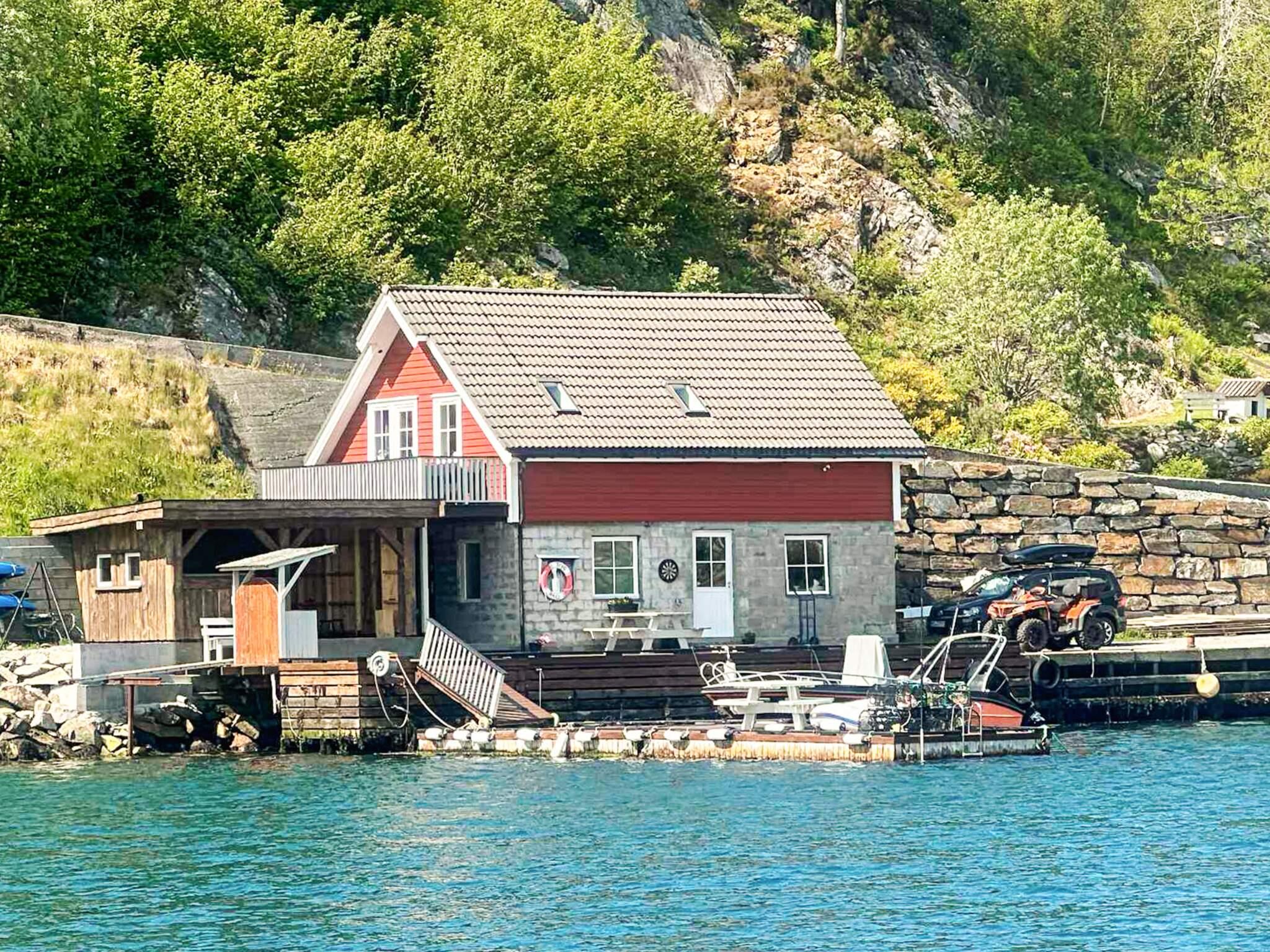 Das Ferienhaus verfügt über einen hochwertigen, offenen Wohnraum mit Küche und Zugang zu einem 14 m² großen Altan mit herrlicher Aussicht. TV/Internet über Glasfaser, 150 Mbit/s. Norwegische, deutsche und internationale Sender über Altibox. Zwei Schlafzimmer mit je 2 Einzelbetten, in einem zusammenstellbar. Gefliestes Bad/WC mit Duschkabine. Loft mit 150 cm Höhe und Feldbett.