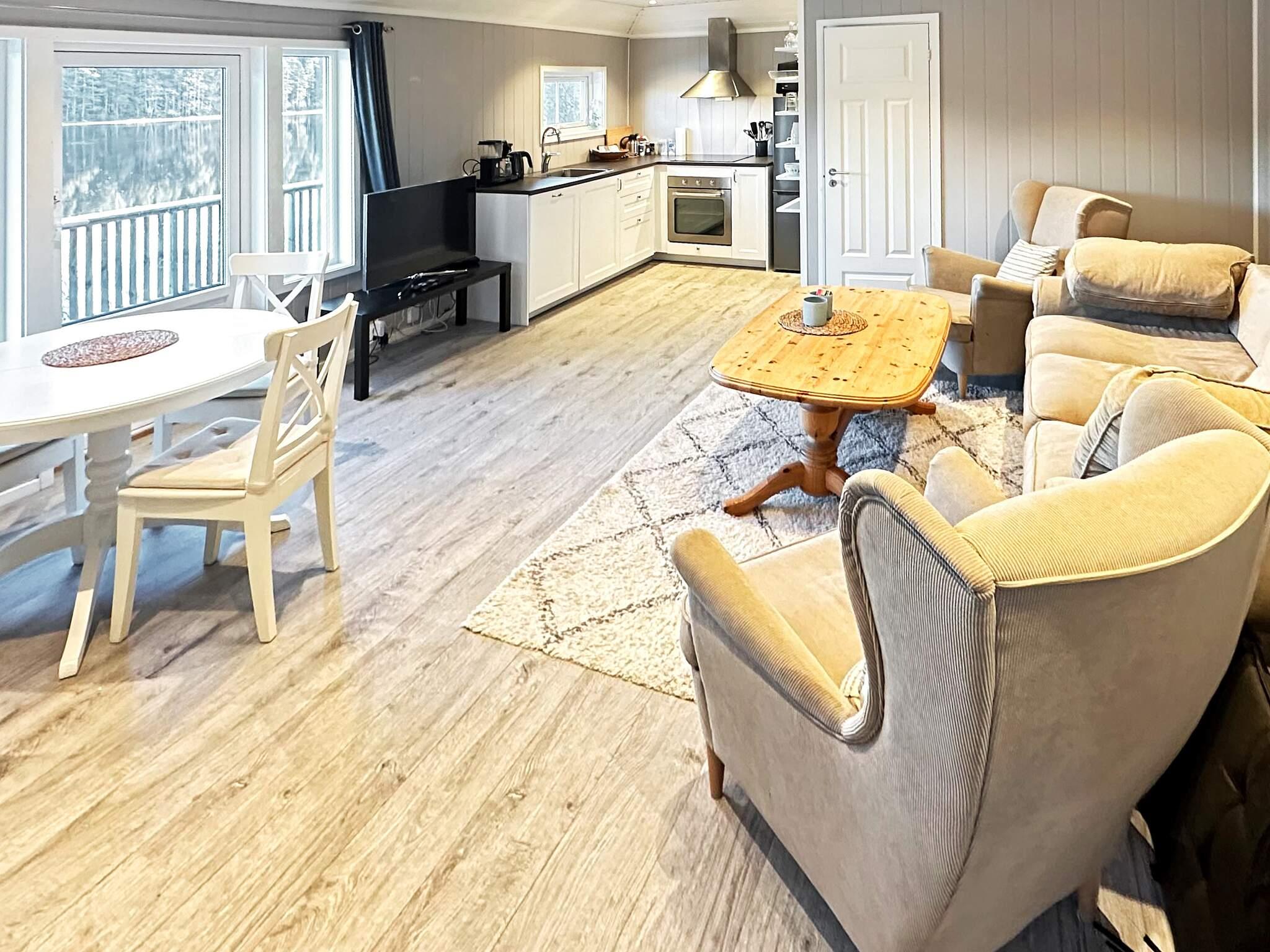 Das Ferienhaus vereint heimeligen Komfort mit modernen Annehmlichkeiten. Dank der Lage direkt am Fluss Otra können Sie vom Wohnzimmer aus das beruhigende Plätschern des fließenden Wassers und die wunderbare Aussicht genießen.