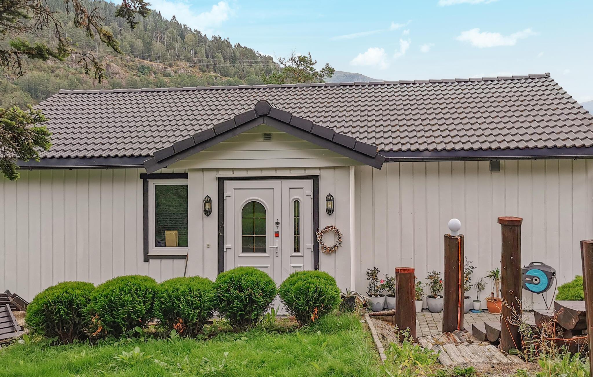 Nyd ren afslapning i dette komfortable feriehus med en fantastisk udsigt. Dette attraktive hus er ideelt beliggende midt i malerisk natur nær fjorden og tilbyder gæsterne et vidunderligt sted at slappe af. Glæd jer til hyggelige aftener i en indbydende atmosfære, uanset om I nyder måltider sammen eller slapper af på sofaen. Tilbring dejlige timer udenfor og nyd den smukke udsigt fra den rummelige grund. Solbad, læs i skyggen, og se jeres børn hoppe på trampolinen. Nyd lune sommeraftener med kolde drikkevarer og lækre grillmad under åben himmel. Udforsk den varierede natur i Førde i Vestland og nyd aktive oplevelser i et betagende landskab. Vandr langs velmarkerede stier gennem dale, skove og forbi krystalklare søer. Besøg det spektakulære Huldefossen-vandfald og oplev vandets kraft på tæt hold. Kør til Jølstravatnet og padl over den rolige sø eller prøv lykken med at fiske i det rene, fiskefyldte vand.