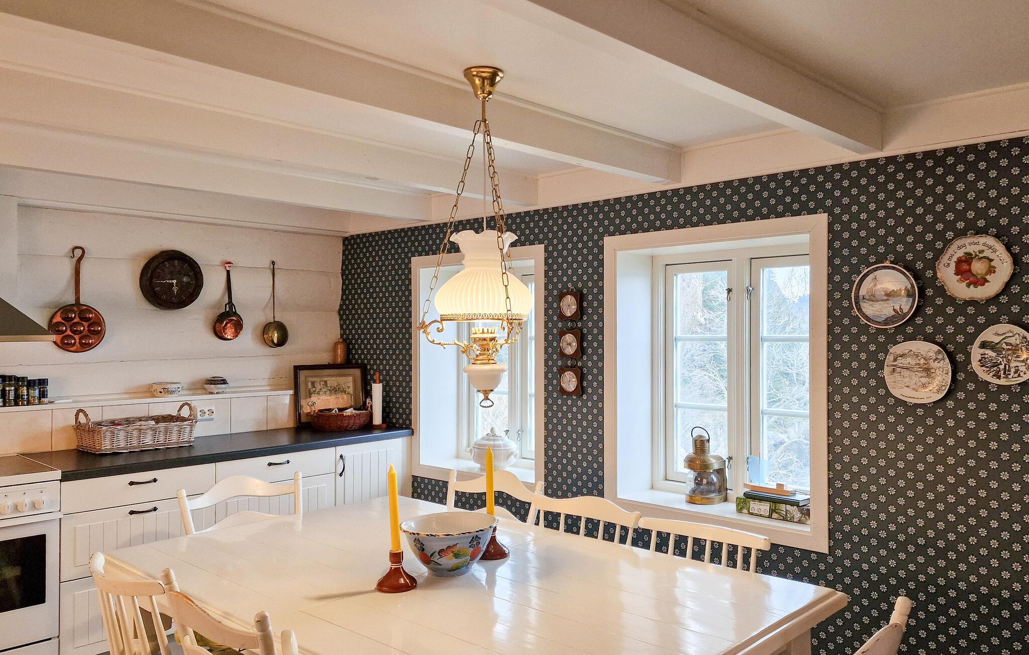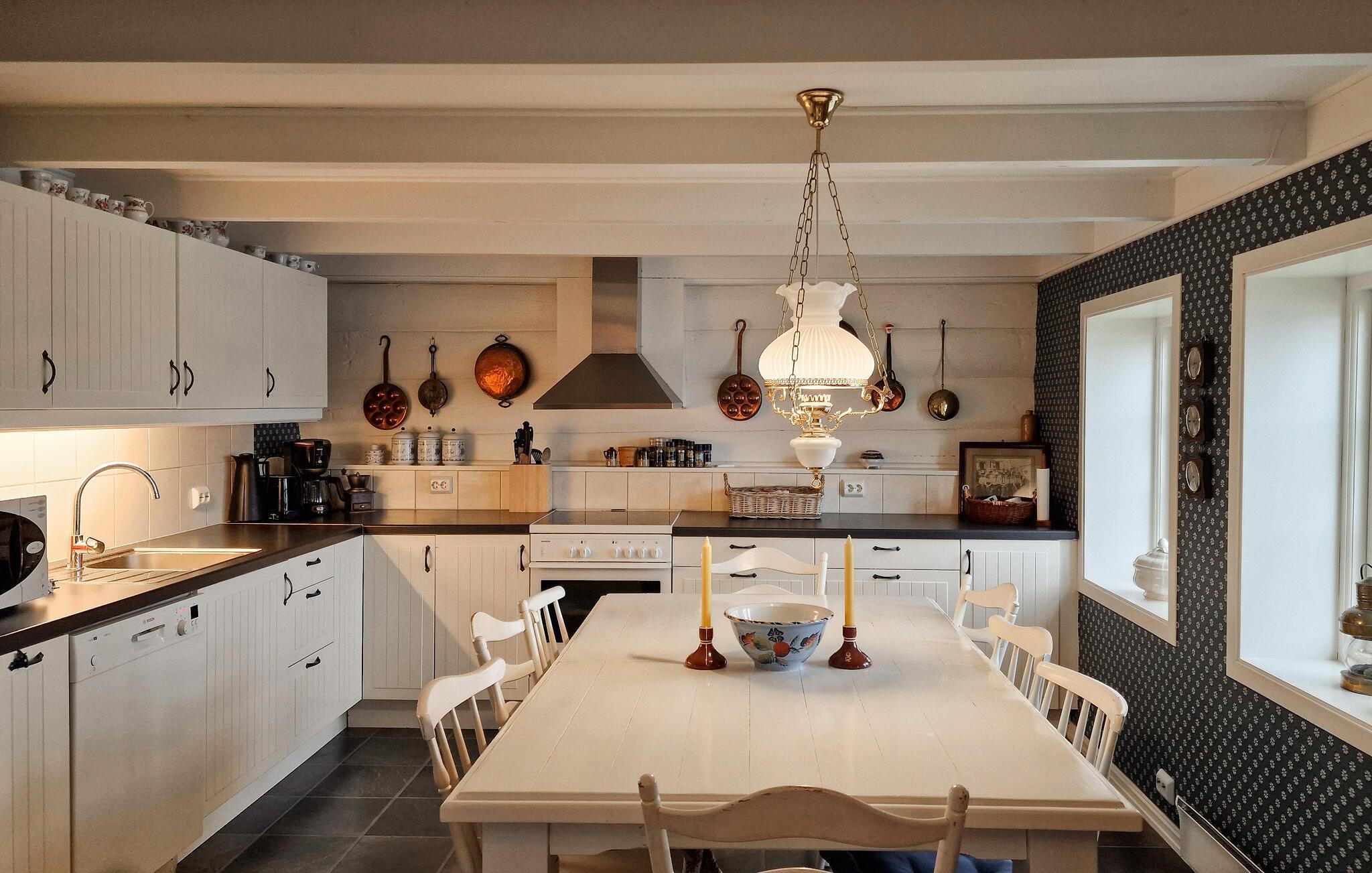 Direkt am Fjord empfängt Sie dieses schöne Ferienhaus zu einem Urlaub im Süden Norwegens, den Sie noch lange in Erinnerung behalten werden. Das romantisch-heimelige Ambiente Ihres Ferienhauses schafft eine ruhige Atmosphäre, die einen gemütlichen Aufenthalt verspricht. Fühlen Sie sich in Ihrer Küche wie zu Hause und zaubern Sie leckere Gerichte, die Sie am zentralen Esstisch servieren können. Hier ist Platz und Zeit für angeregte Gespräche bei gemeinsamen Mahlzeiten. Auch im Wohnzimmer werden Wohlfühlstimmung und eine liebevolle Einrichtung großgeschrieben. Genießen Sie hier gemeinsame Familienstunden bei der Wärme des Kaminofens.