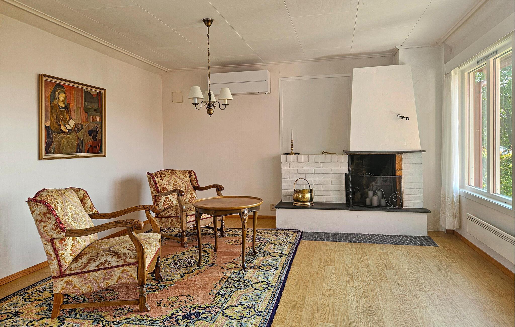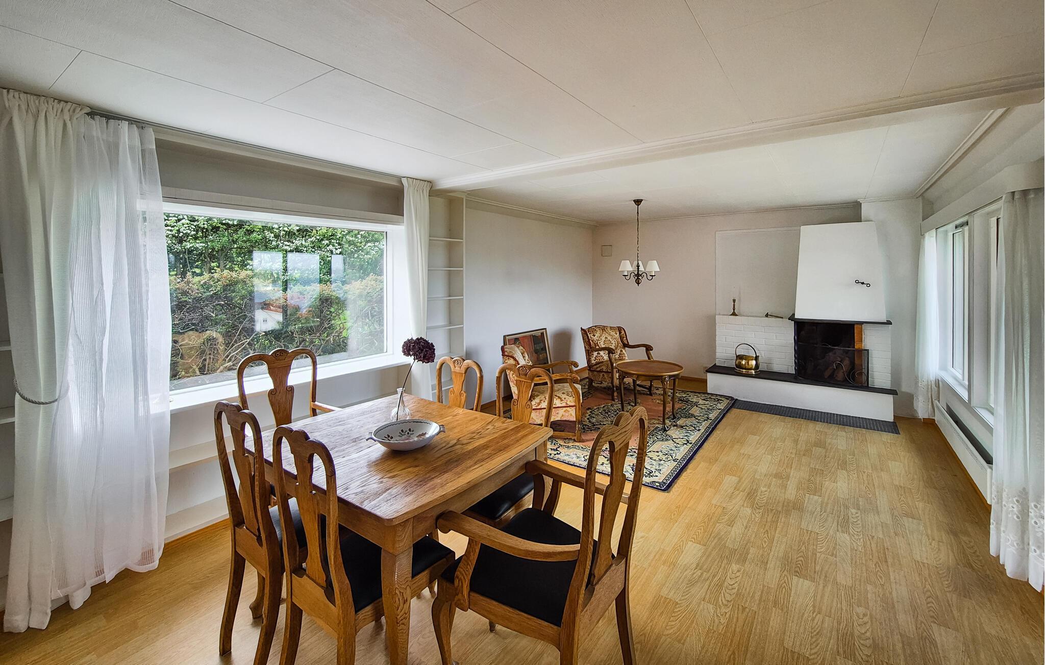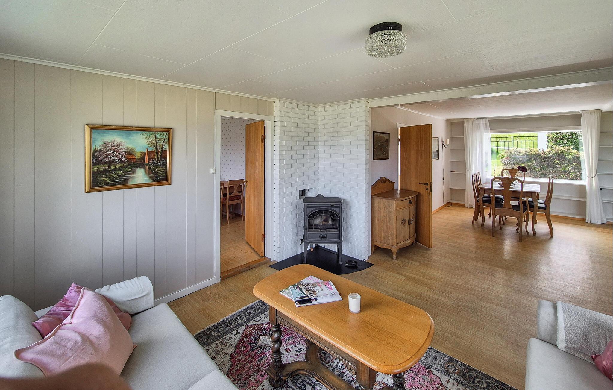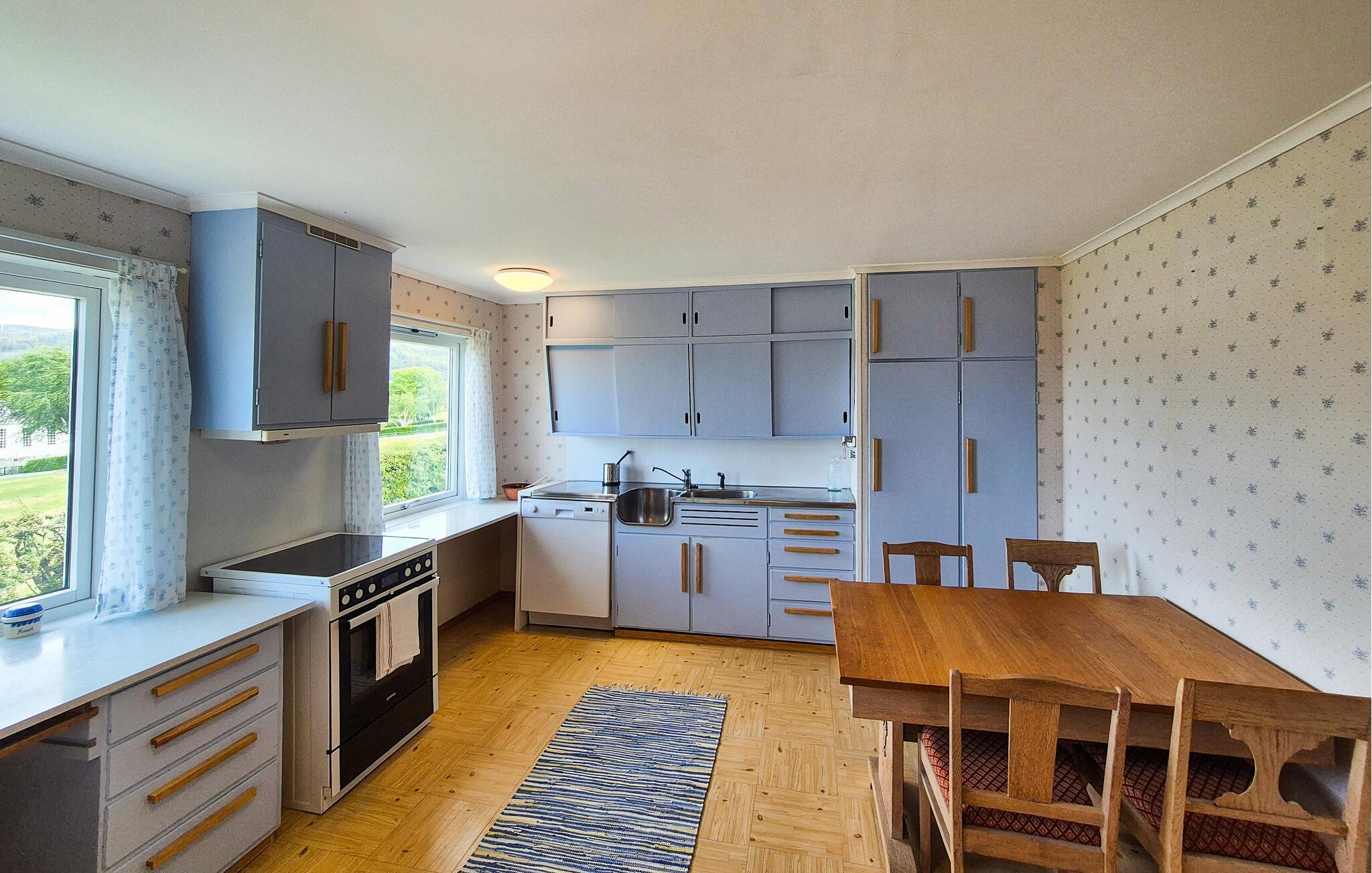 In fantastischer Lage nahe dem Fjord empfängt Sie das ehemalige Bauernhaus, das mit einer tollen Aussicht auf Fjord und Schärengarten bezaubert und einen behaglichen Rahmen für Ihren Urlaub bildet, in dem Sie wunderbare Stunden am Strand genießen und die Umgebung erkunden können. Machen Sie es sich nach einem erlebnisreichen Tag in wohnlichem Ambiente mit Retro-Charme gemütlich, speisen Sie gemeinsam mit toller Aussicht und verbringen Sie gesellige Abende am behaglich knisternden Kamin.