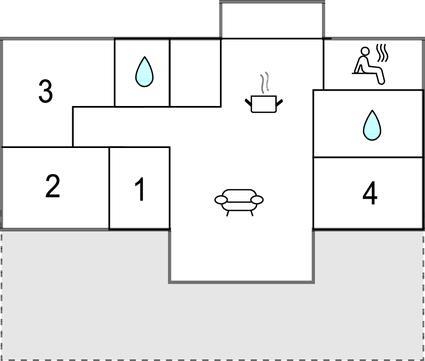 Badezimmer (nr. 1) - WC. Warmes und kaltes Wasser. Dusche