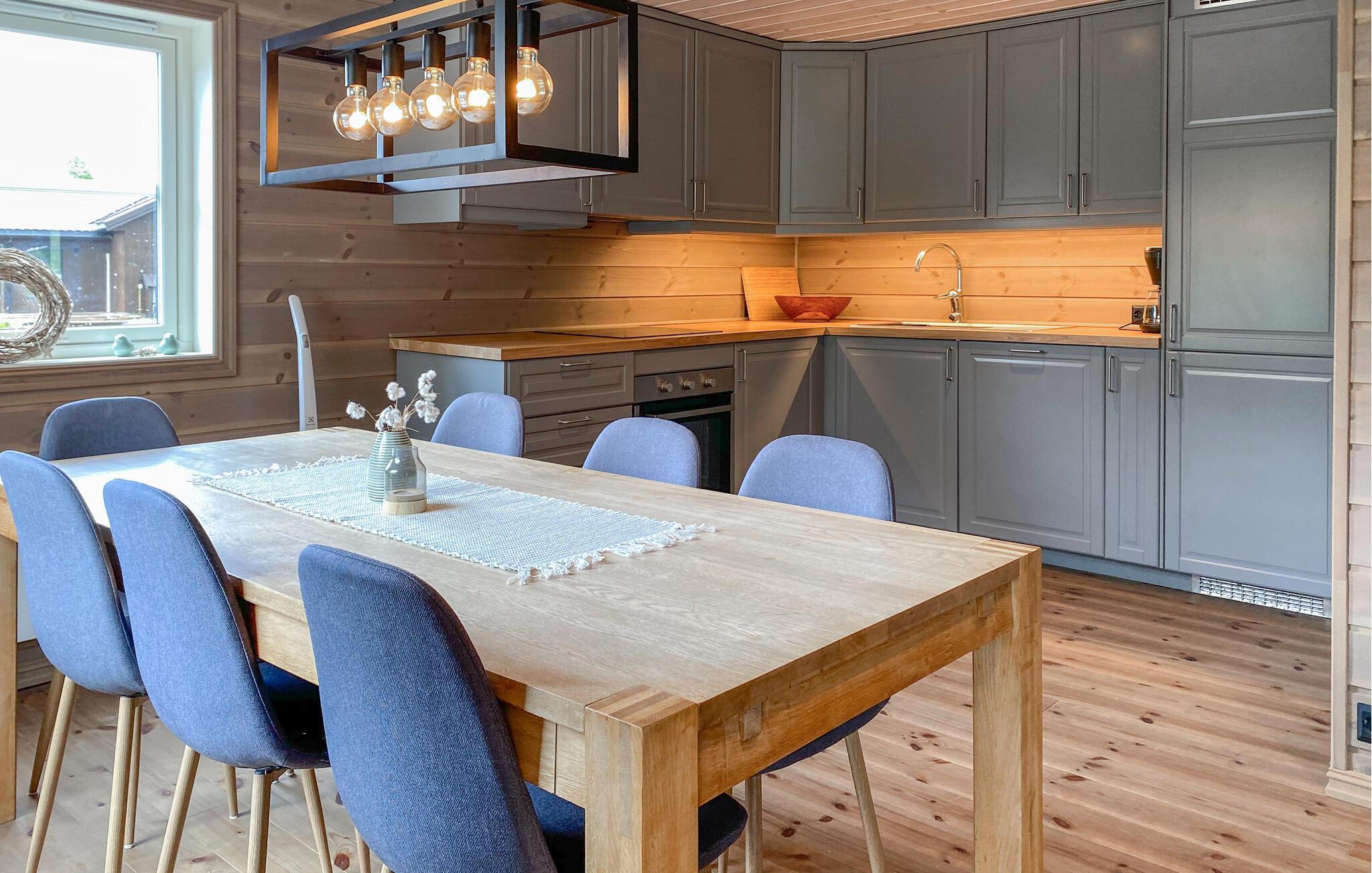 In diesem gemütlichen Haus kommen Sie schnell zur Ruhe und genießen eine erholsame Auszeit vom Alltag. Große Fenster lassen viel helles Tageslicht in die Wohnräume, während gemütliche Sofas rund um einen Sofatisch eine behagliche Atmosphäre schaffen. Entspannen Sie sich hier mit einem guten Buch oder einem Glas Wein und wärmen Sie sich an kühleren Tagen in der Sauna oder am Kaminofen auf.