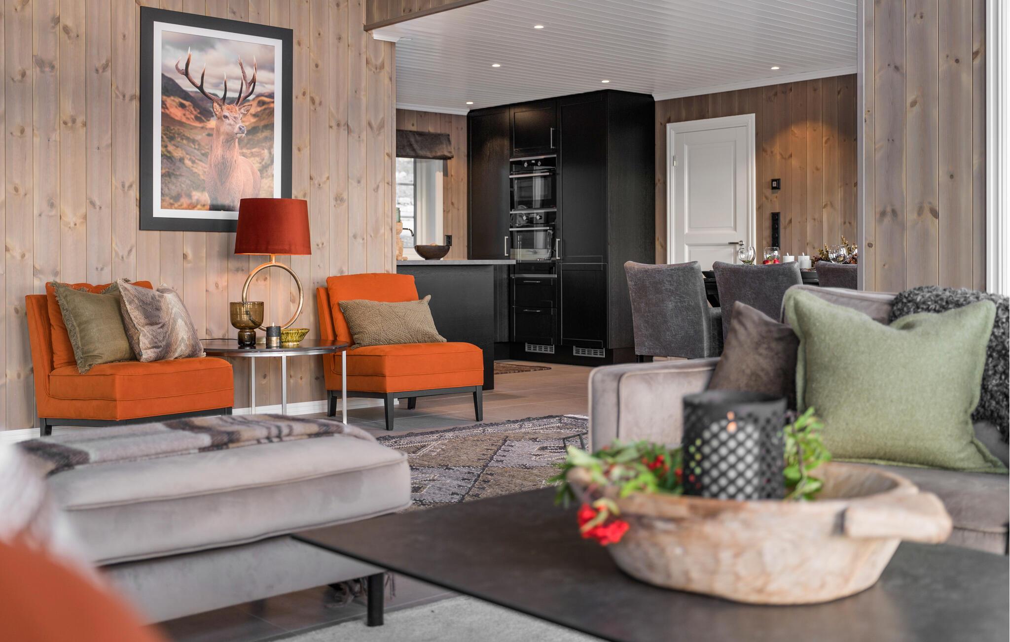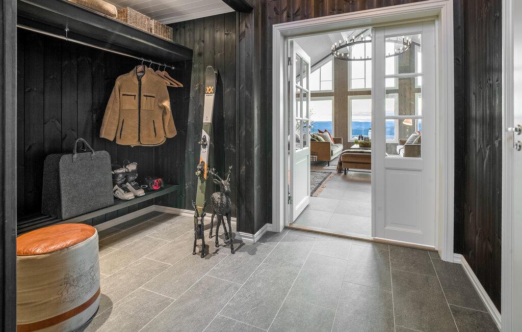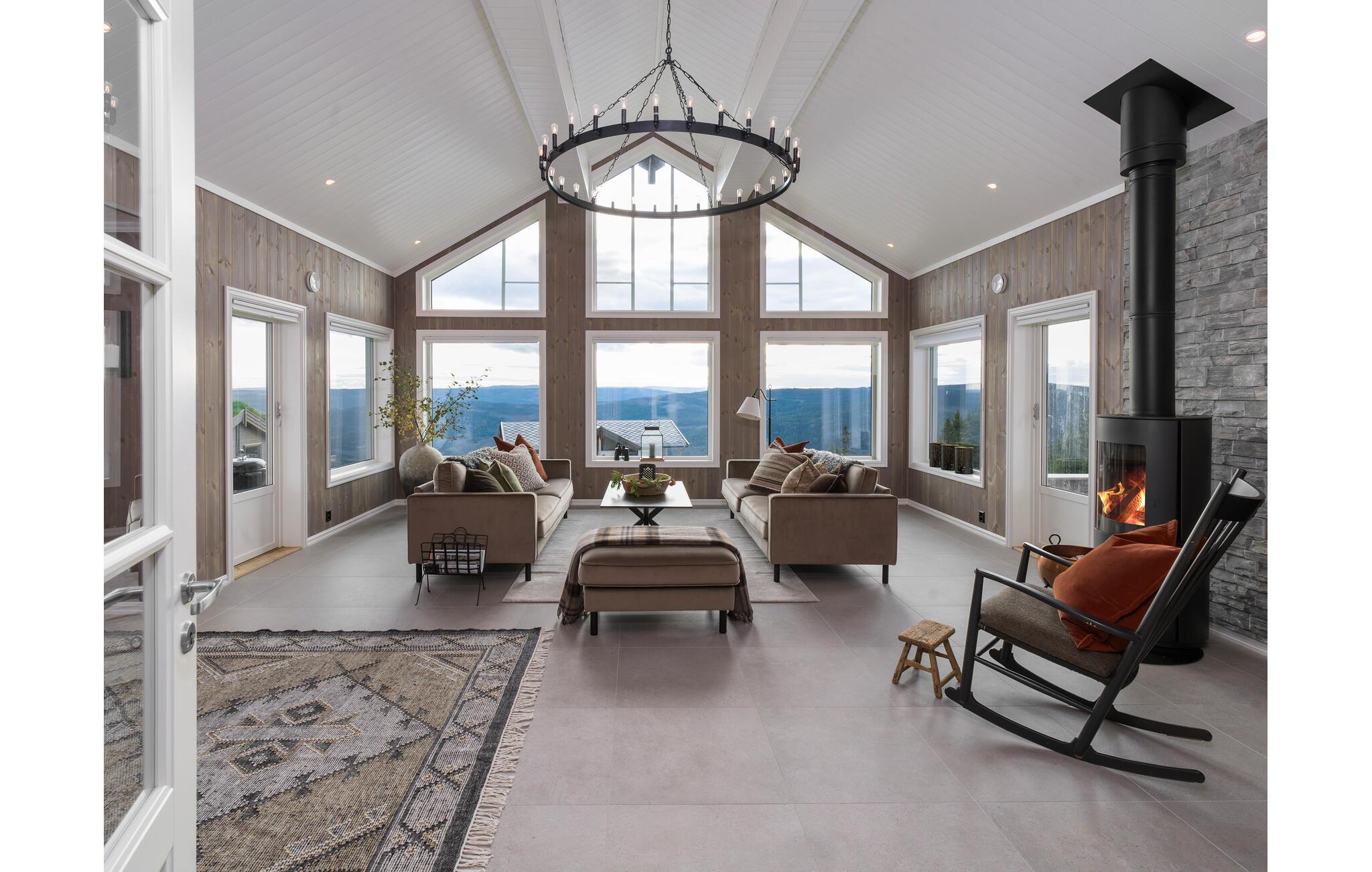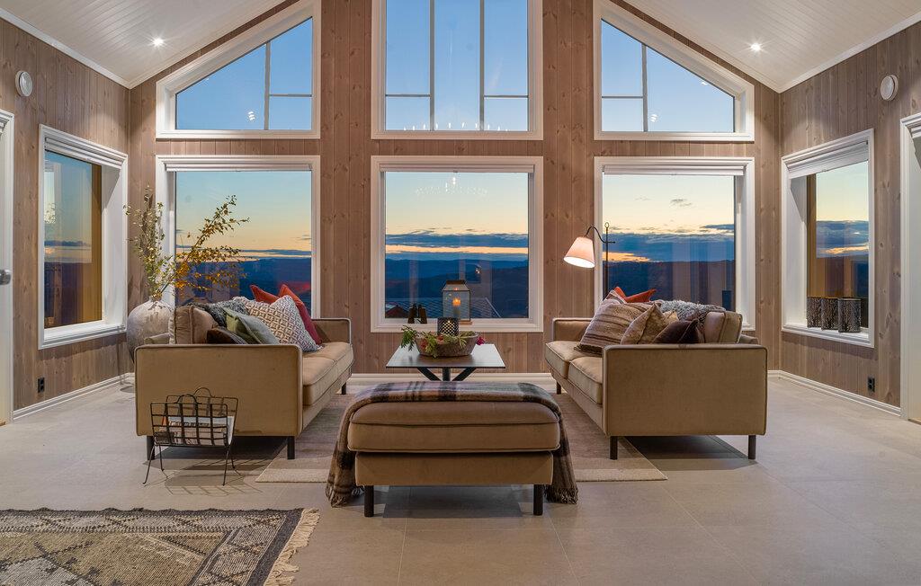 Machen Sie sich mit Ihren Lieben eine schöne Zeit in diesem attraktiven Haus, das Sie mit den großzügigen Räumen und seiner stilvollen Einrichtung mit modernen Möbeln gleich für sich einnehmen wird. Nehmen Sie nach einem aktiven Tag in der Natur auf den bequemen Sofas Platz, die Aussicht durch die großen Panoramafenster ist atemberaubend, genau die richtige Kulisse zum Entspannen. Auch vom Esstisch genießen Sie diese fantastische Aussicht, so dass Sie hier nach den Mahlzeiten sicher oftmals noch lange zusammensitzen. Machen Sie an kühleren Abenden ein Feuer im Kamin und lauschen Sie dem Knistern der Flammen.