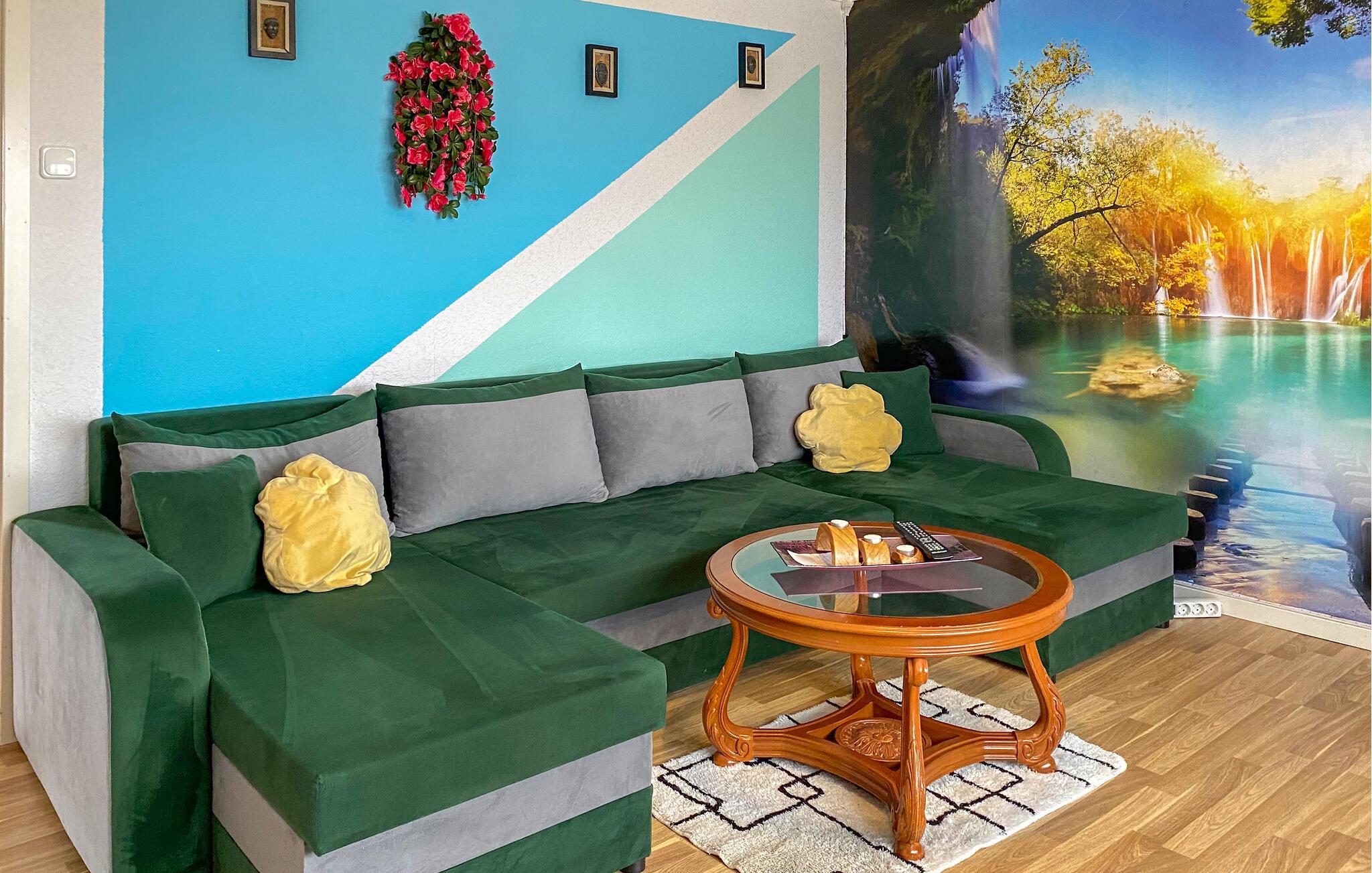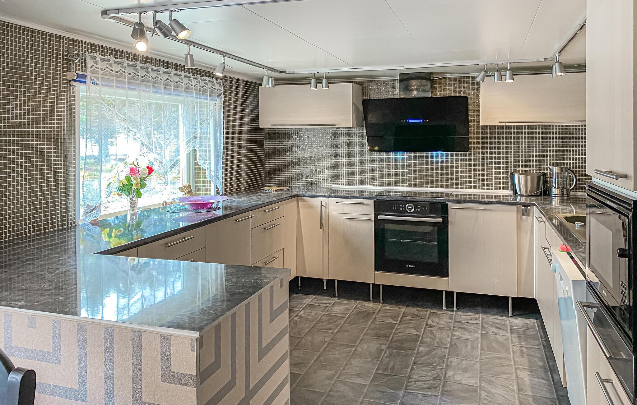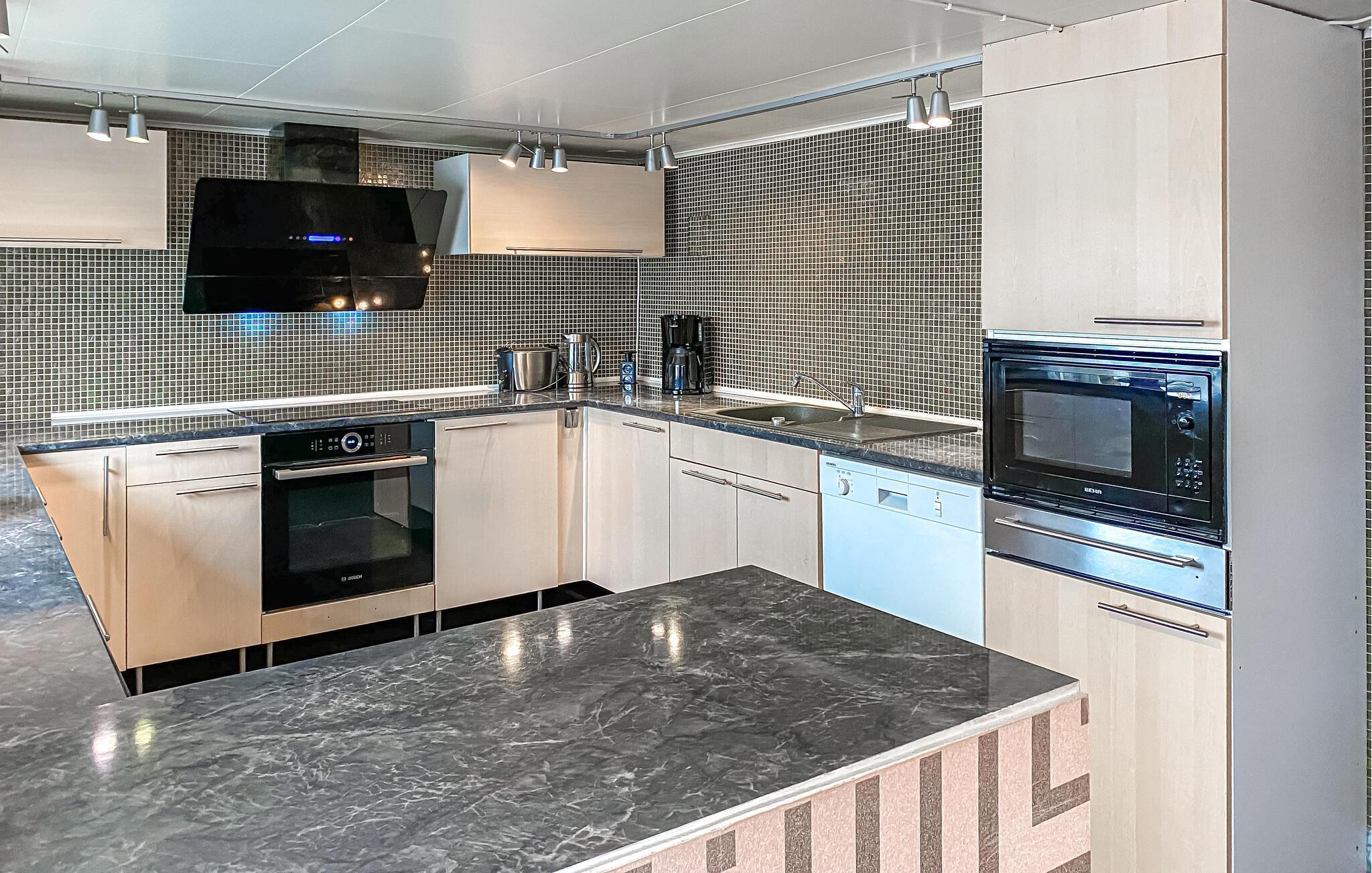 Willkommen in dieser großzügigen Ferienwohnung, in der Sie harmonische Tage mit Ihren Liebsten verbringen und die Nähe zum Meer genießen können. Bereiten Sie Ihre Mahlzeiten in der modernen Küche zu oder werfen Sie den frisch geangelten Fisch auf den Grill. Machen Sie es sich nach einem langen Tag an der frischen Luft auf der Sofalandschaft gemütlich, schauen Sie einen Film oder widmen Sie sich einem geselligen Spieleabend.