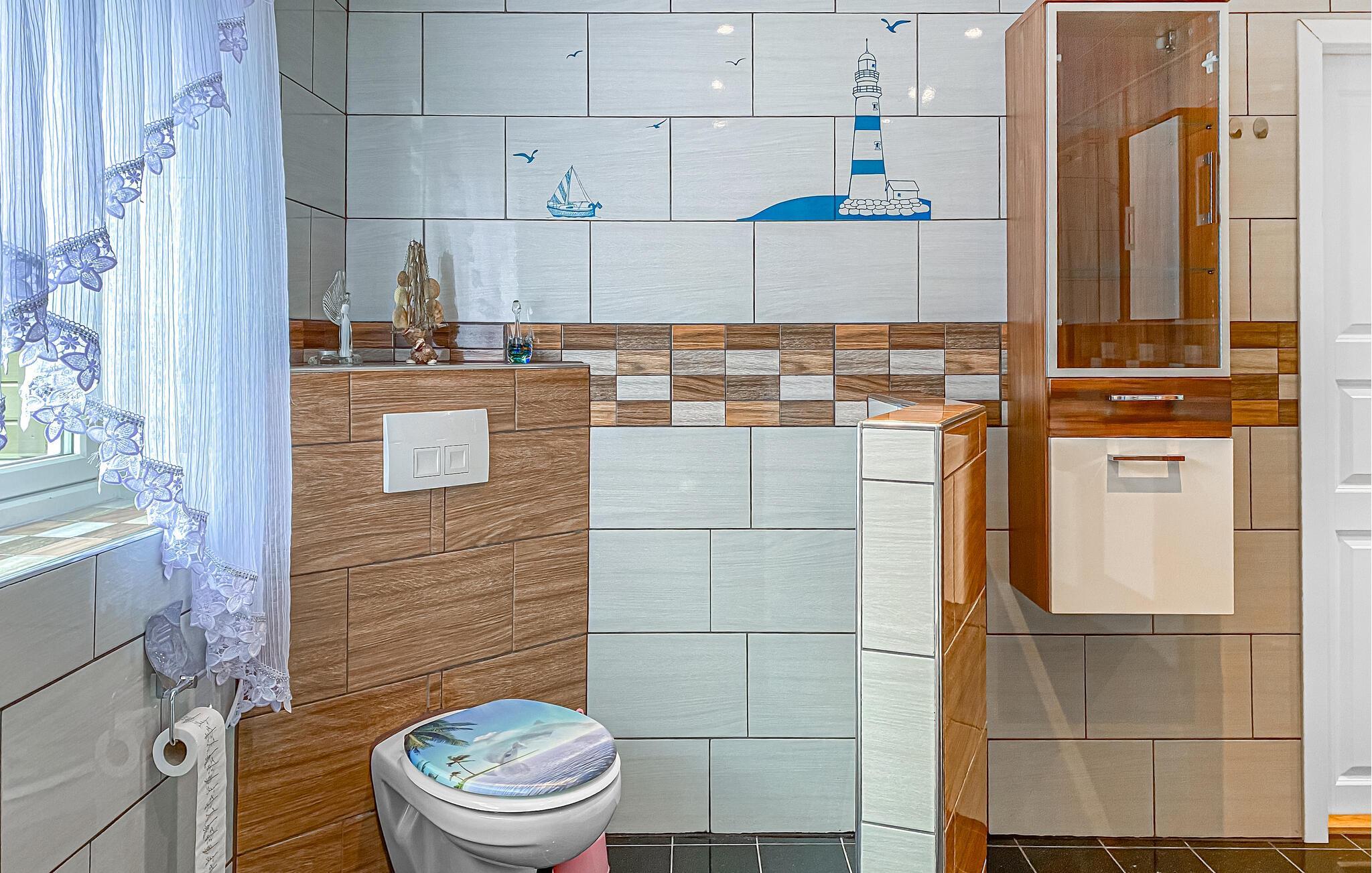 Badezimmer (nr. 1) - WC. Warmes und kaltes Wasser. Dusche und Badewanne