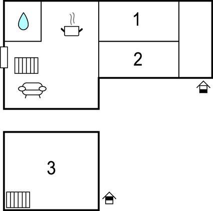 Badezimmer (nr. 1) - WC. Warmes und kaltes Wasser. Dusche