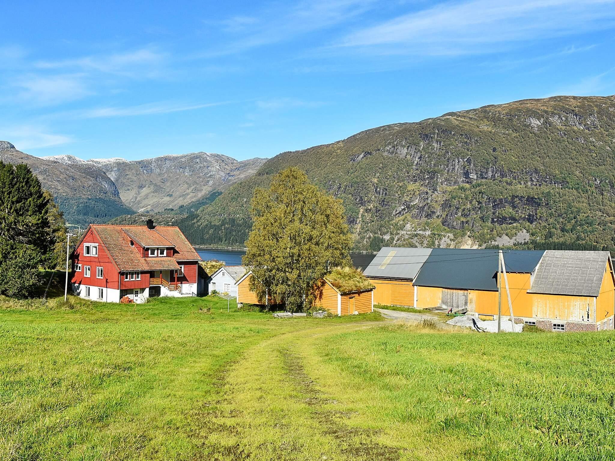 Ferienhaus auf einem früheren Gehöft mit mehreren traditionellen Nebengebäuden sowie Panoramaausblick zum forrellenreichsten See in ganz Norwegen, dem Jølstervannet!
