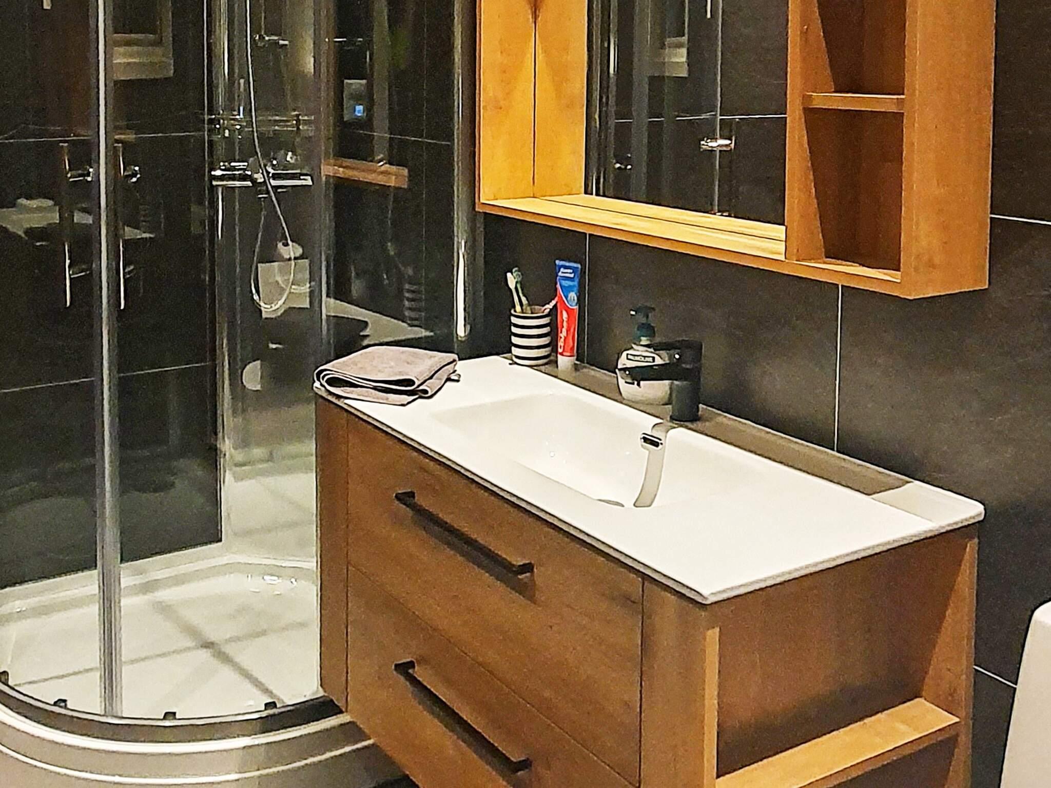 Bad: WC, Waschb., Dusche, Fußbodenheiz.